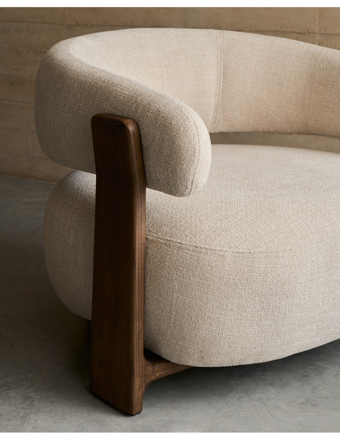Butaca Granite de chenilla beige y patas de madera maciza de fresno acabado nogal FSC 100% - Kave Home