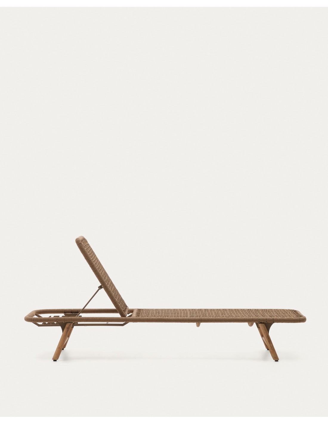 Tumbona Dandara estructura de acero cuerda beige y patas de madera maciza acacia FSC 100% - Kave Home