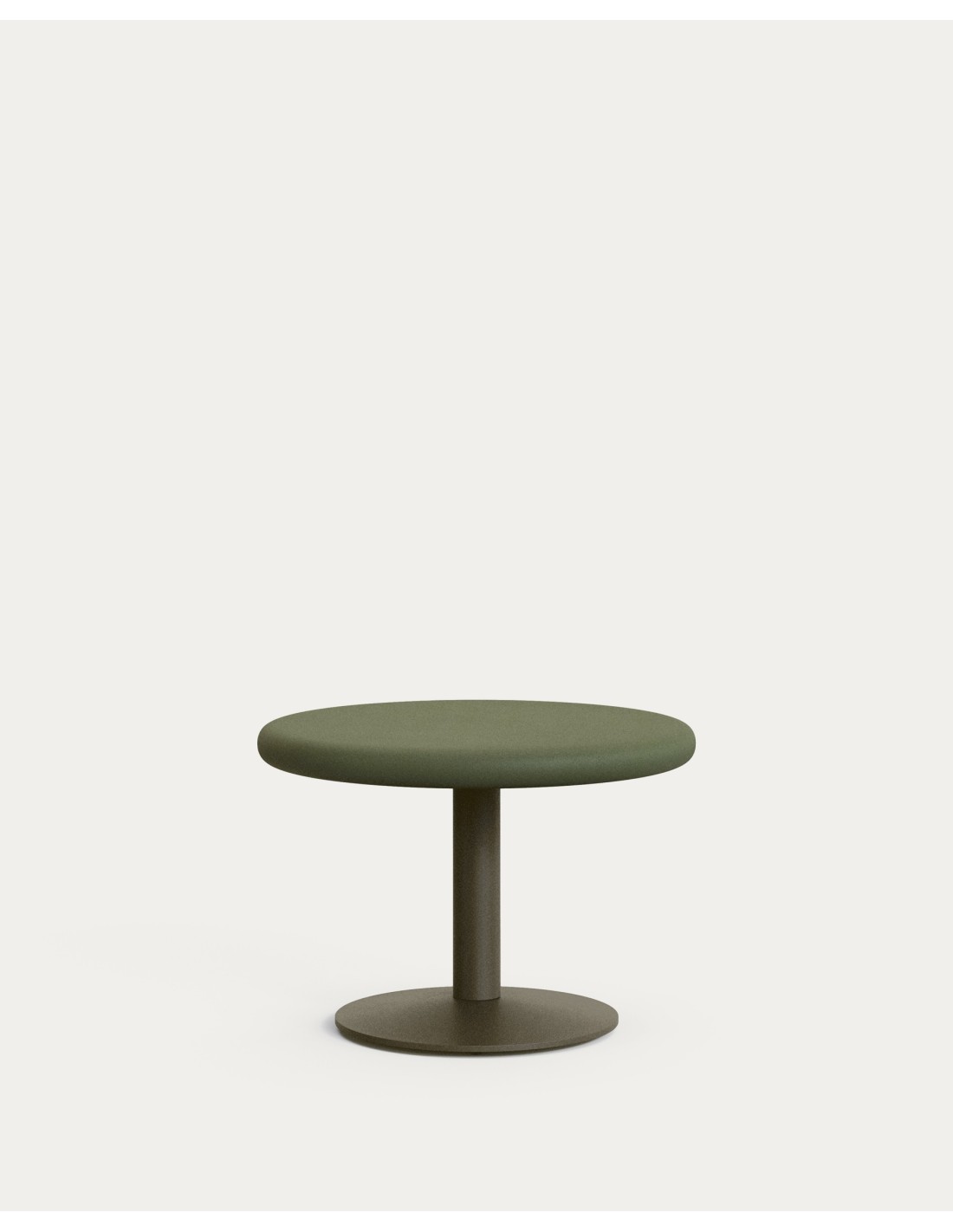 Mesa redonda de exterior Esilda con sobre de cemento verde Ø70cm y pie de acero verde Ø42x45cm - Kave Home