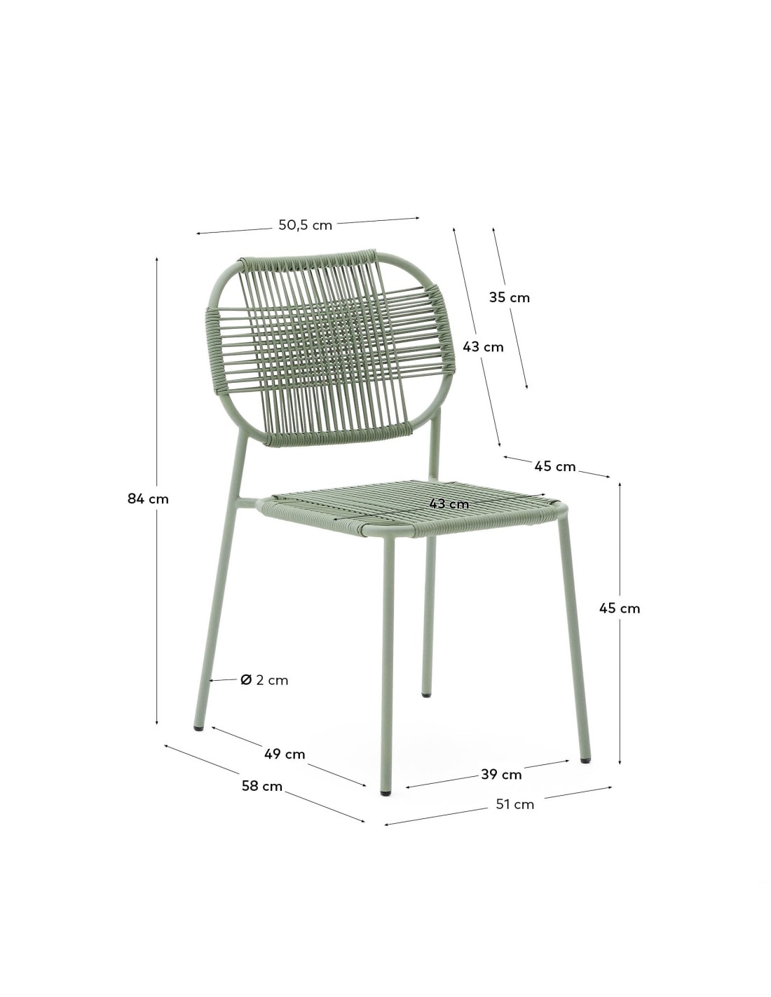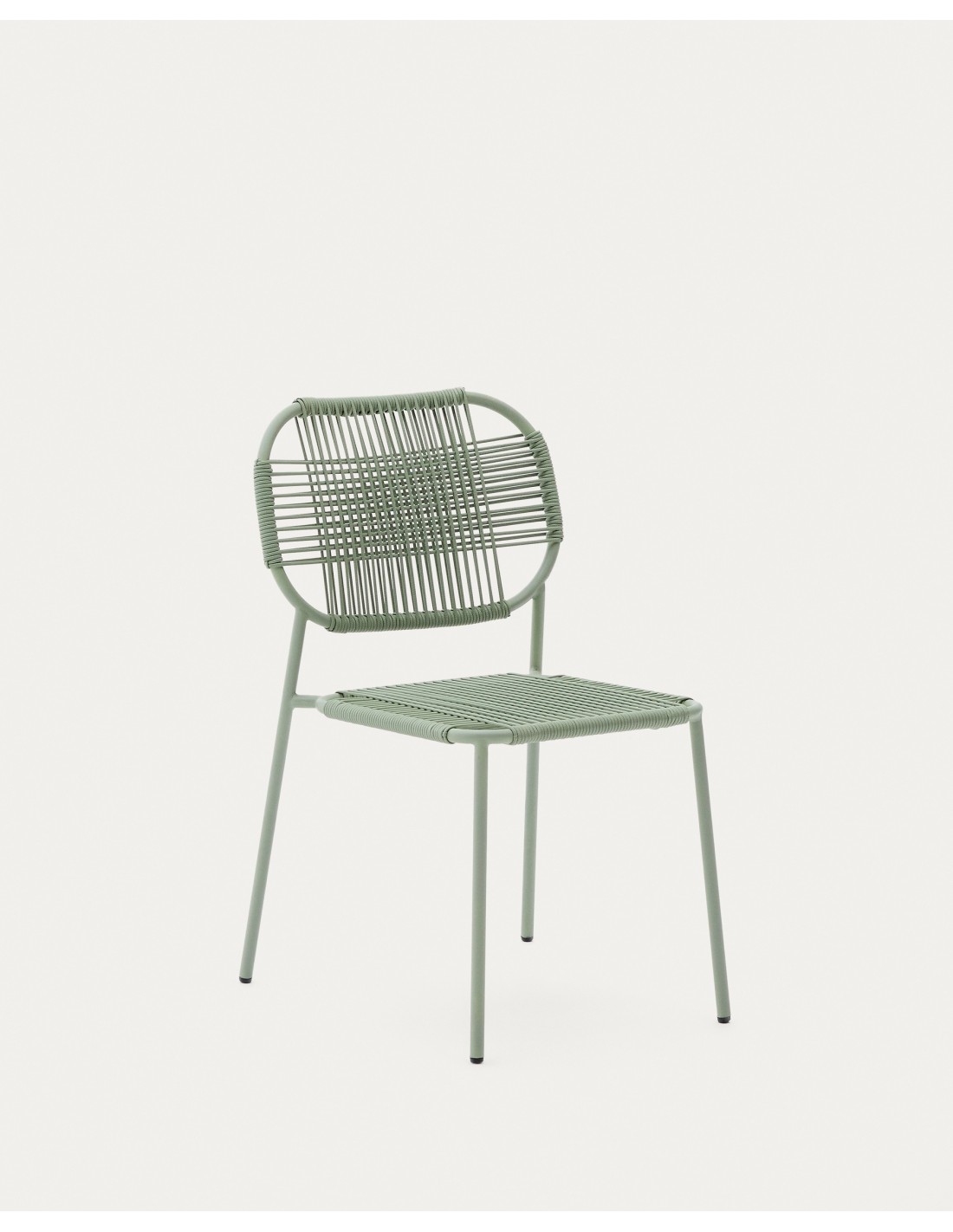 Silla de exterior apilable Talaier de cuerda sintética y acero galvanizado acabado turquesa - Kave Home