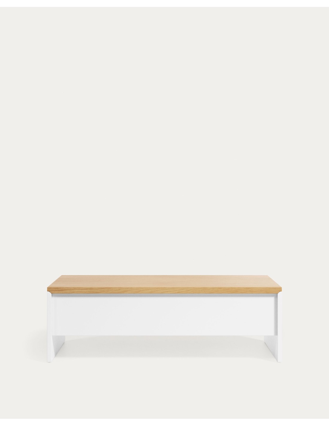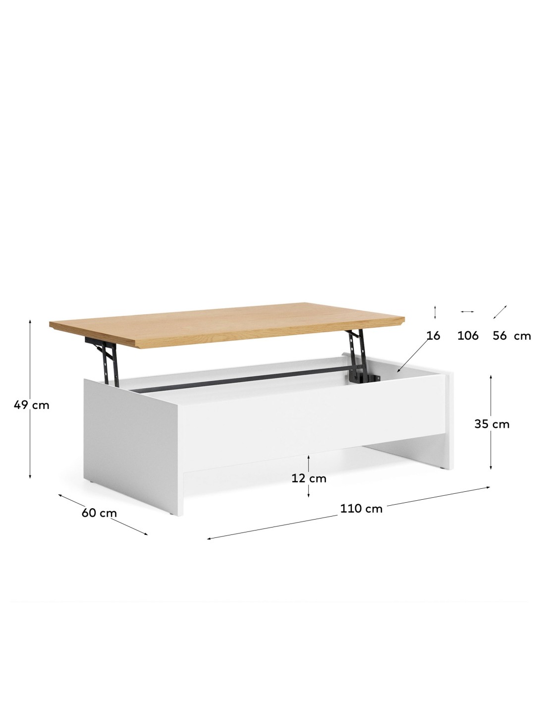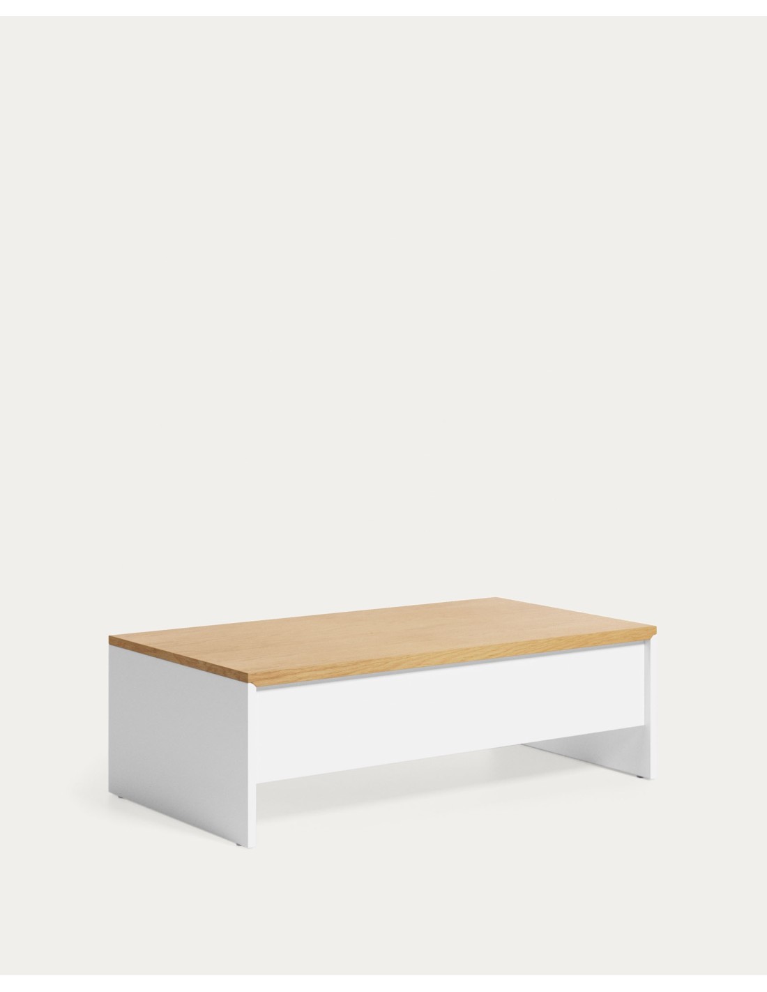 Mesa de centro elevable Abilen de chapa de roble y lacado blanco 110 x 60 cm FSC 100% - Kave Home