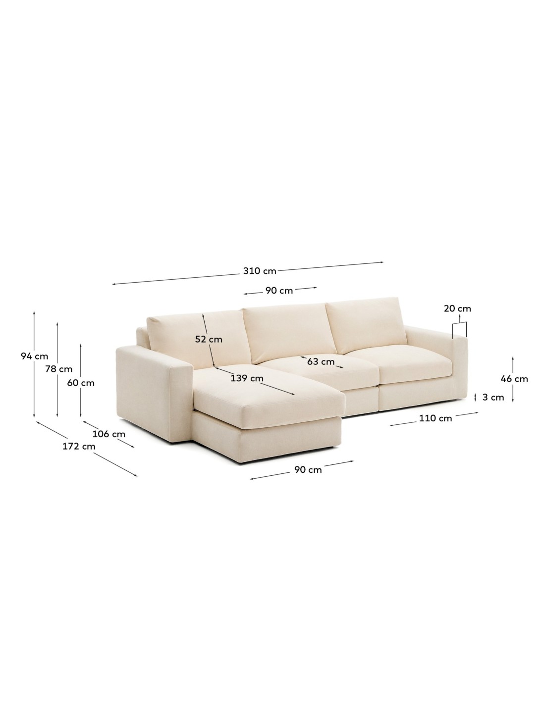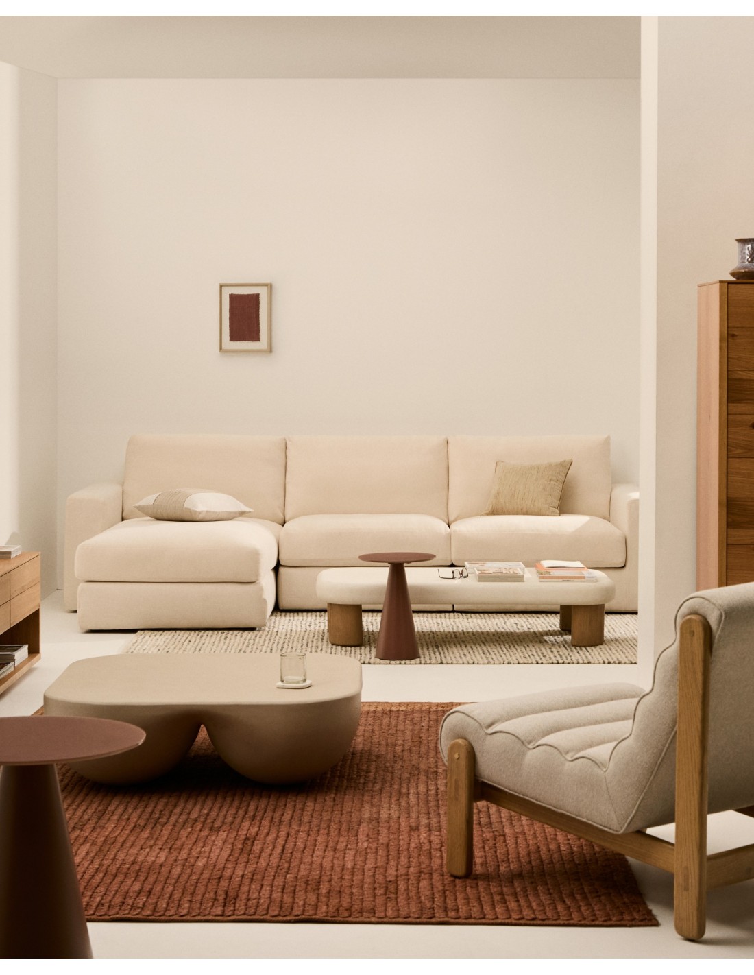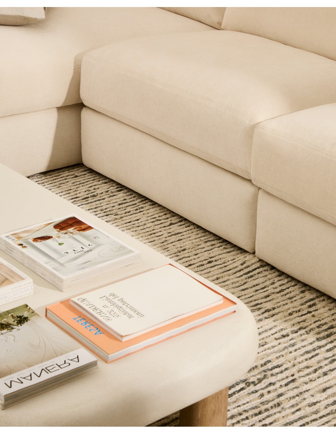 Sofá modular desenfundable Alea 4 plazas chenilla chaise longue izquierdo crudo 310 cm - Kave Home