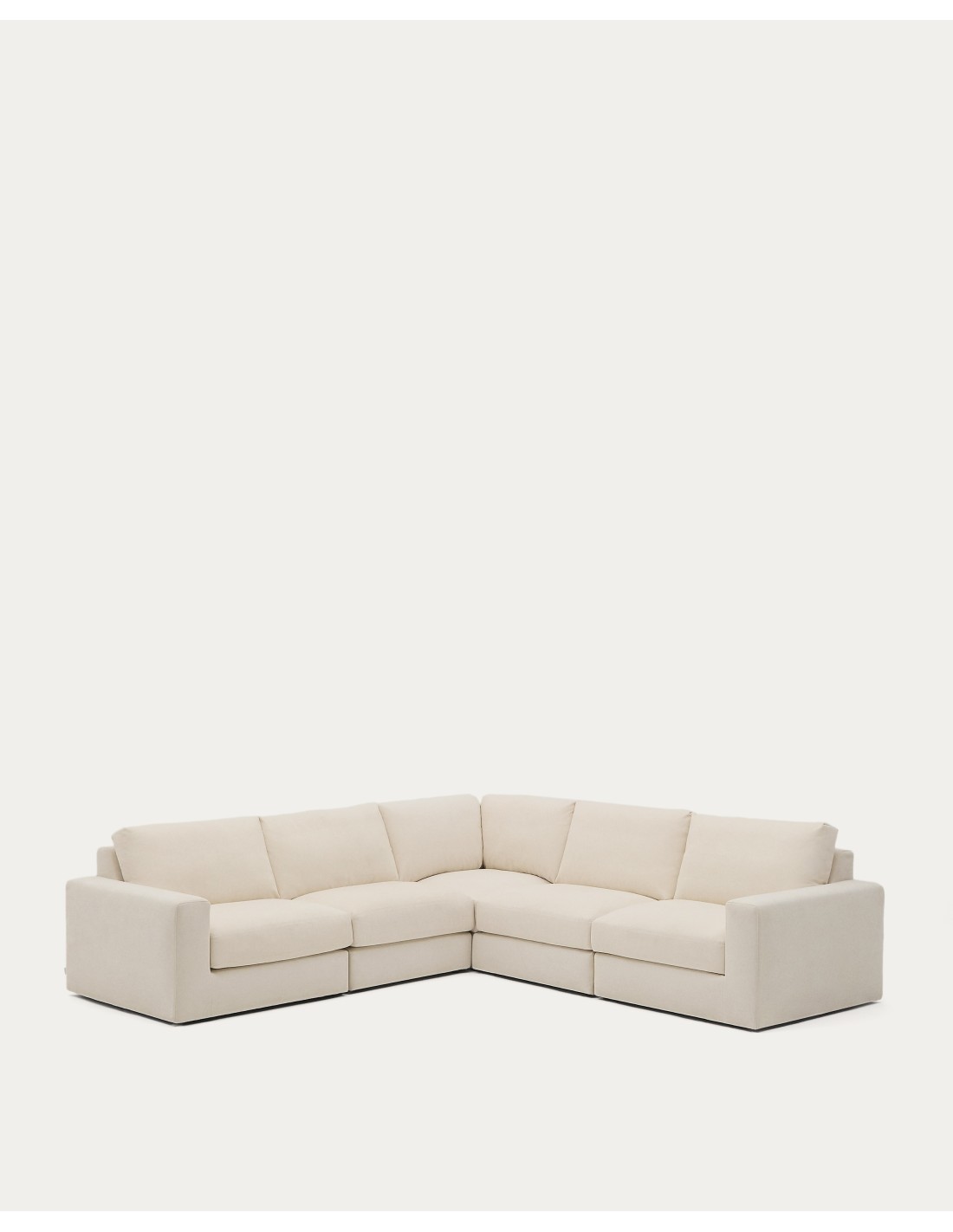 Sofá rinconero modular desenfundable Alea 5 plazas chenilla crudo 310 x 310 cm - Kave Home