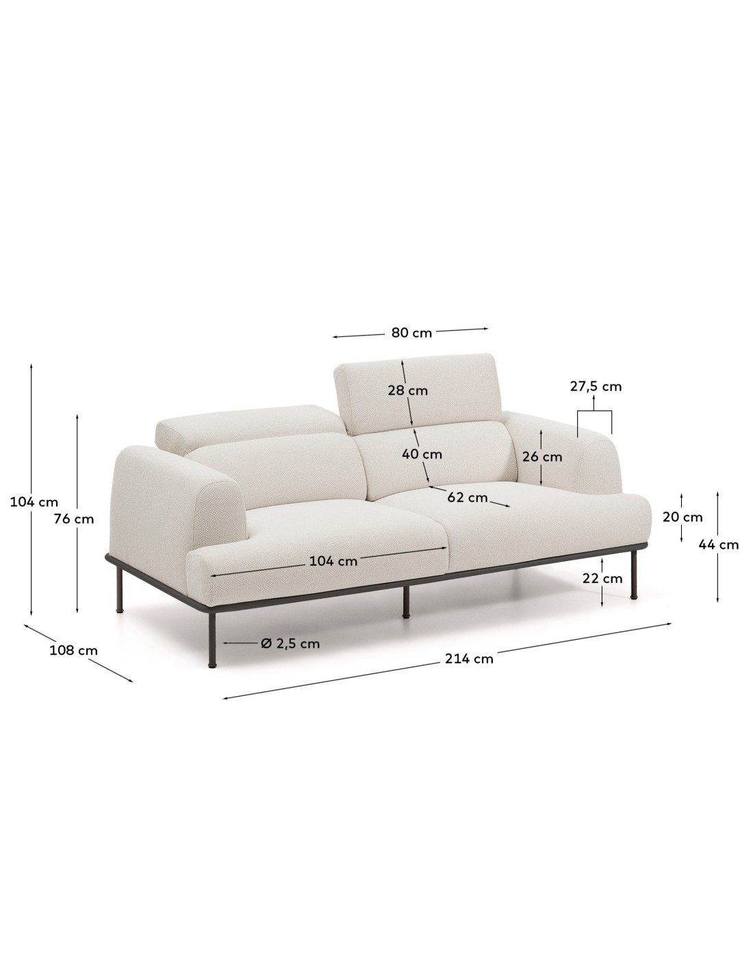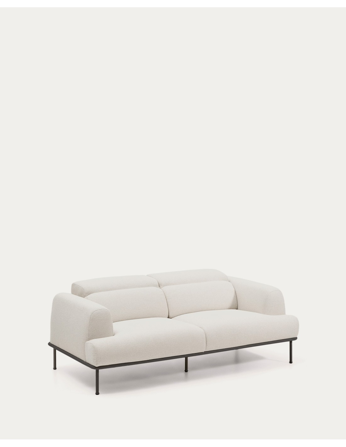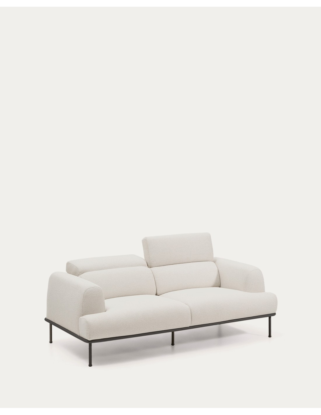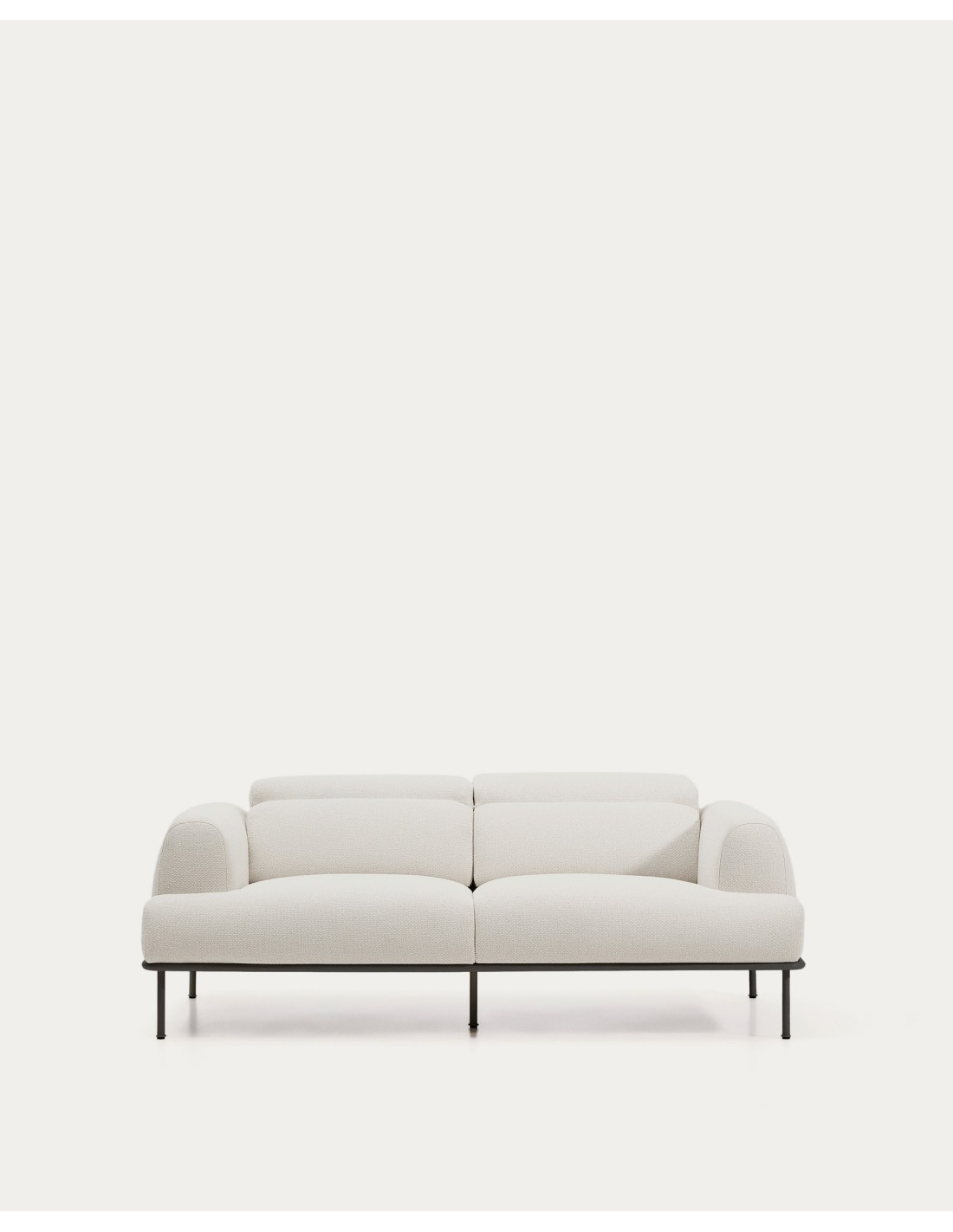 Sofá Aurum 2 plazas chenilla crudo con cabecero reclinable y base de metal gris mate 214 cm FSC Mix Credit - Kave Home