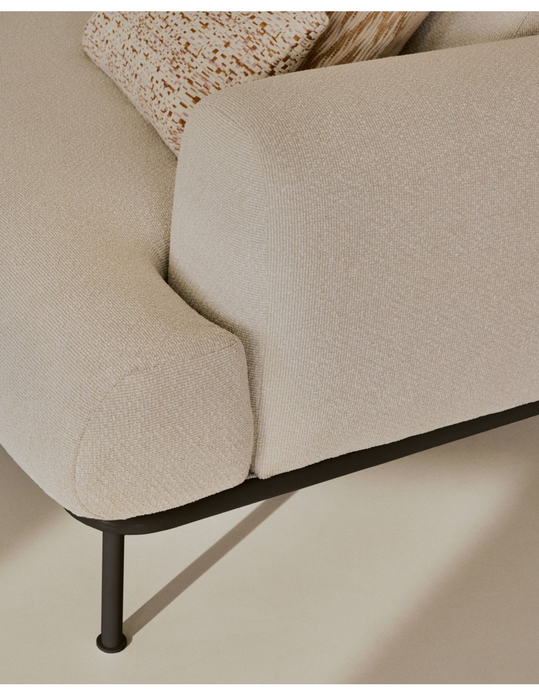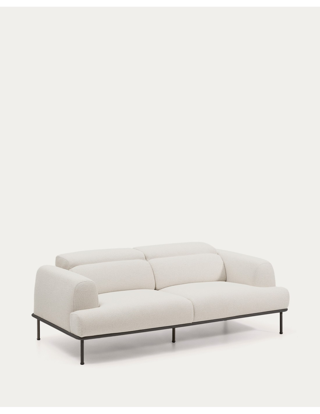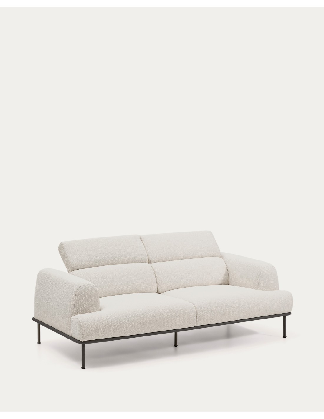 Sofá Aurum 3 plazas chenilla crudo con cabecero reclinable y base de metal gris mate 234 cm FSC Mix Credit - Kave Home