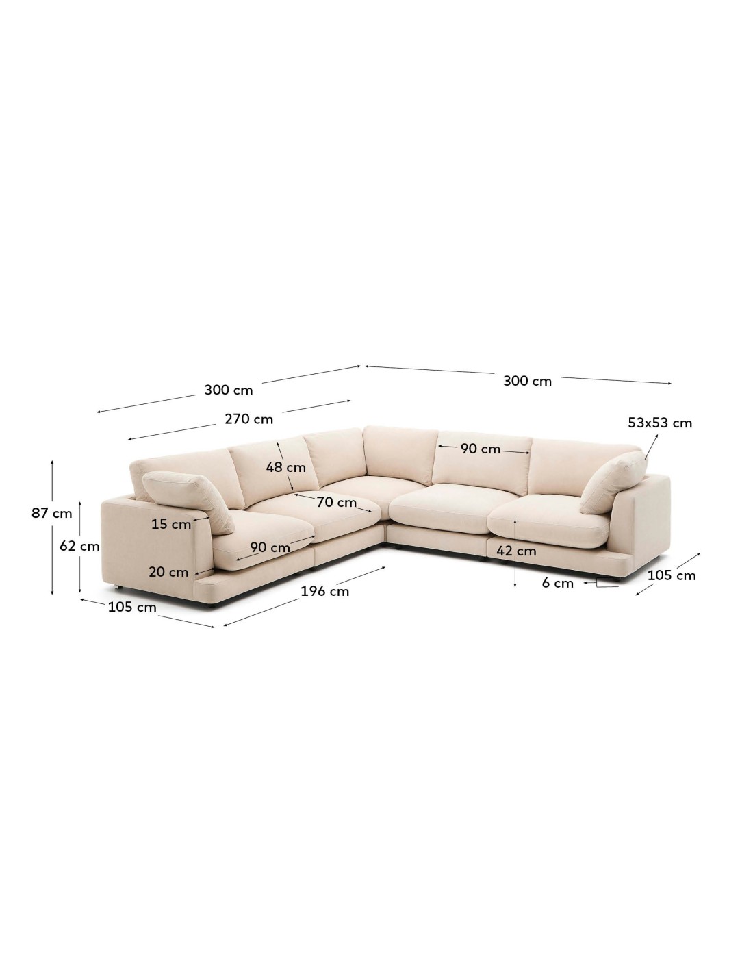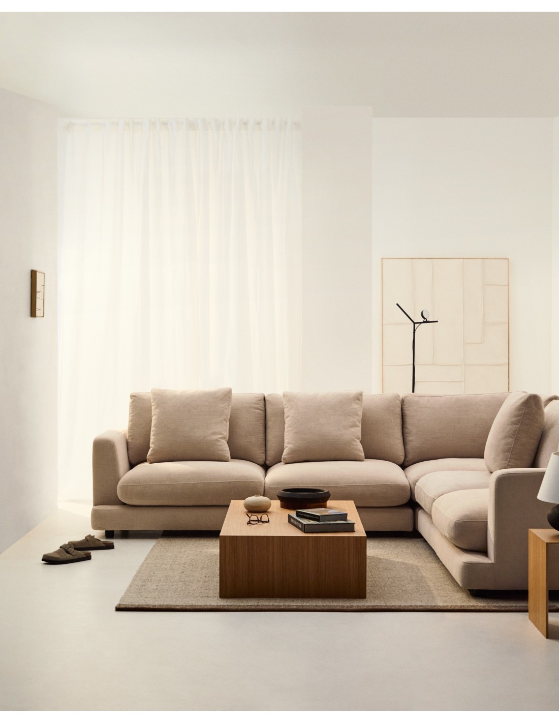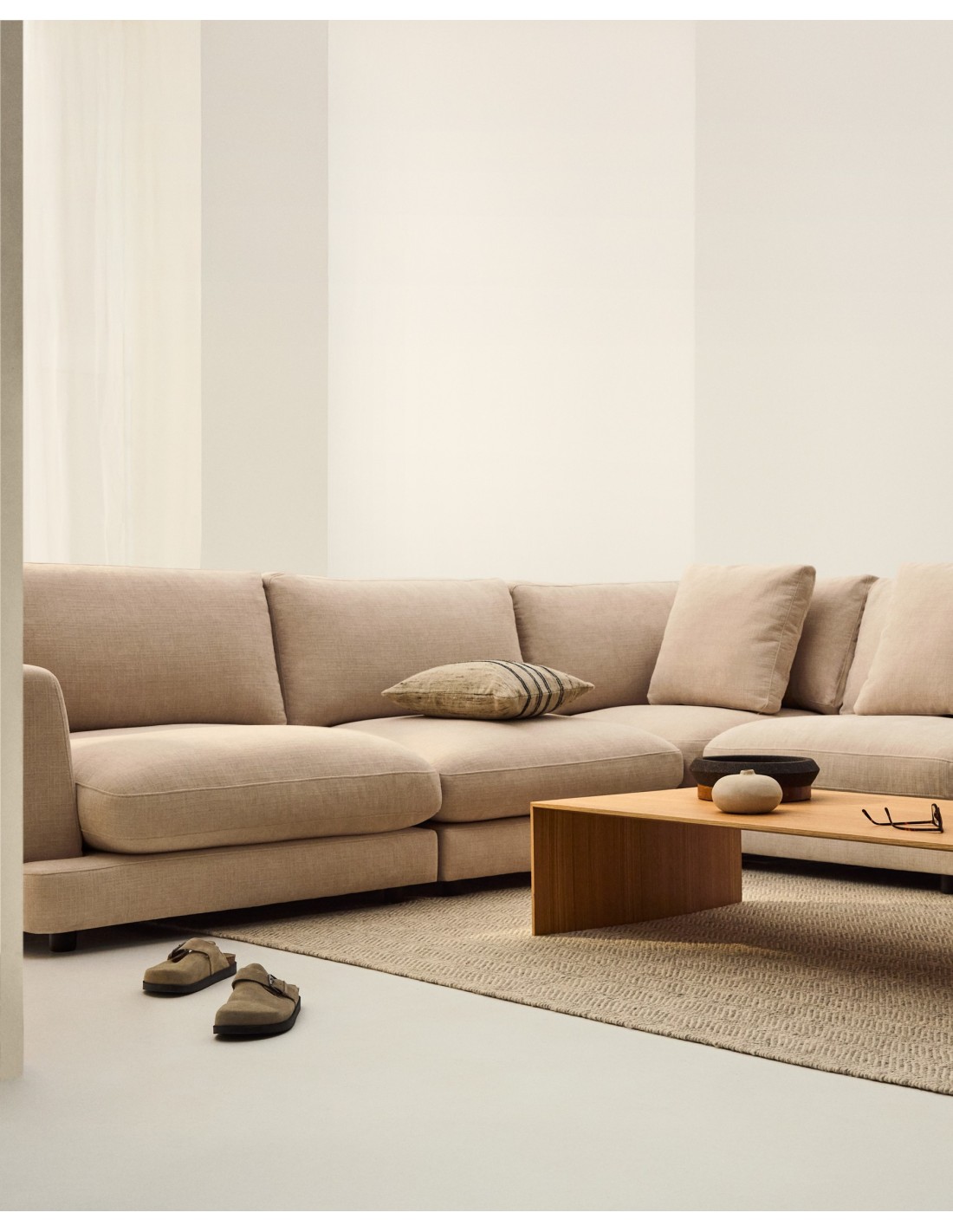 Sofá rinconero Gala 6 plazas de chenilla beige FSC Mix Credit 300 x 300 cm - Kave Home