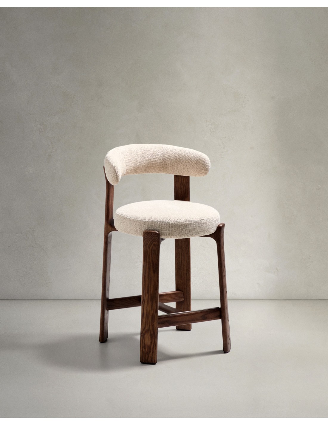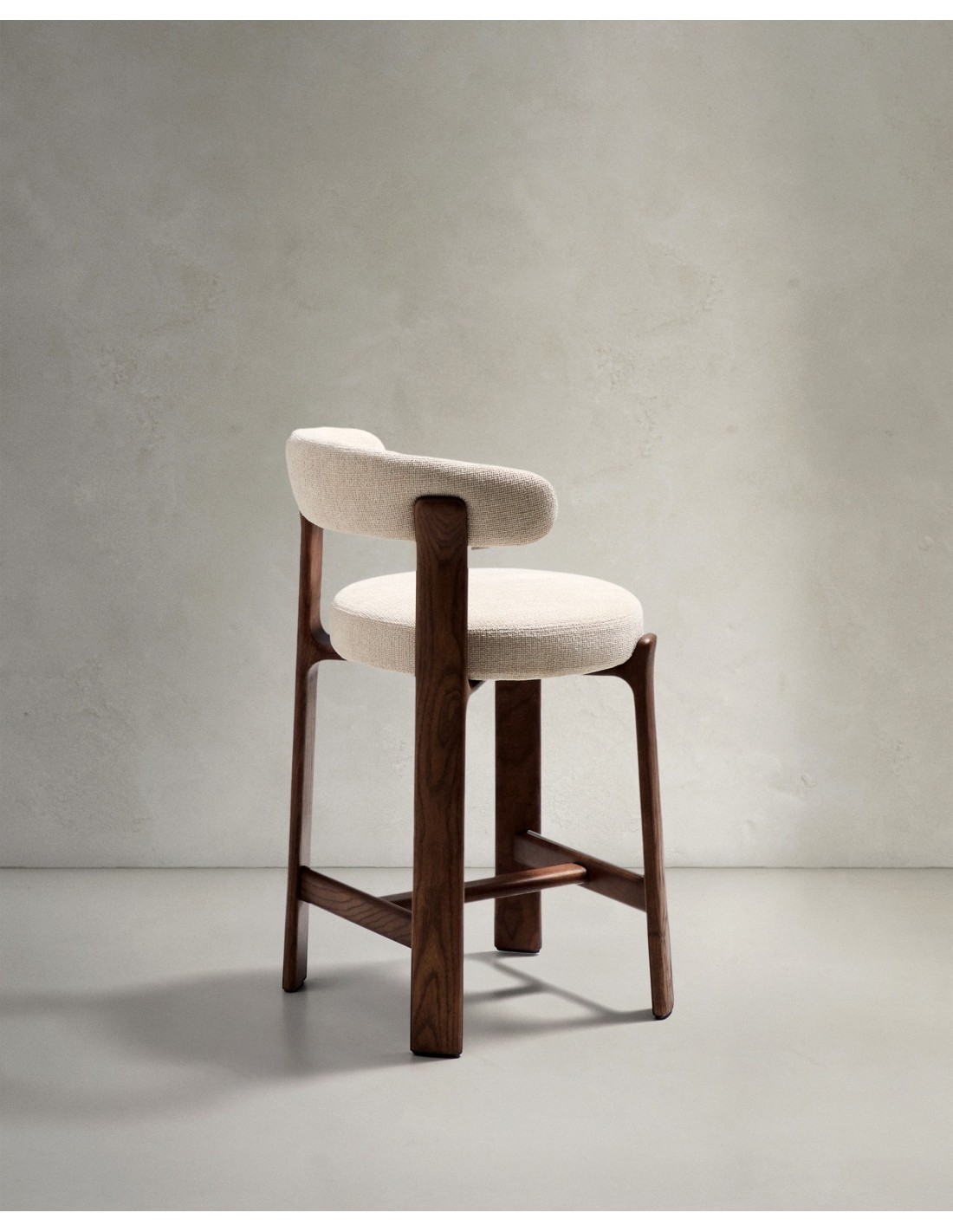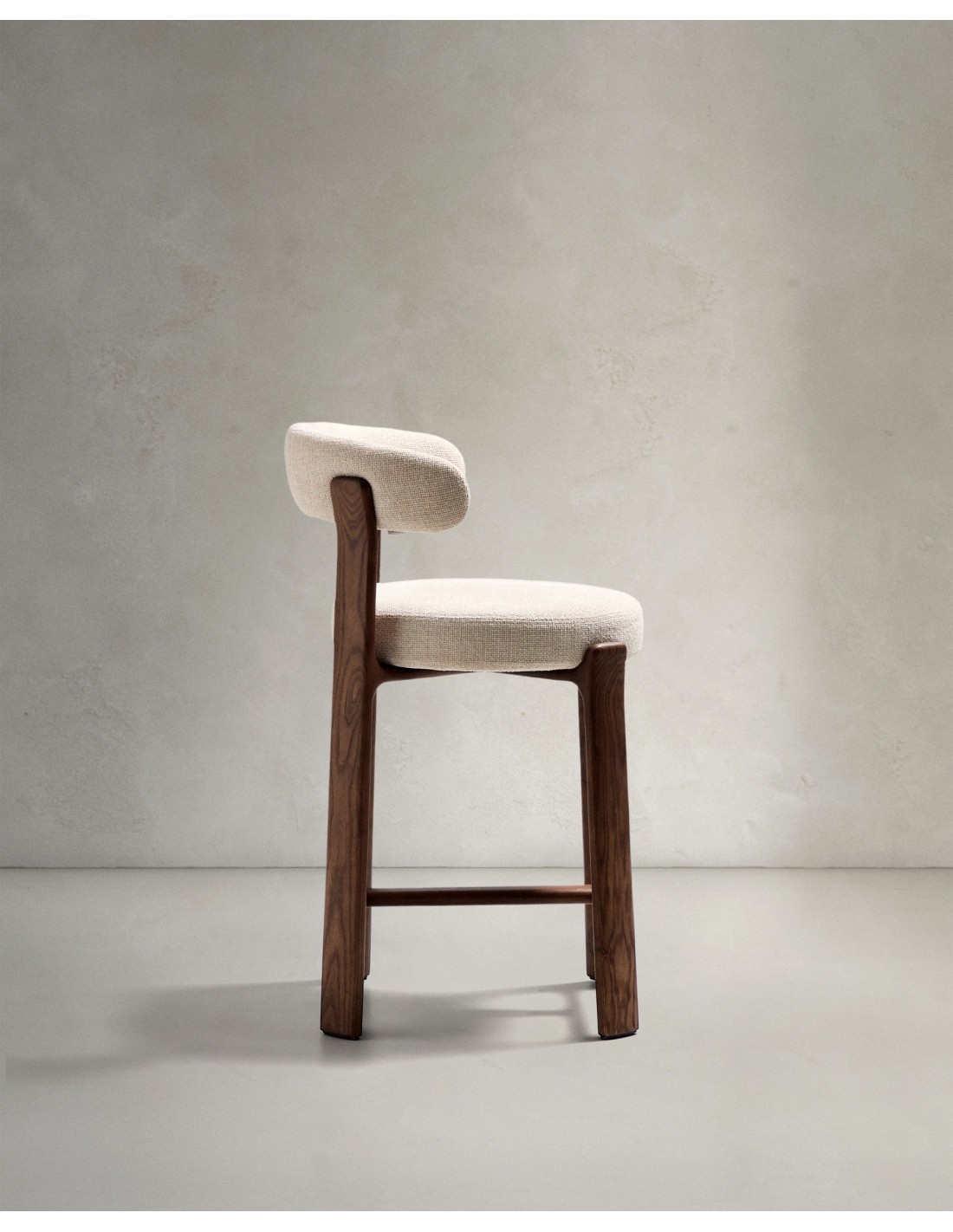 Taburete Granite de chenilla beige y madera maciza de fresno con acabado tono nogal FSC 100% 65 cm - Kave Home
