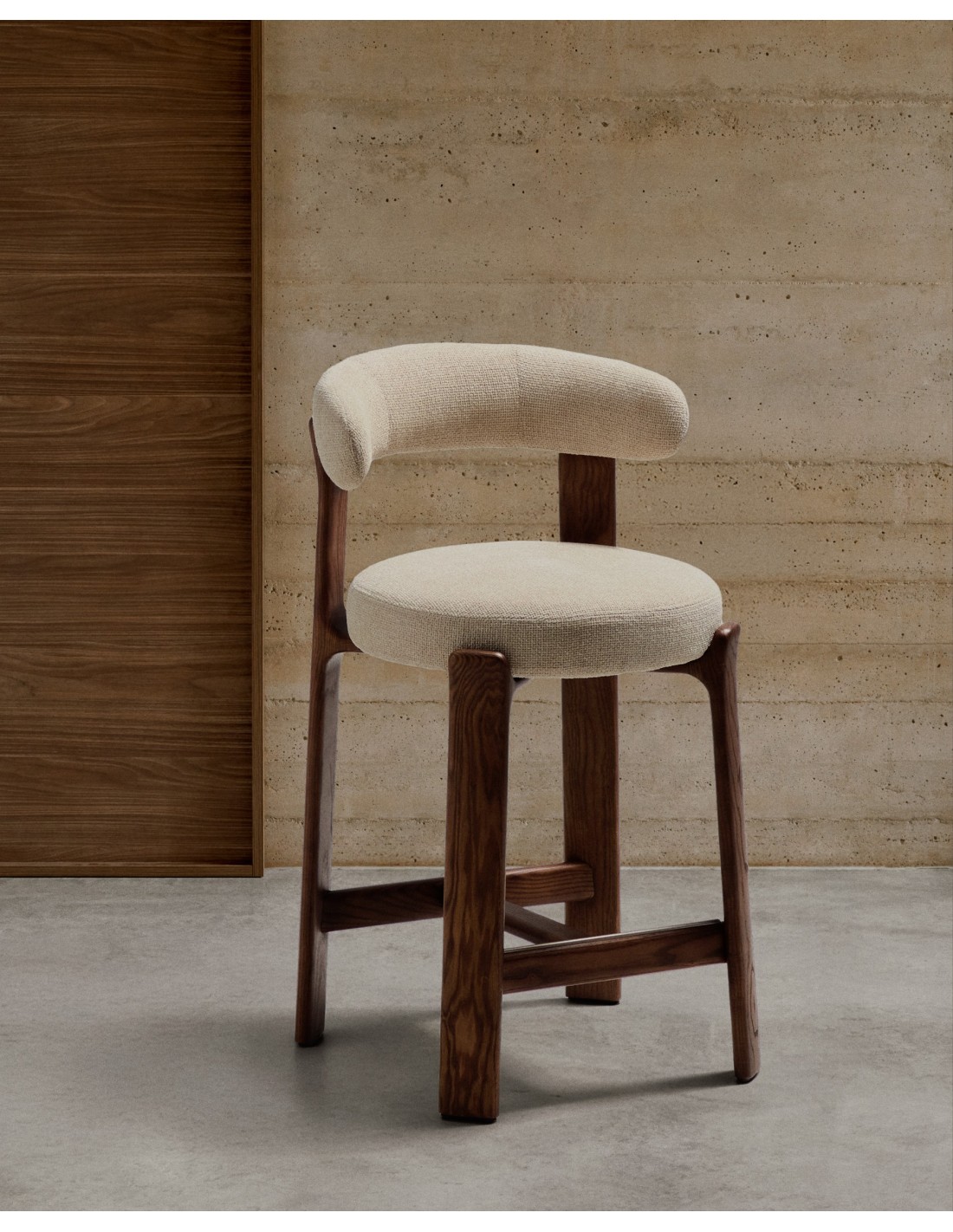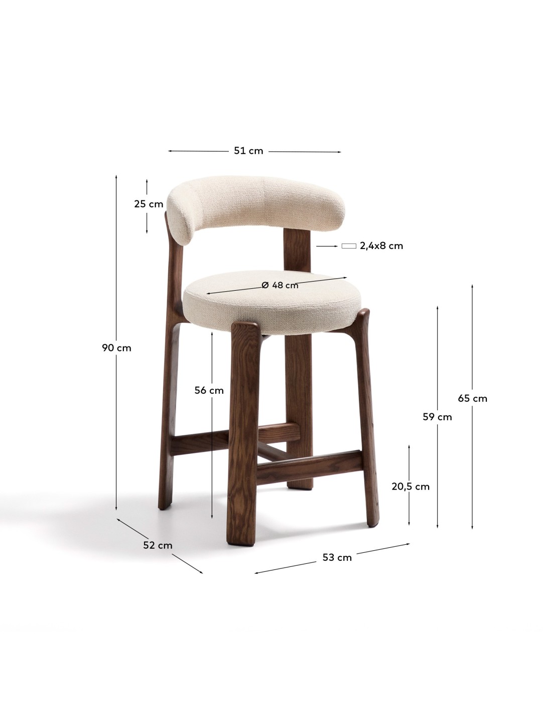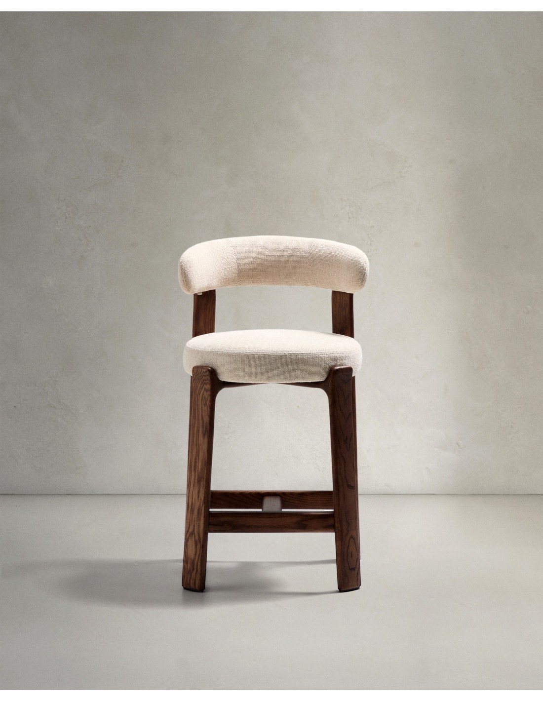 Taburete Granite de chenilla beige y madera maciza de fresno con acabado tono nogal FSC 100% 65 cm - Kave Home