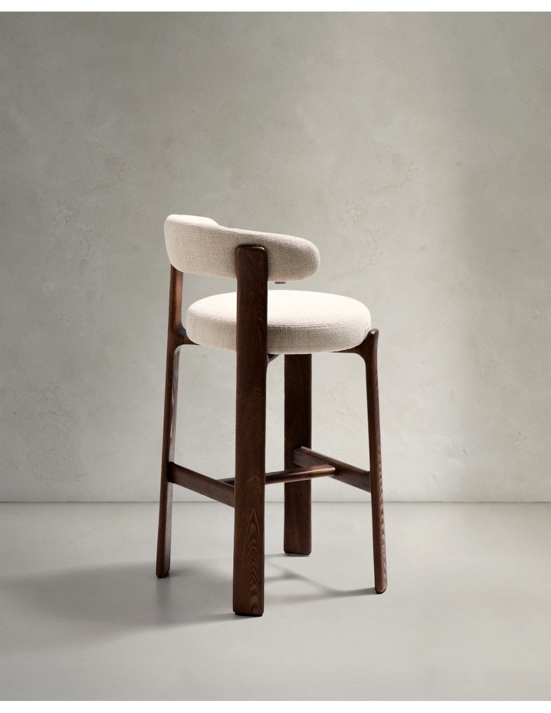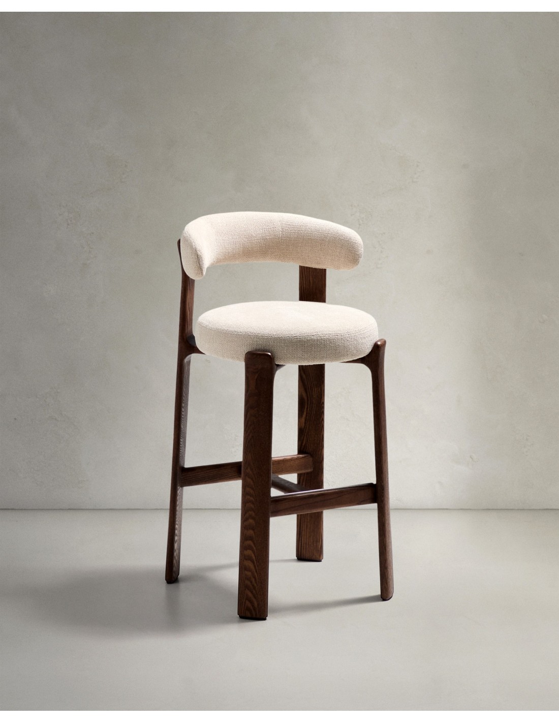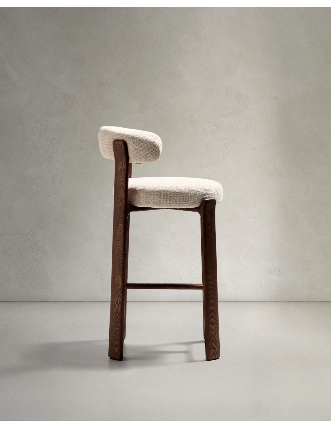 Taburete Granite de chenilla beige y madera maciza de fresno con acabado tono nogal FSC 100% 75 cm - Kave Home
