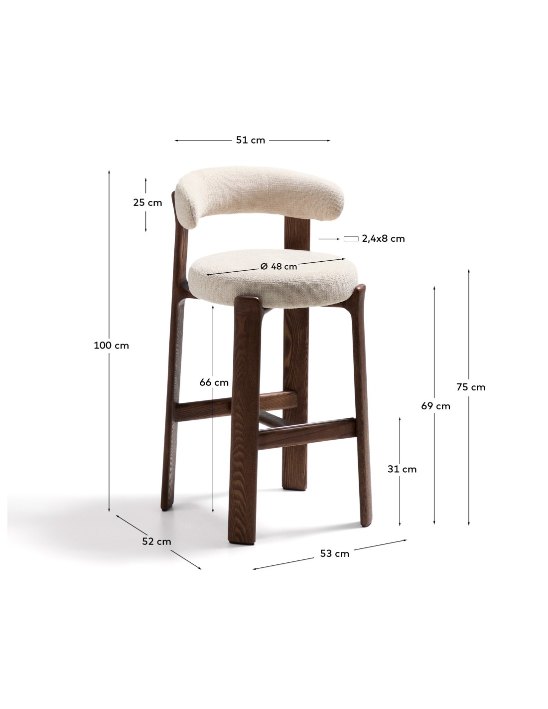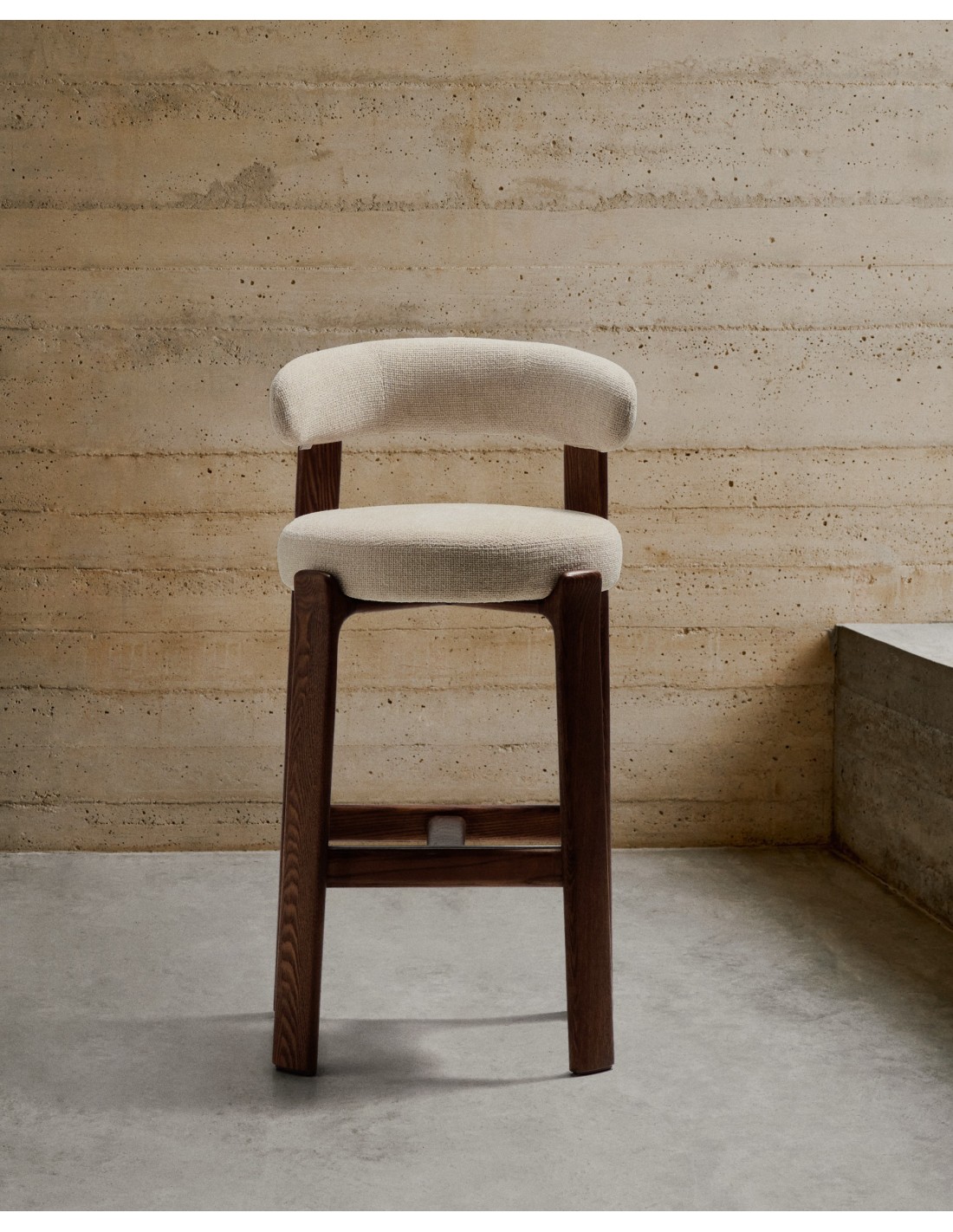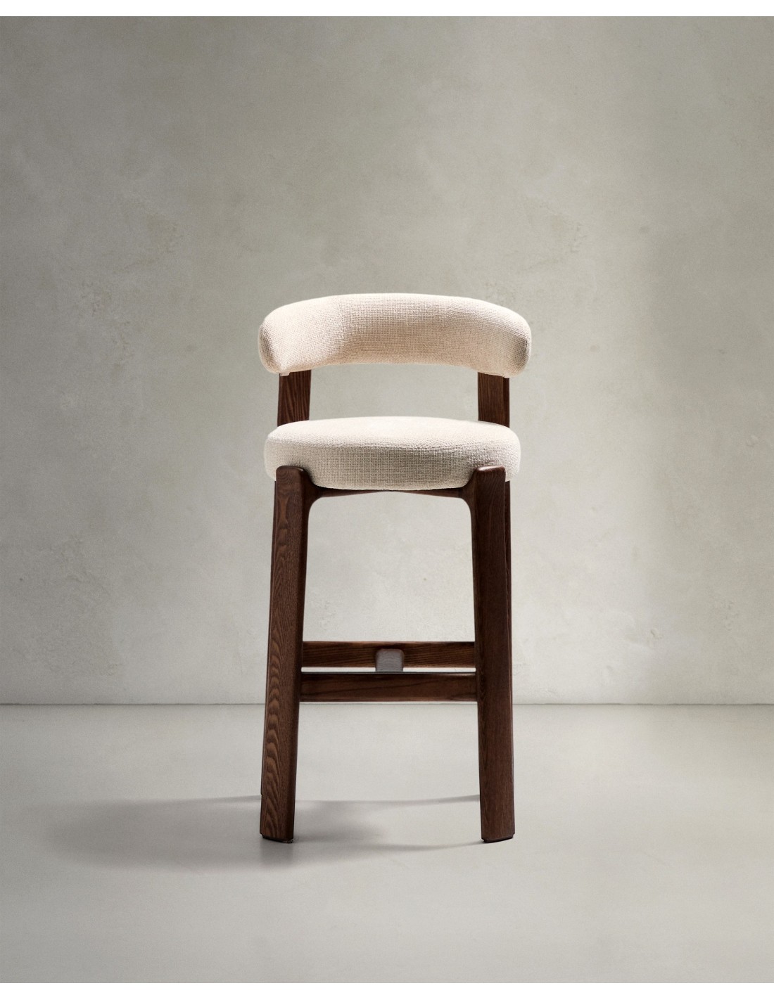 Taburete Granite de chenilla beige y madera maciza de fresno con acabado tono nogal FSC 100% 75 cm - Kave Home
