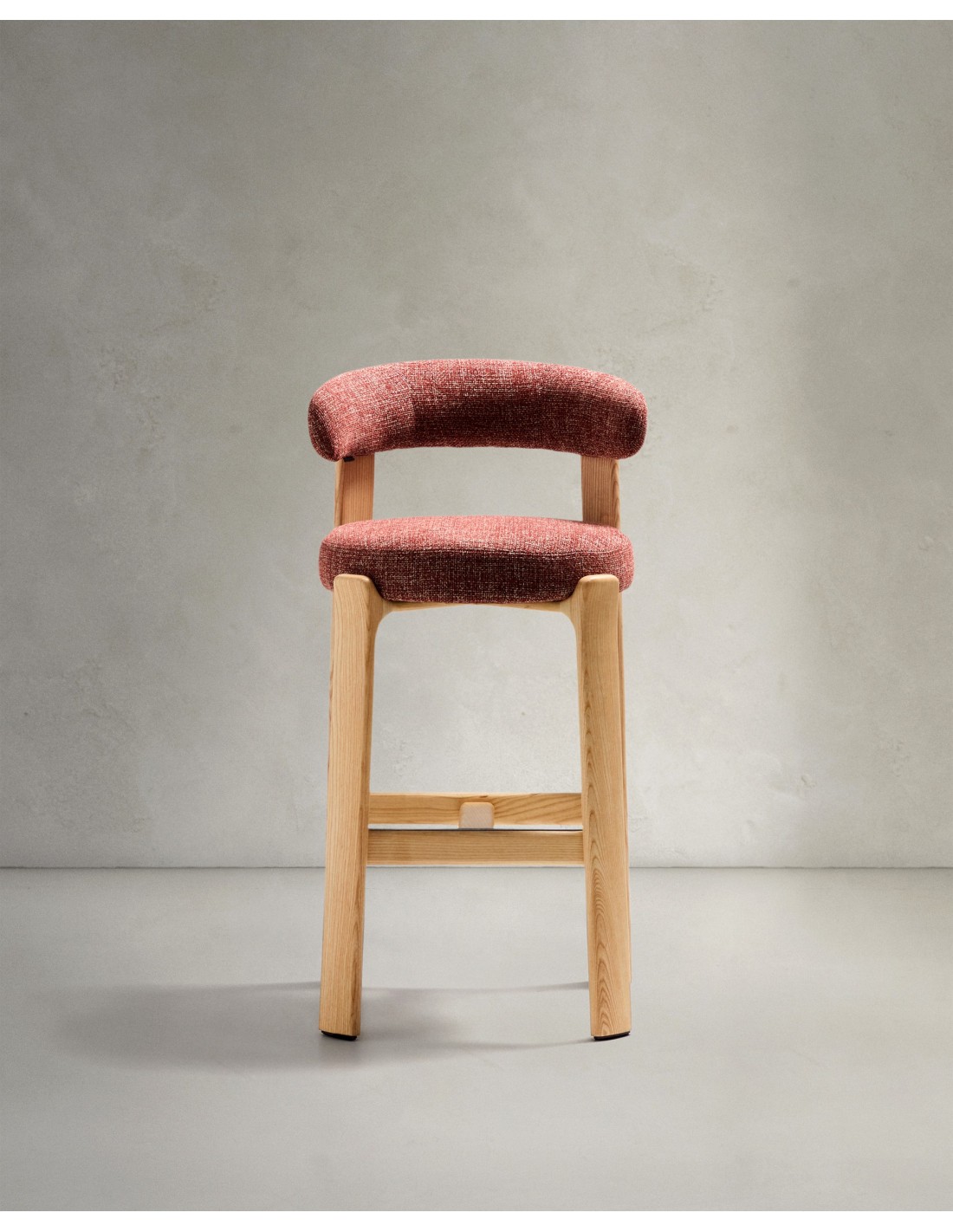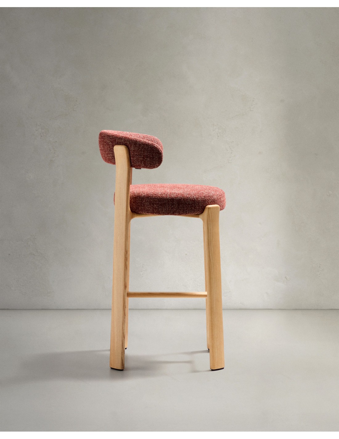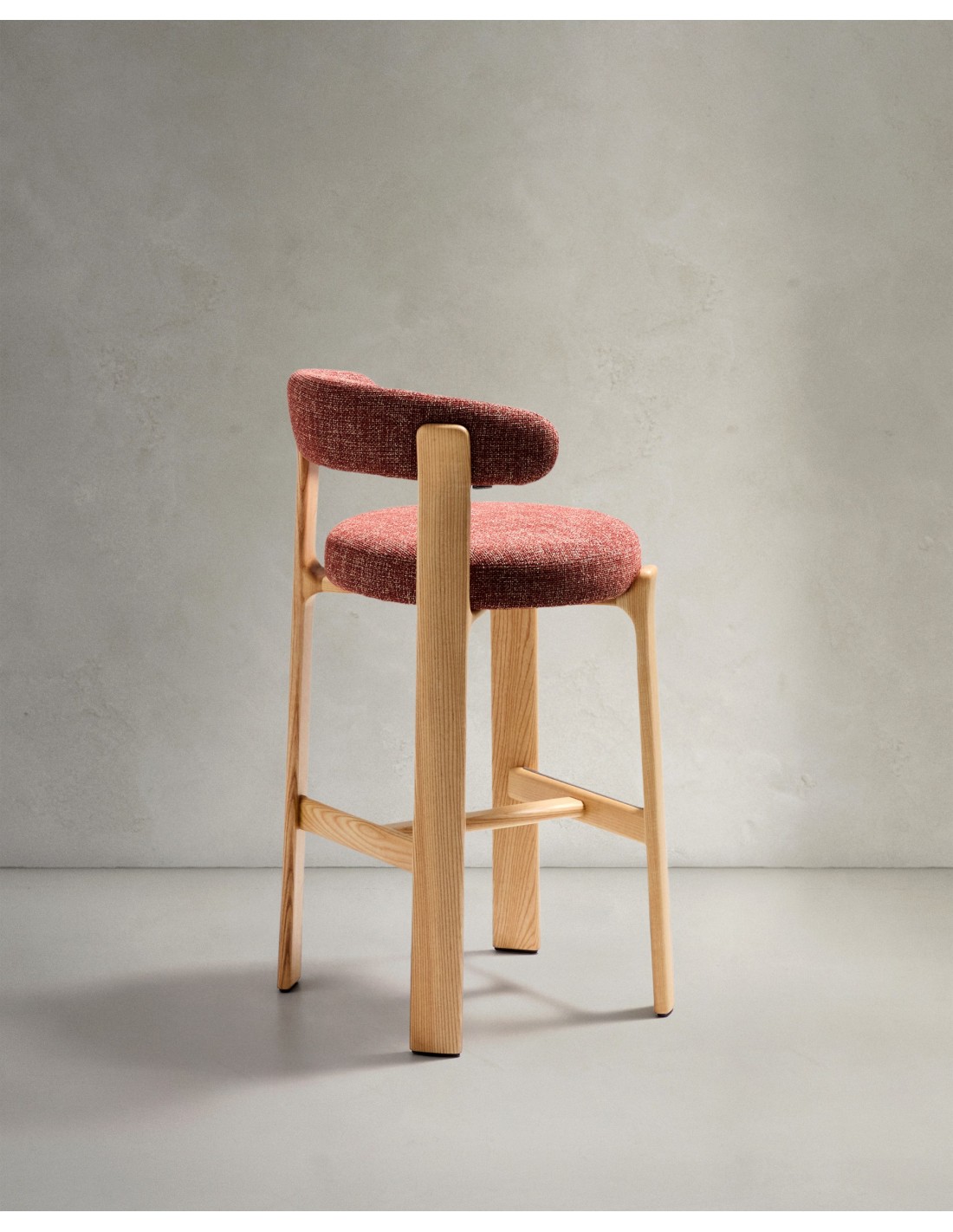 Taburete Granite de chenilla terracota y madera maciza de fresno con acabado tono natural FSC 100% 75 cm - Kave Home