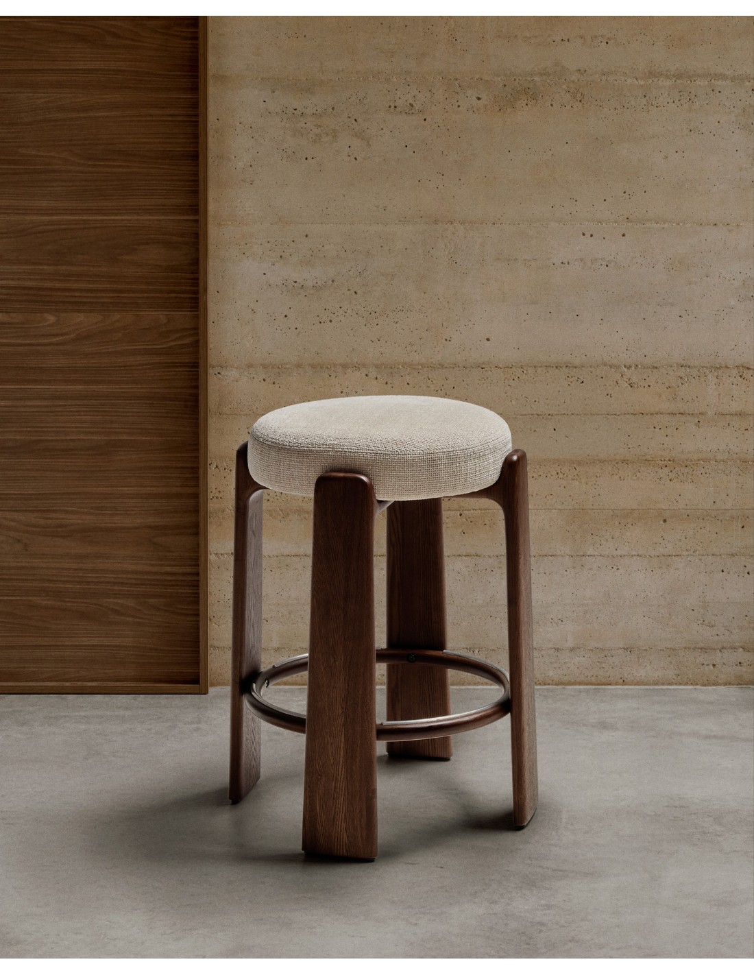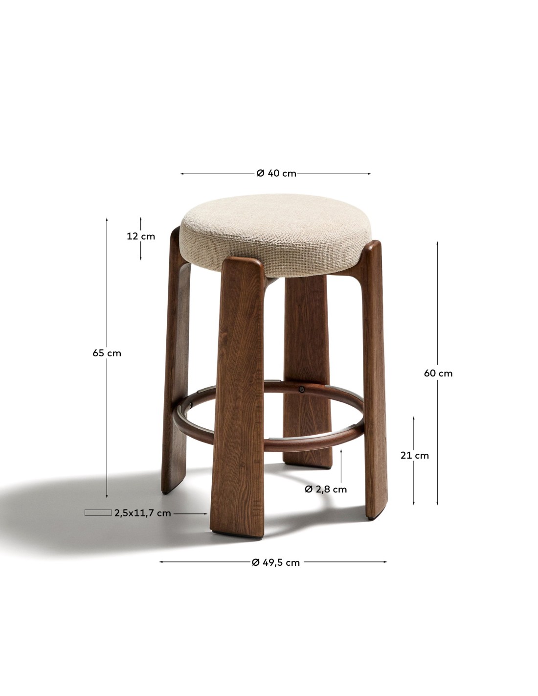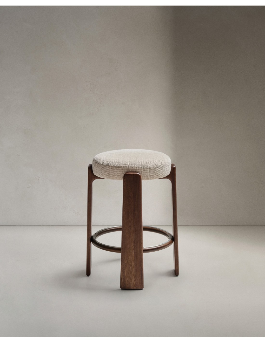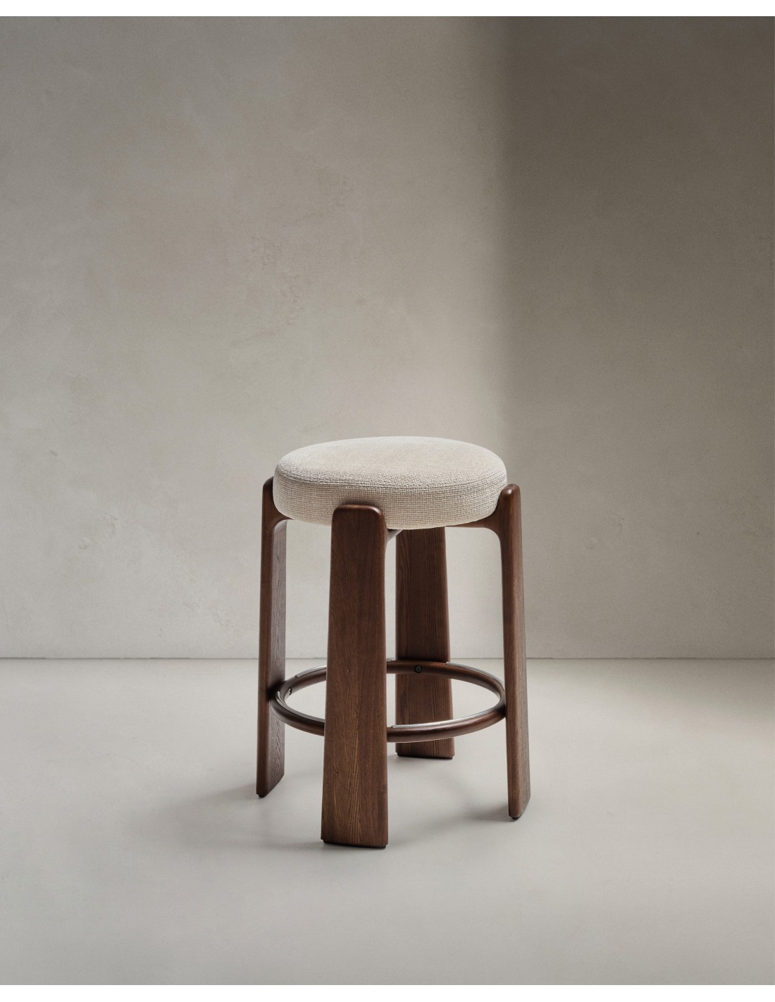 Taburete Granite de chenilla beige y madera maciza de fresno con acabado tono nogal FSC 100% 65 cm - Kave Home