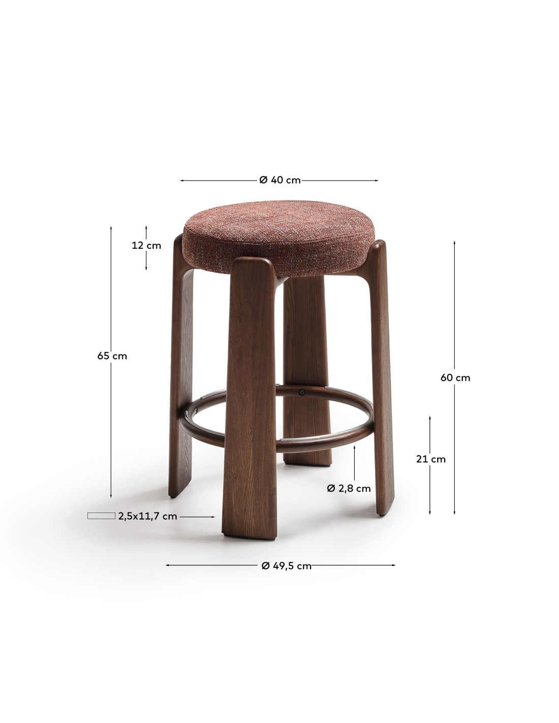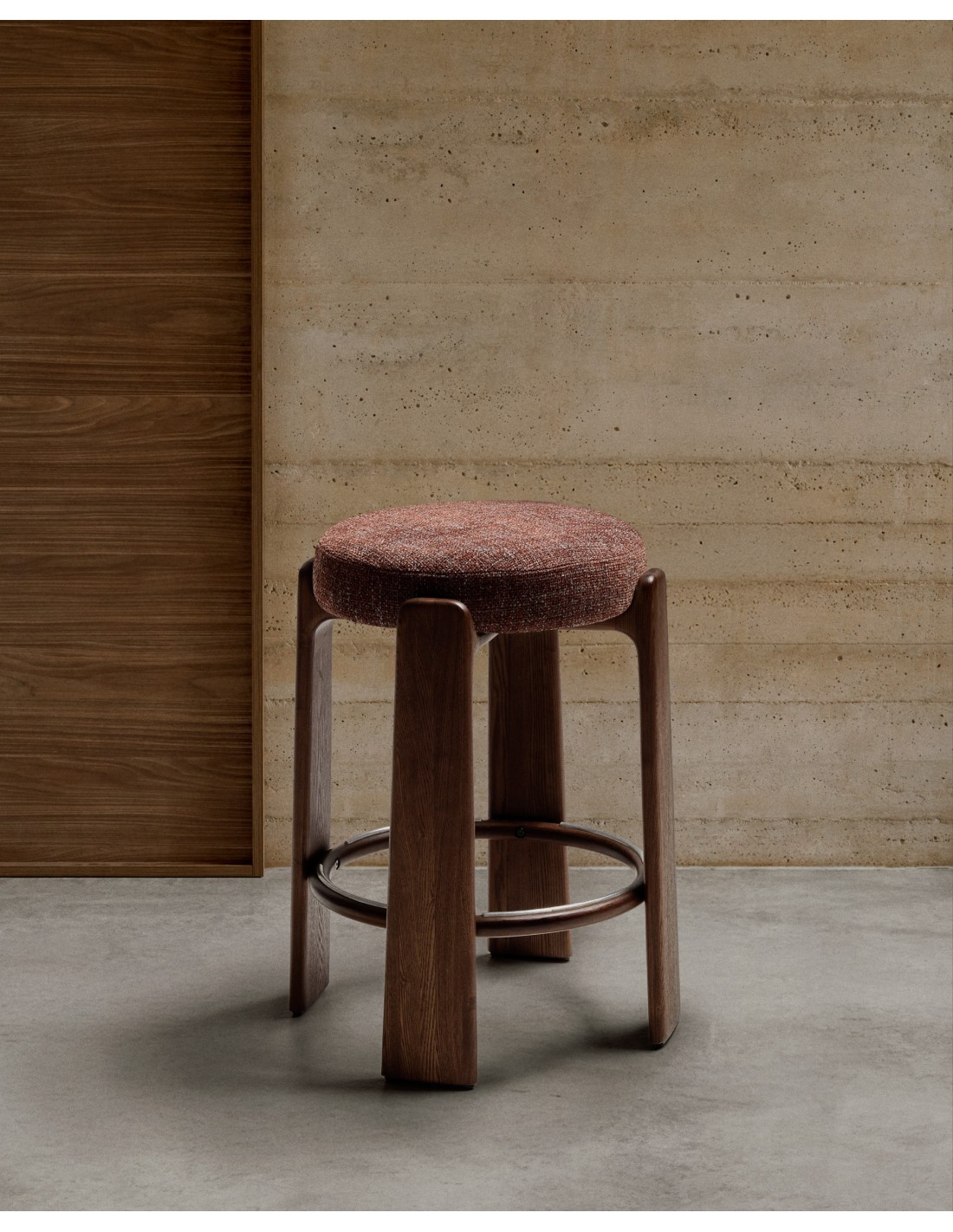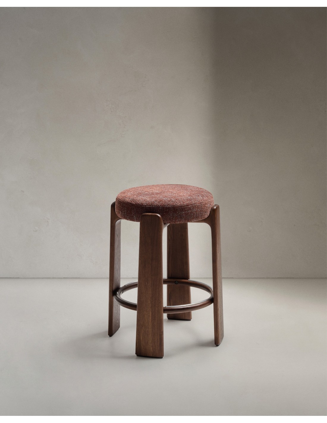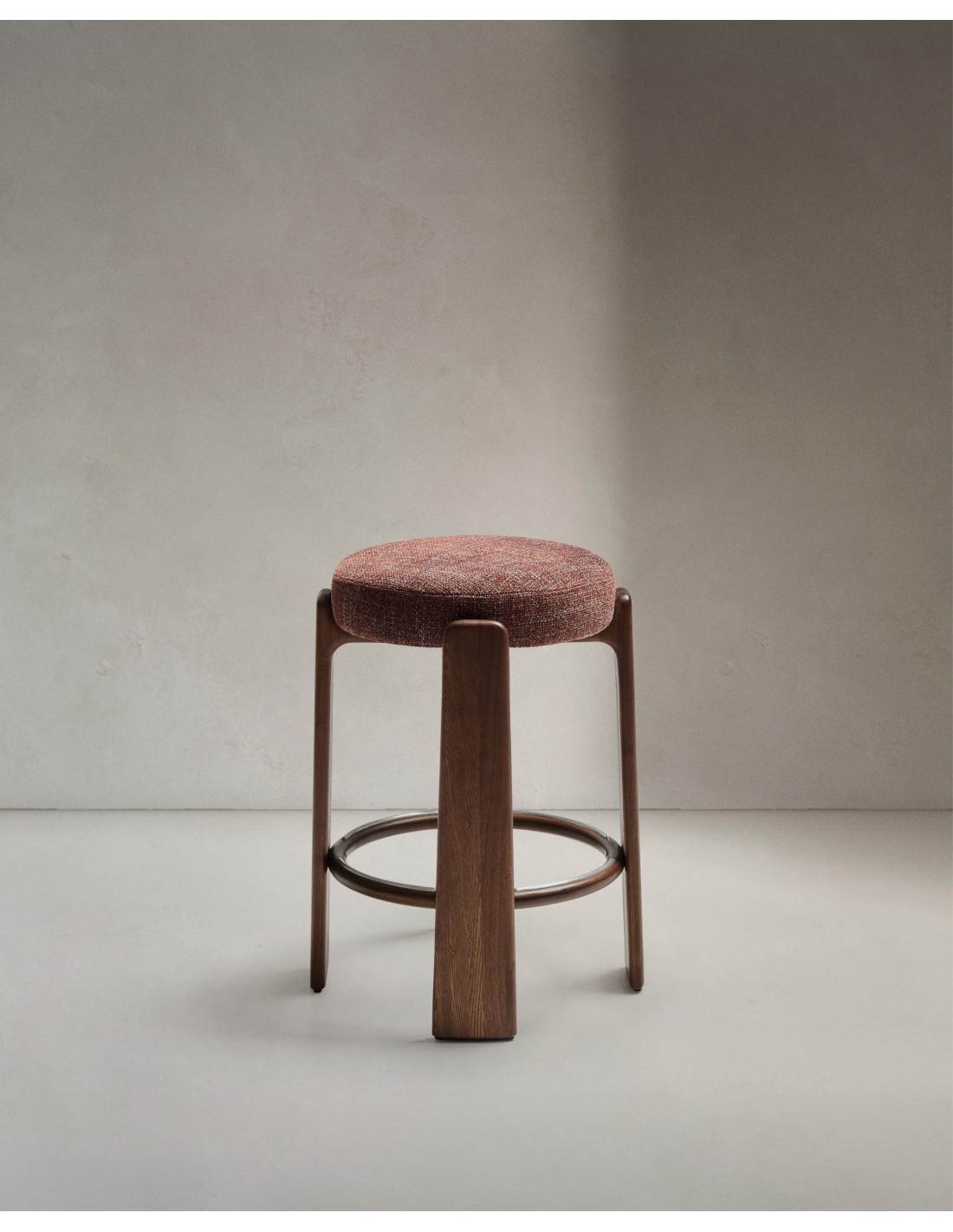 Taburete Granite de chenilla marrón y madera maciza de fresno con acabado tono nogal FSC 100% 65 cm - Kave Home