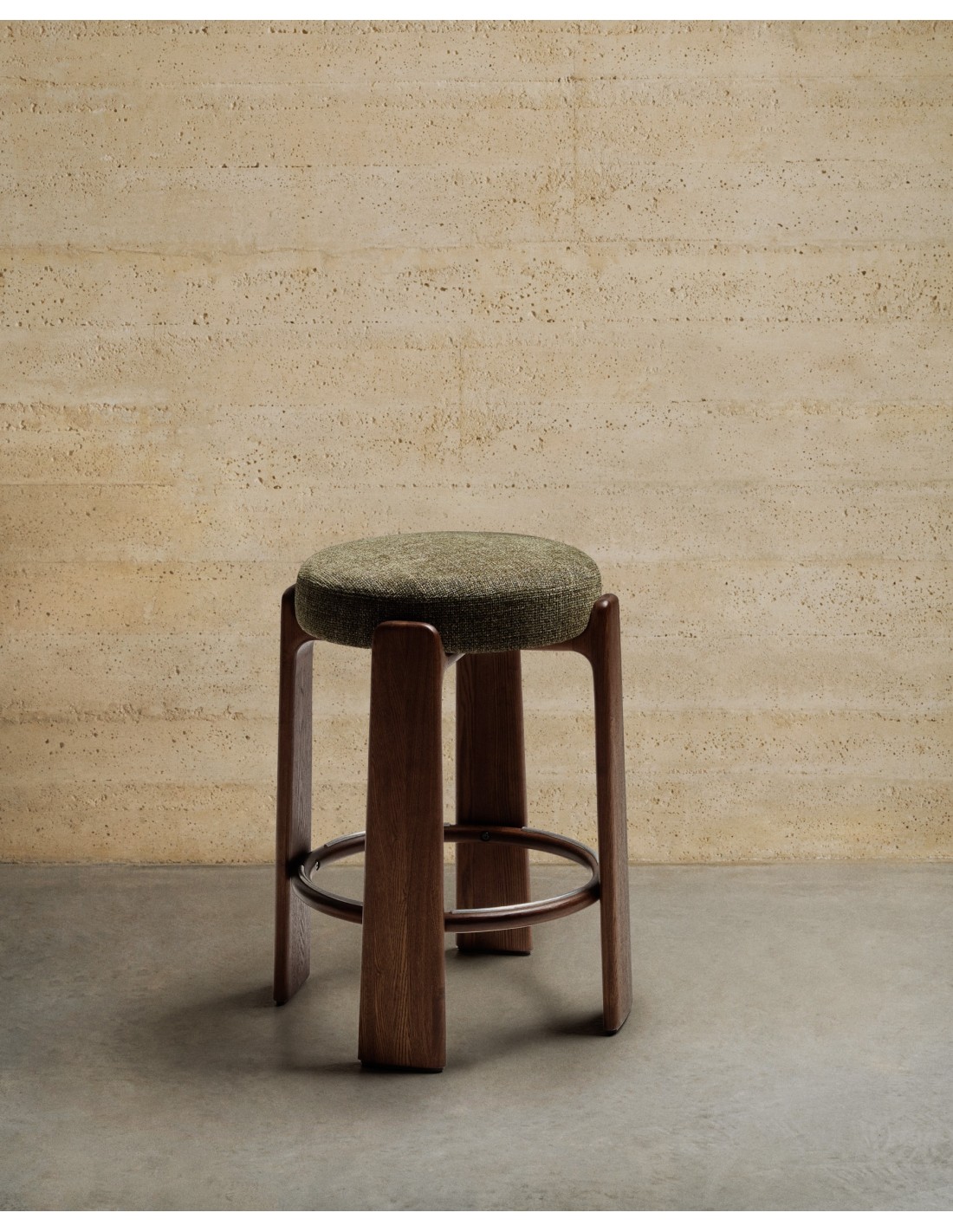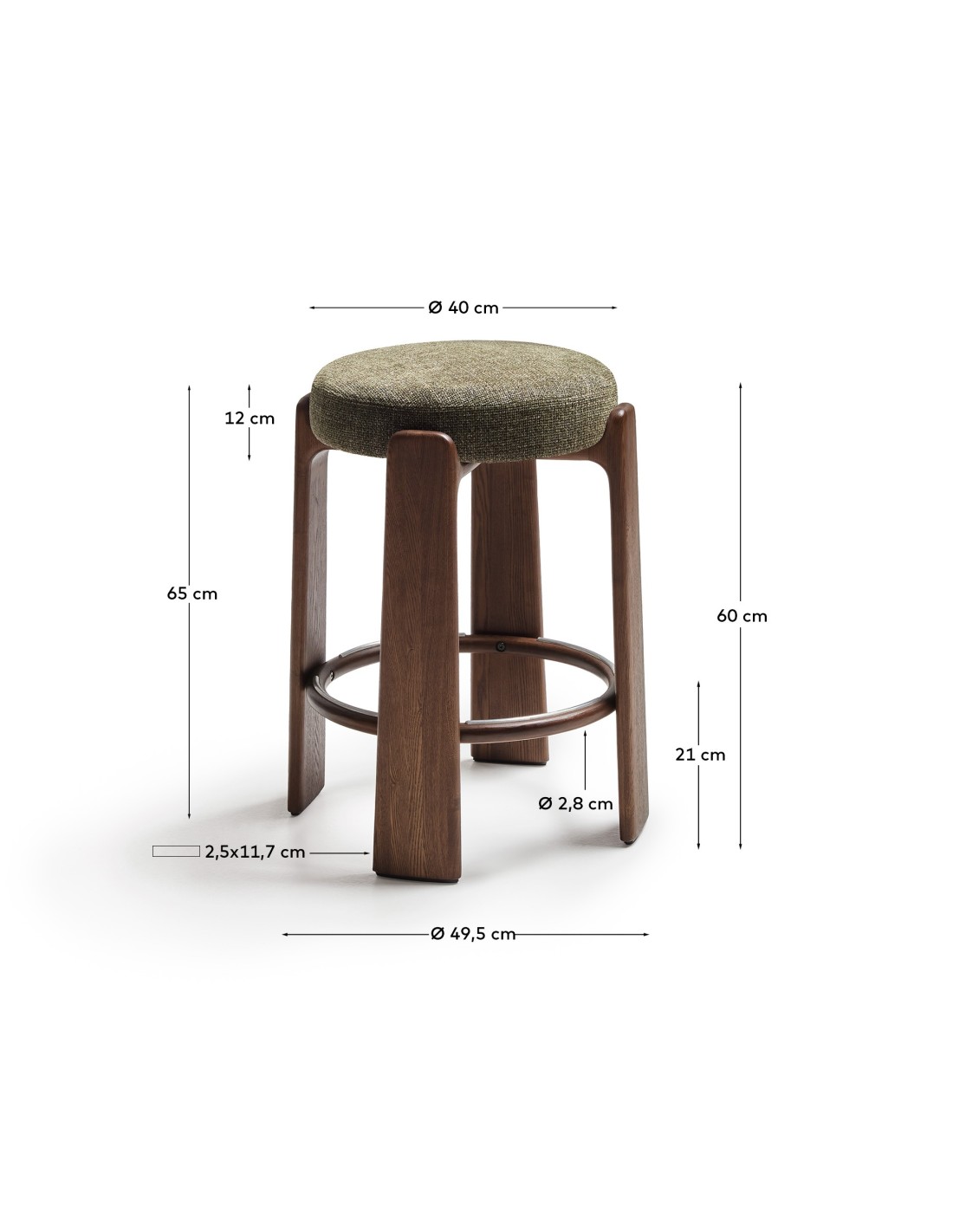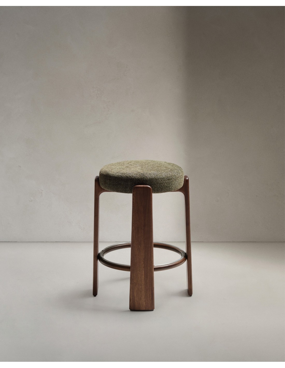 Taburete Granite de chenilla verde y madera maciza de fresno con acabado tono nogal FSC 100% 65 cm - Kave Home