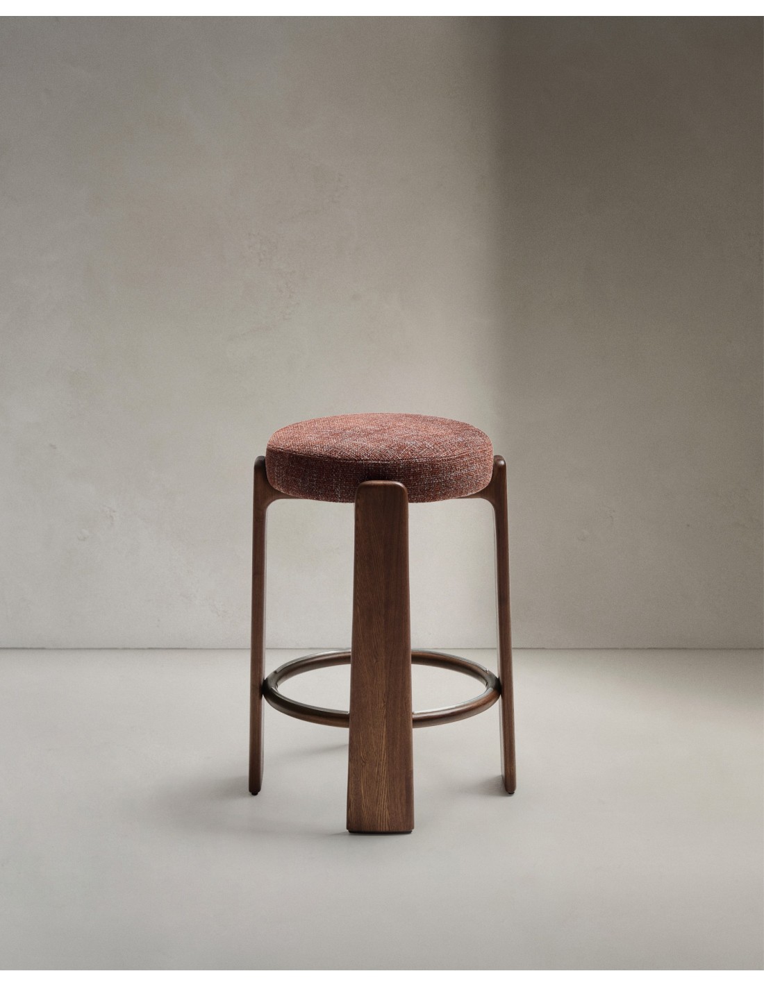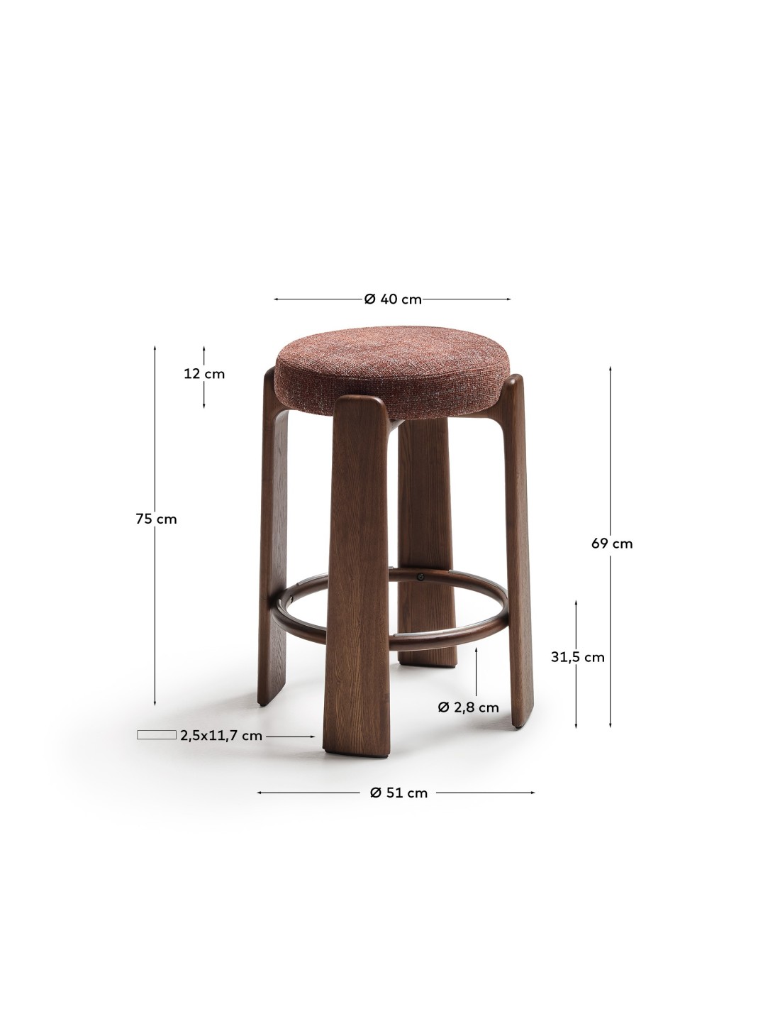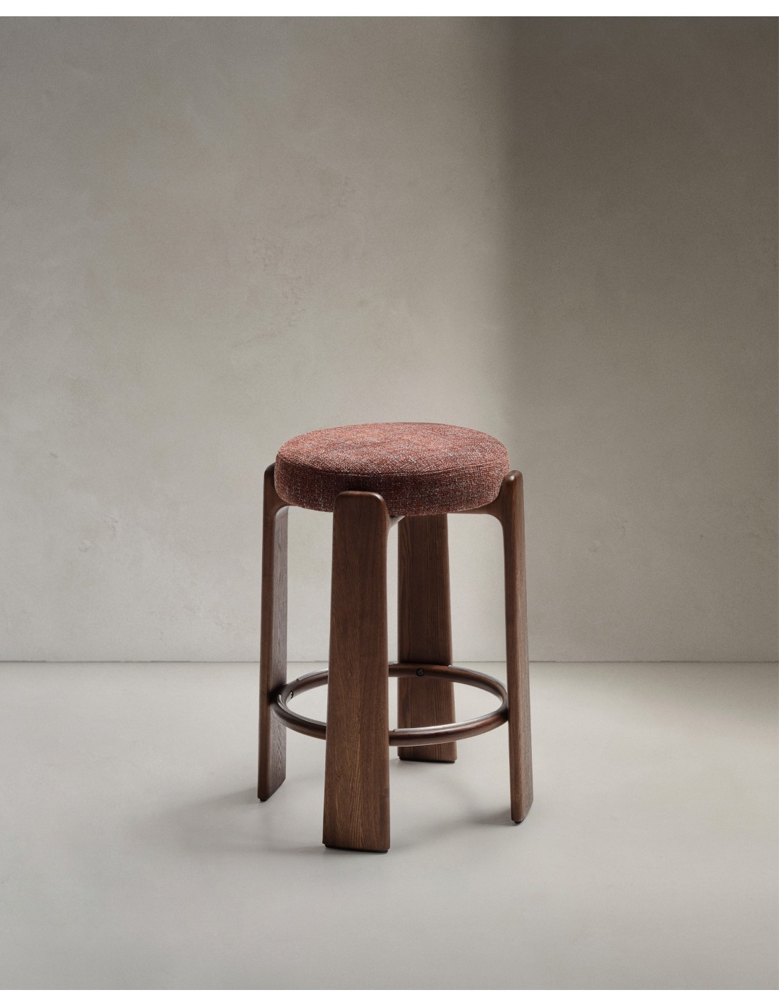 Taburete Granite de chenilla marrón y madera maciza de fresno con acabado tono nogal FSC 100% 75 cm - Kave Home