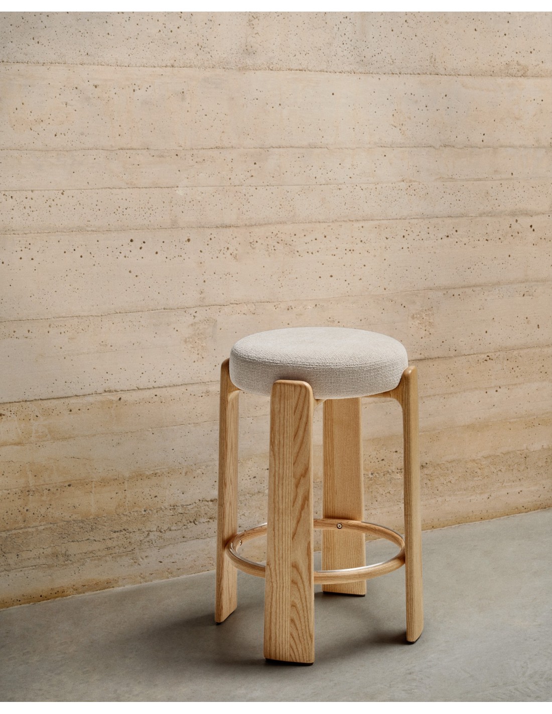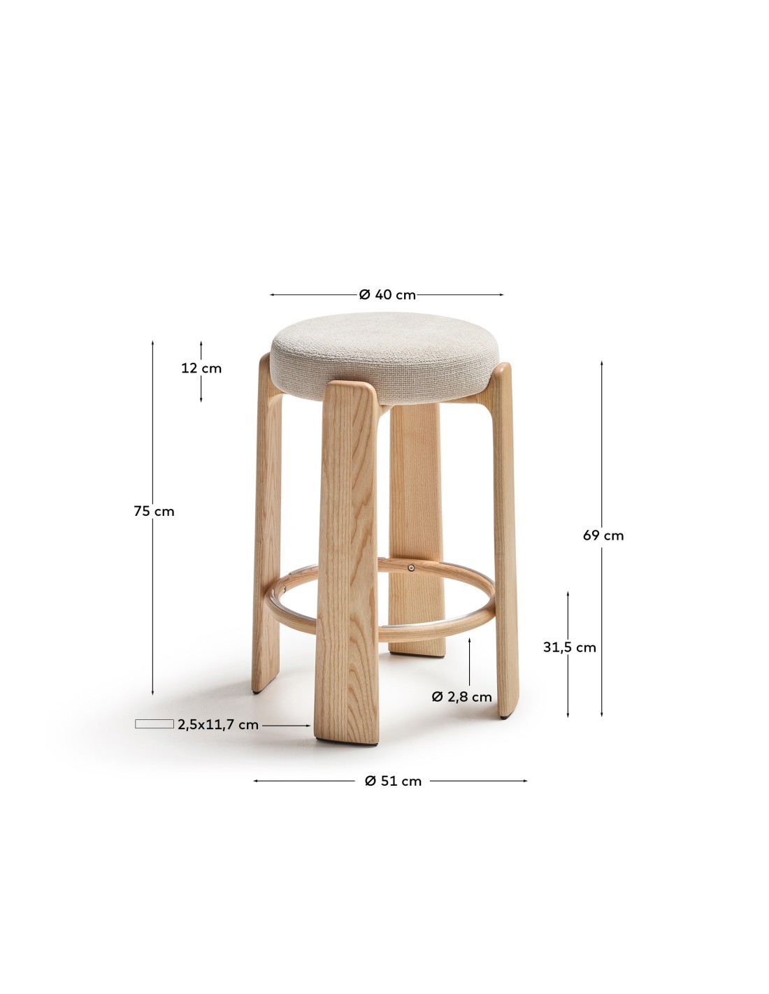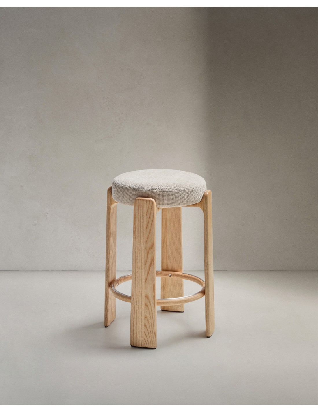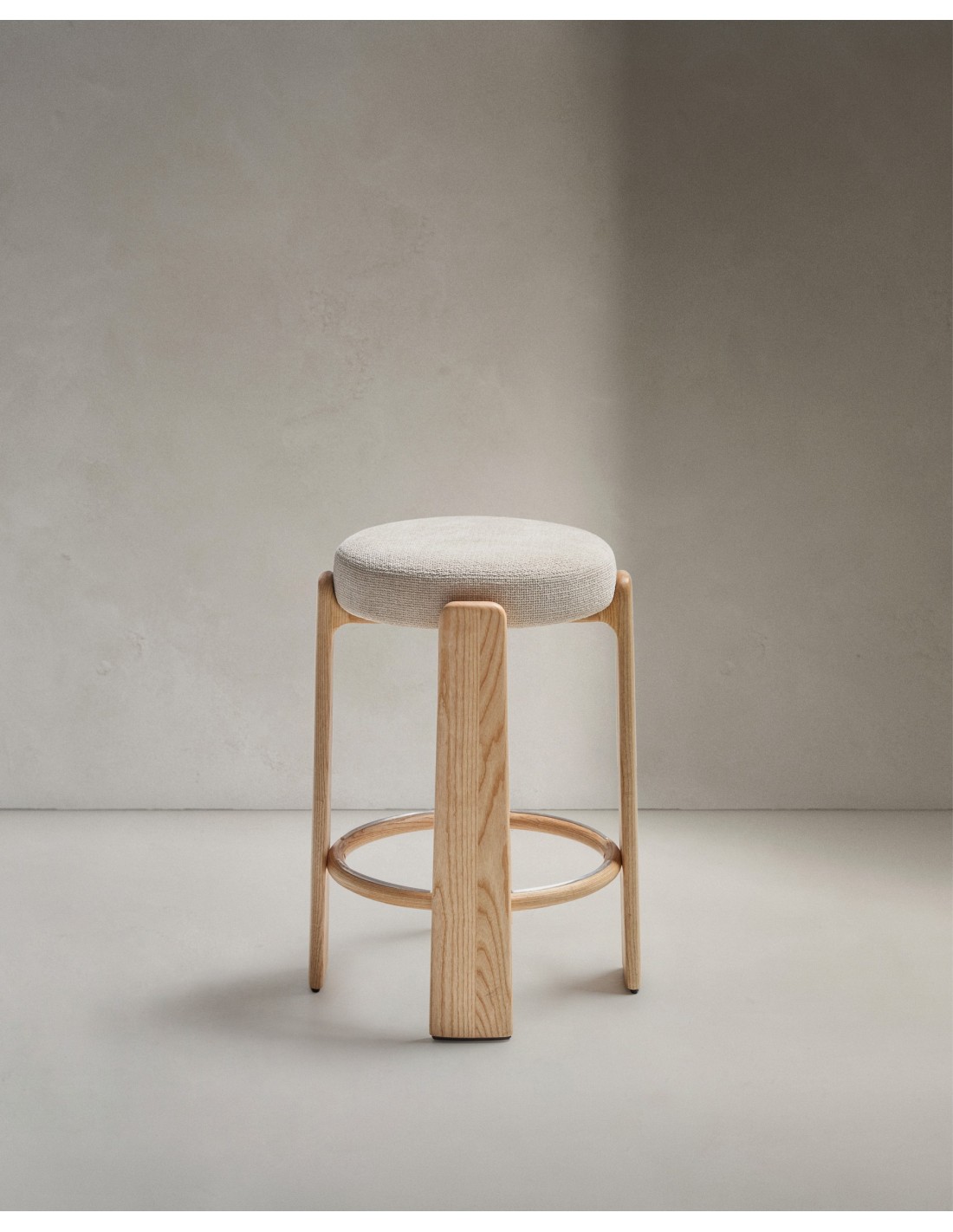 Taburete Granite de chenilla beige y madera maciza de fresno con acabado tono natural FSC 100% 75 cm - Kave Home