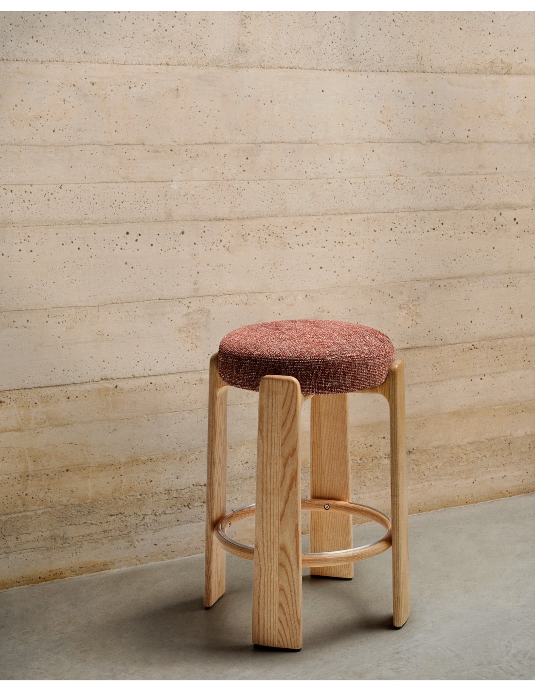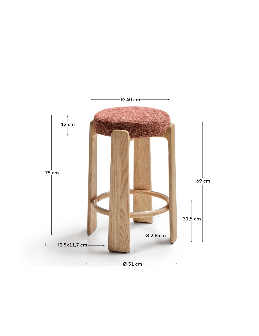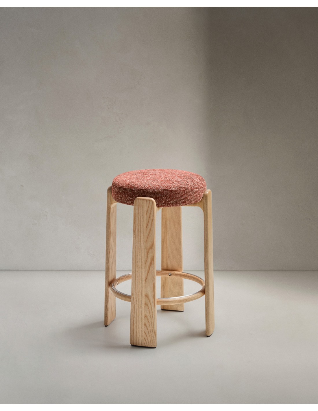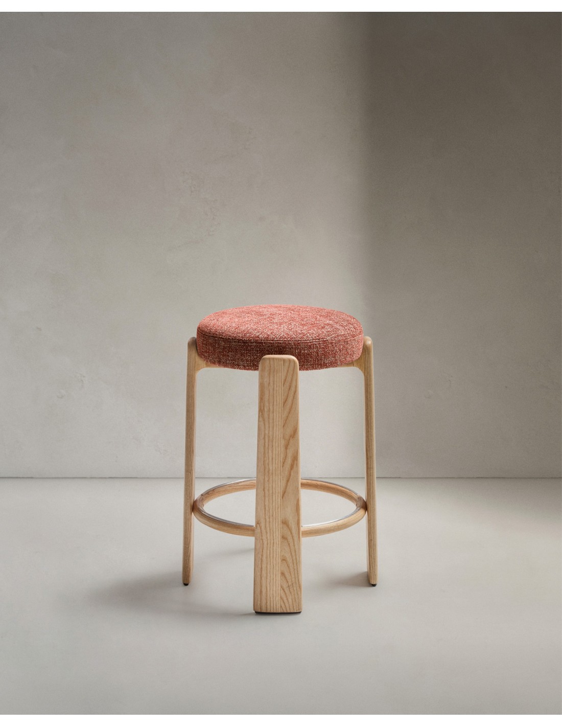 Taburete Granite de chenilla terracota y madera maciza de fresno con acabado tono natural FSC 100% 75 cm - Kave Home