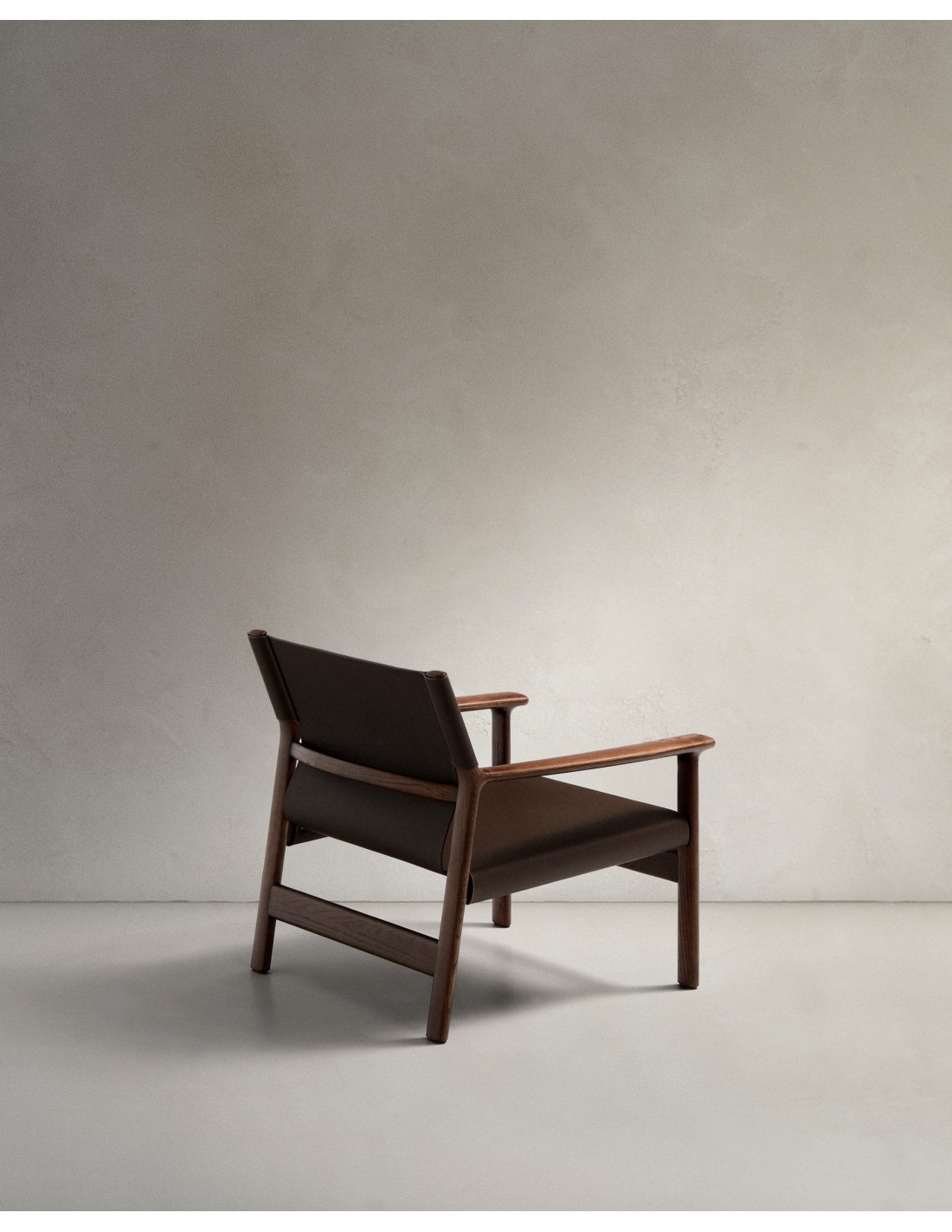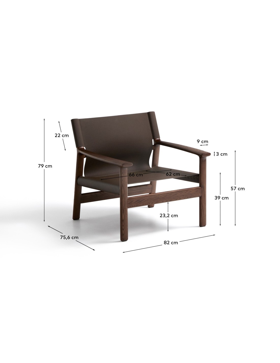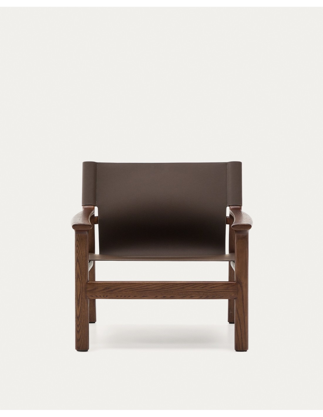 Butaca Jan de fibras de cuero reciclado marrón oscuro y madera maciza de fresno con acabado tono nogal FSC 100% - Kave Home
