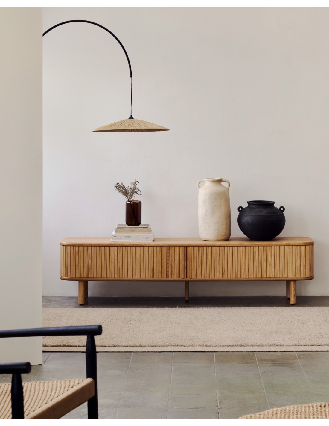 Mueble TV Mailen 2 puertas en chapa de fresno con acabado natural 200 x 50 cm - Kave Home