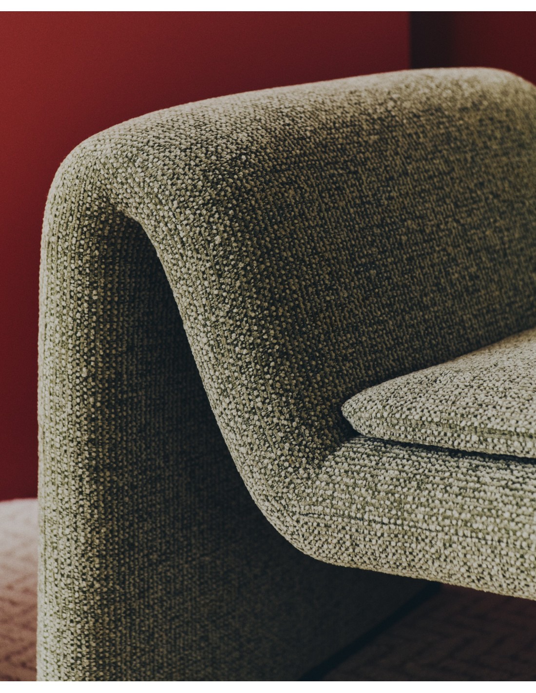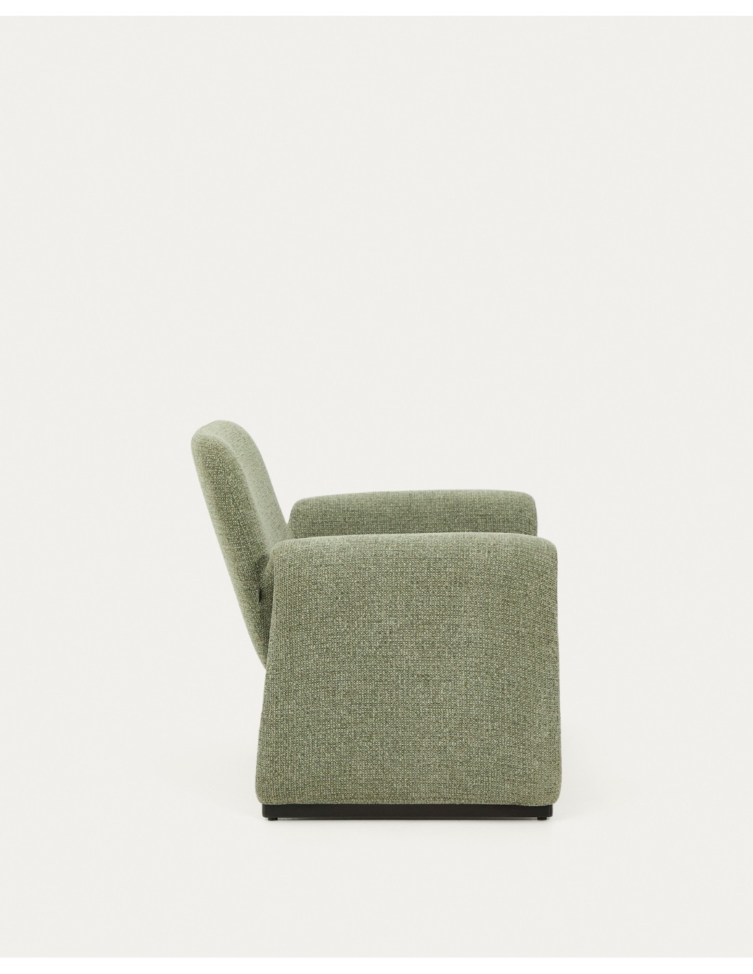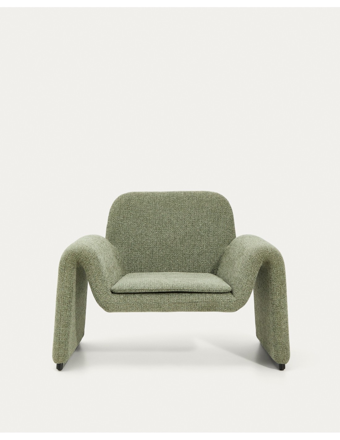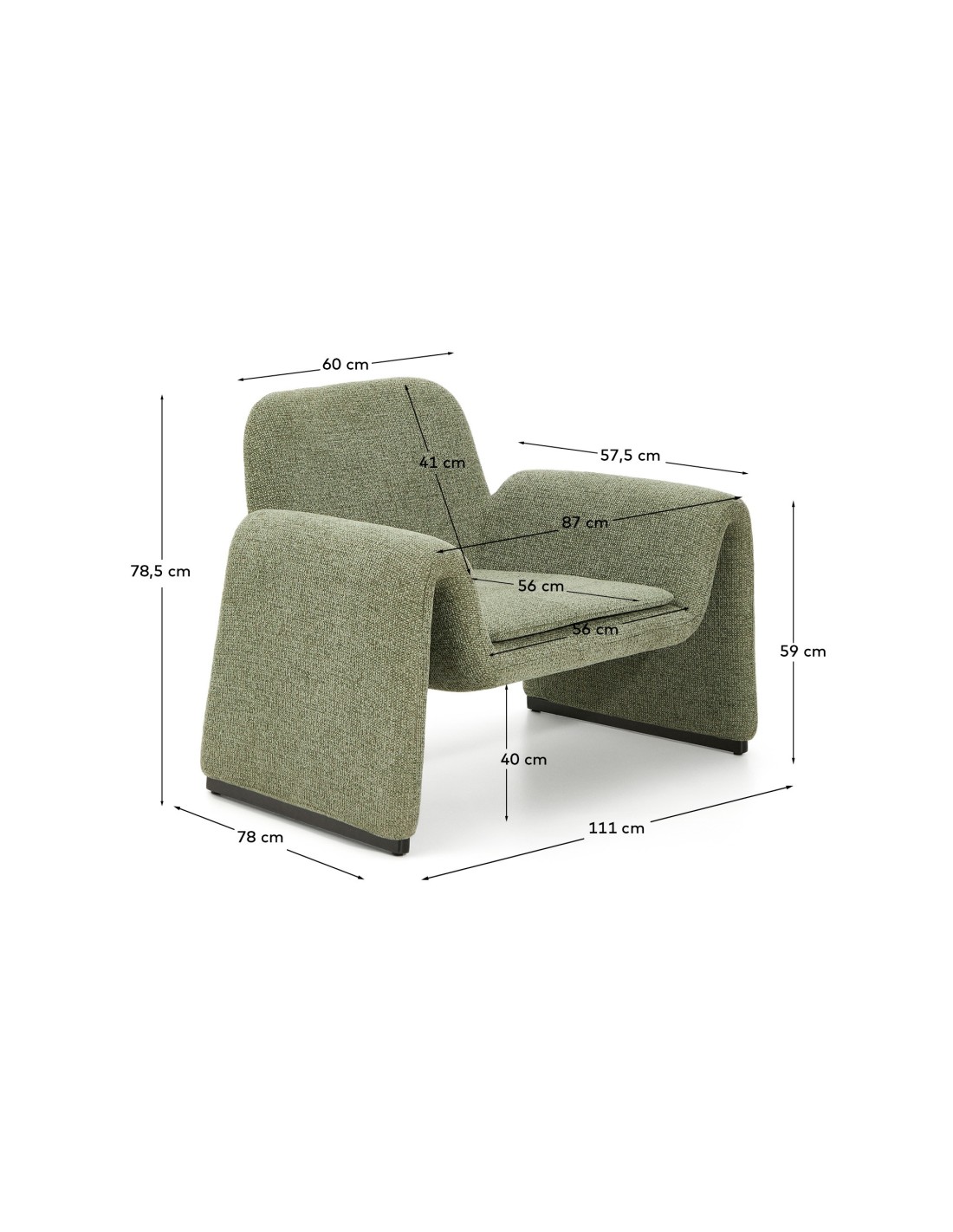 Esta butaca destaca por su diseño pensado al detalle, concebido en exclusiva por Morten Georgsen para Kave Home. El tapizado en chenilla de estructura grande, con efecto 3D bicolor y un tacto muy suave, aporta una sensación de confort envolvente. El tejido destaca por su alta resistencia a la abrasión y a la solidez a la luz, además de incorporar un tratamiento repelente al agua que facilita su mantenimiento y prolonga su aspecto tras un uso continuado. Proveedor del tejido con certificación OEKO-TEX® STANDARD 100 de producción ecológicamente segura y responsable con el medio ambiente. La sentada es de firmeza media gracias a la combinación de cinchas y muelles, junto con capas de espuma de 20 kg/m³ y 30 kg/m³, que aportan confort y soporte equilibrado. El cojín del asiento, desenfundable para facilitar su mantenimiento, está fabricado con espuma de inyección de 55 kg/m³, lo que asegura que mantenga su forma y comodidad con el paso del tiempo. Las patas, hechas en acero inoxidable con acabado cepillado, incorporan protectores regulables para evitar rayaduras en el suelo y garantizar una estabilidad óptima en todo tipo de superficies. La estructura interna utiliza madera certificada con FSC Mix Credit, elaborada con una mezcla de materiales procedentes de bosques certificados por FSC y madera controlada FSC. Una pieza única que une diseño exclusivo, calidad y comodidad para adaptarse a cualquier espacio.
