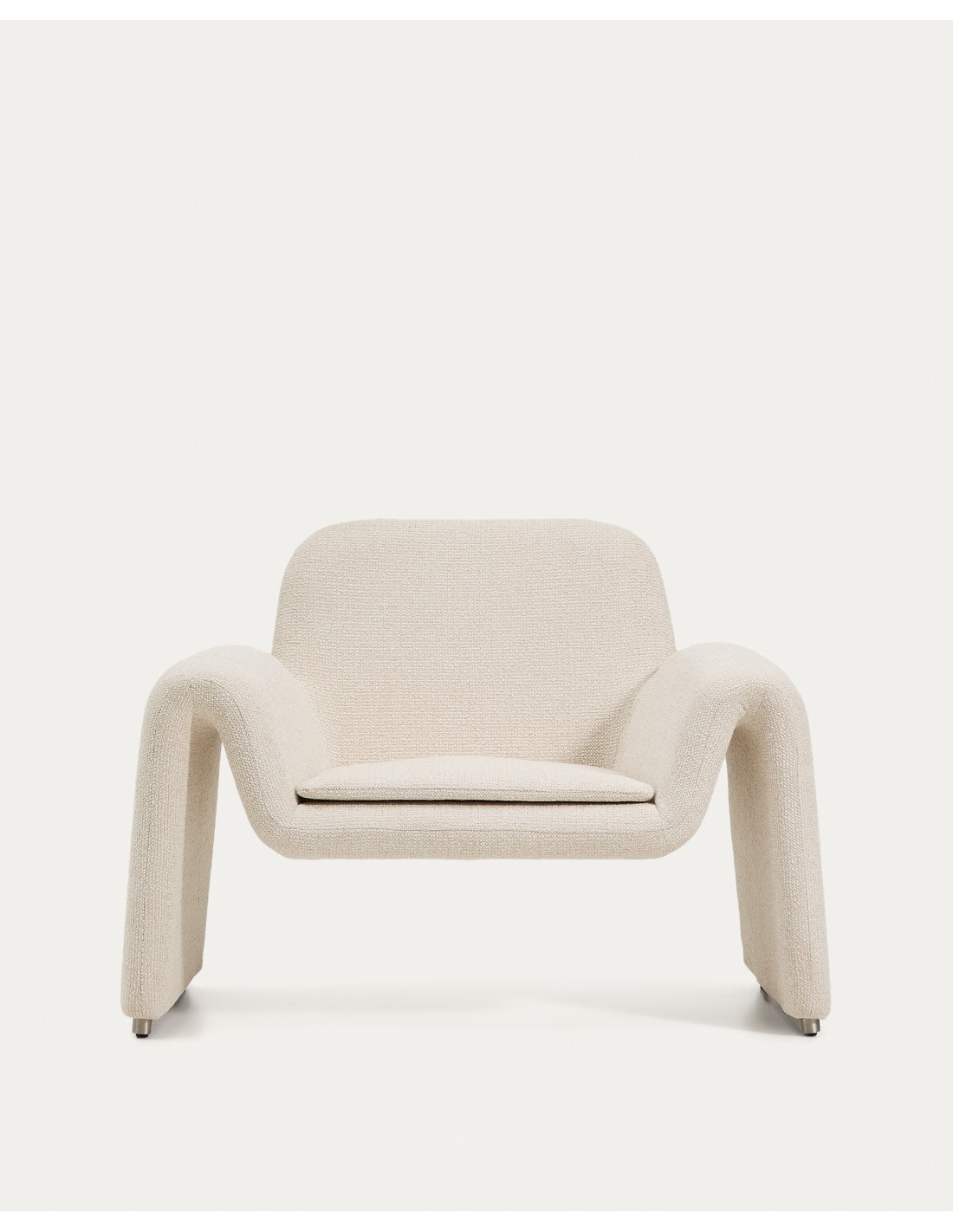 Esta butaca destaca por su diseño pensado al detalle, concebido en exclusiva por Morten Georgsen para Kave Home. El tapizado en chenilla de estructura grande, con efecto 3D bicolor y un tacto muy suave, aporta una sensación de confort envolvente. El tejido destaca por su alta resistencia a la abrasión y a la solidez a la luz, además de incorporar un tratamiento repelente al agua que facilita su mantenimiento y prolonga su aspecto tras un uso continuado. Proveedor del tejido con certificación OEKO-TEX® STANDARD 100 de producción ecológicamente segura y responsable con el medio ambiente. La sentada es de firmeza media gracias a la combinación de cinchas y muelles, junto con capas de espuma de 20 kg/m³ y 30 kg/m³, que aportan confort y soporte equilibrado. El cojín del asiento, desenfundable para facilitar su mantenimiento, está fabricado con espuma de inyección de 55 kg/m³, lo que asegura que mantenga su forma y comodidad con el paso del tiempo. Las patas, hechas en acero inoxidable con acabado cepillado, incorporan protectores regulables para evitar rayaduras en el suelo y garantizar una estabilidad óptima en todo tipo de superficies. La estructura interna utiliza madera certificada con FSC Mix Credit, elaborada con una mezcla de materiales procedentes de bosques certificados por FSC y madera controlada FSC. Una pieza única que une diseño exclusivo, calidad y comodidad para adaptarse a cualquier espacio.