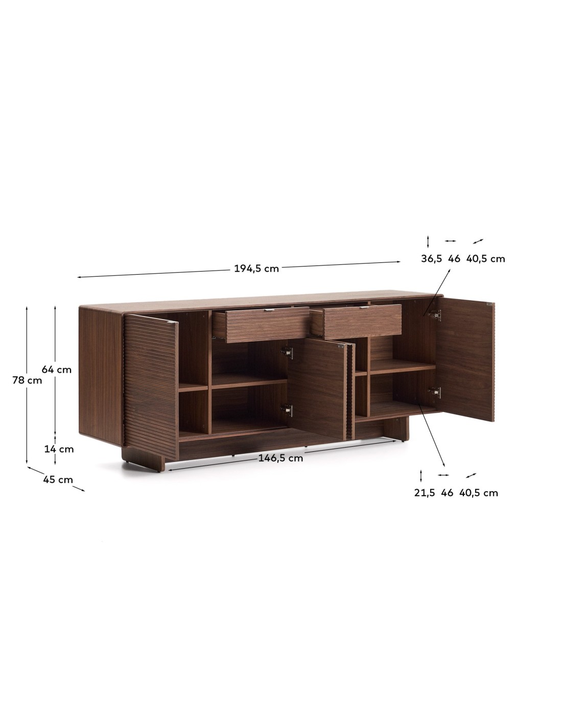 Aparador Norlen 4 puertas y 2 cajones de chapa de nogal FSC Mix Credit 194,5 x 78 cm - Kave Home