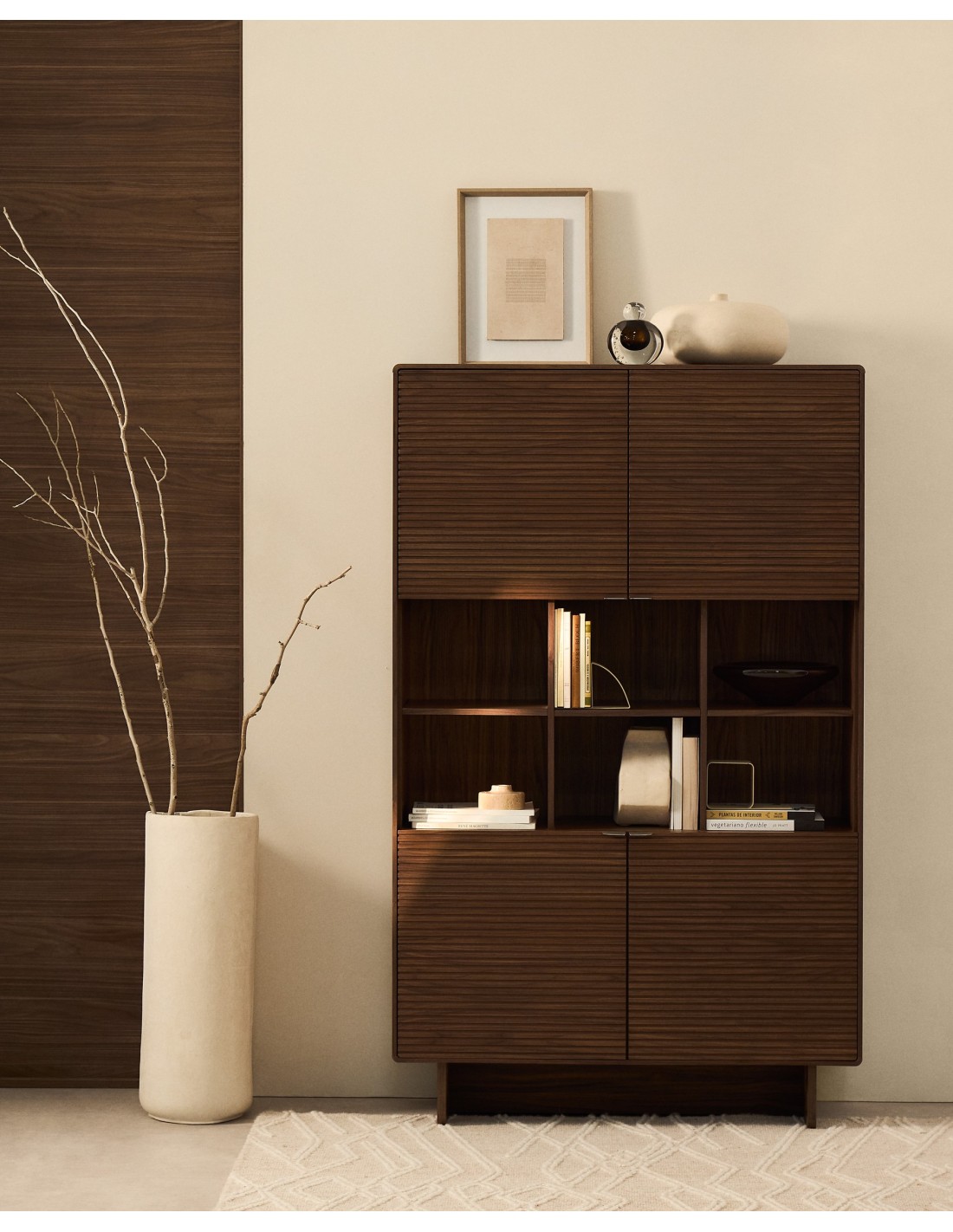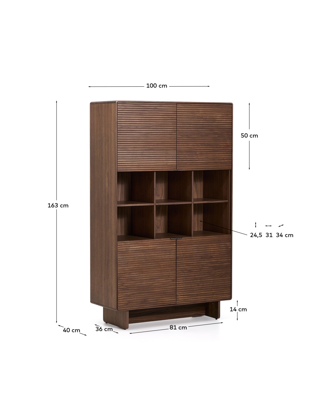 Aparador alto Norlen 4 puertas de chapa de nogal FSC Mix Credit 100 x 163 cm - Kave Home
