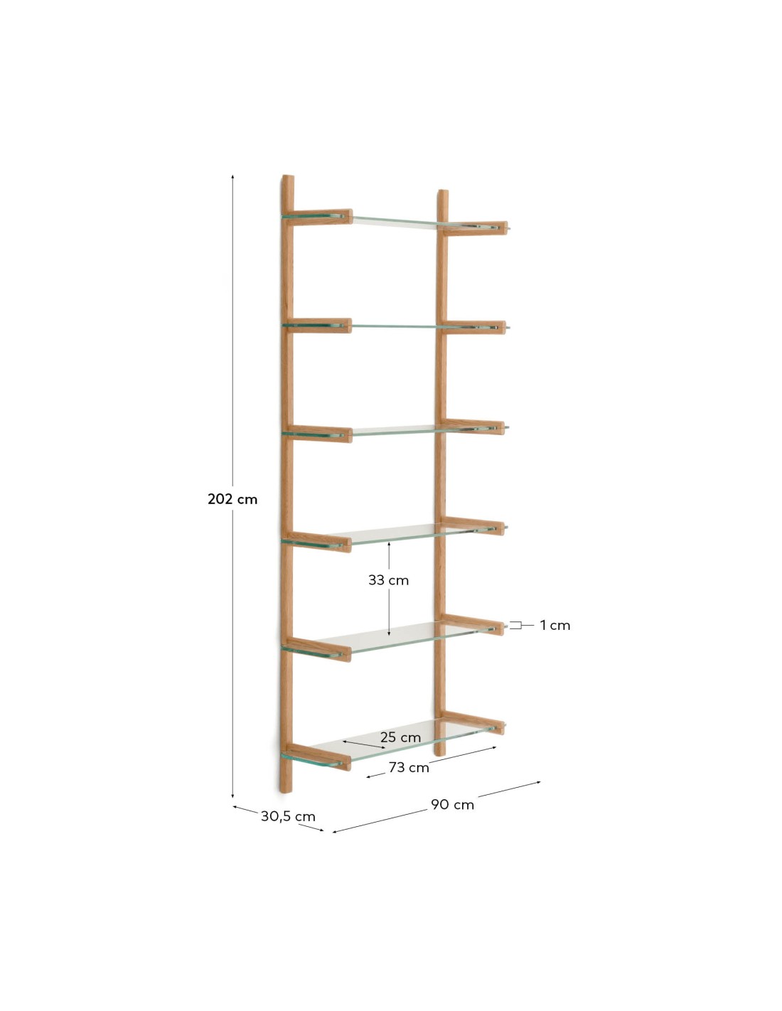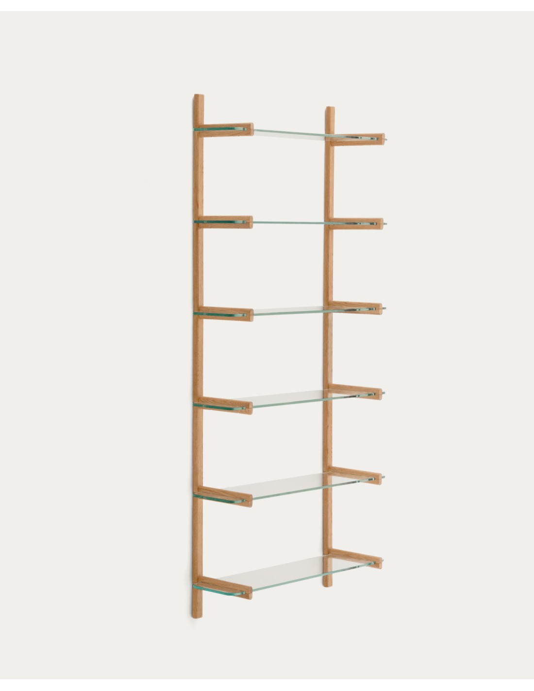 Estantería modular Sitra 6 baldas de cristal y madera maciza roble 90 cm FSC Mix Credit - Kave Home