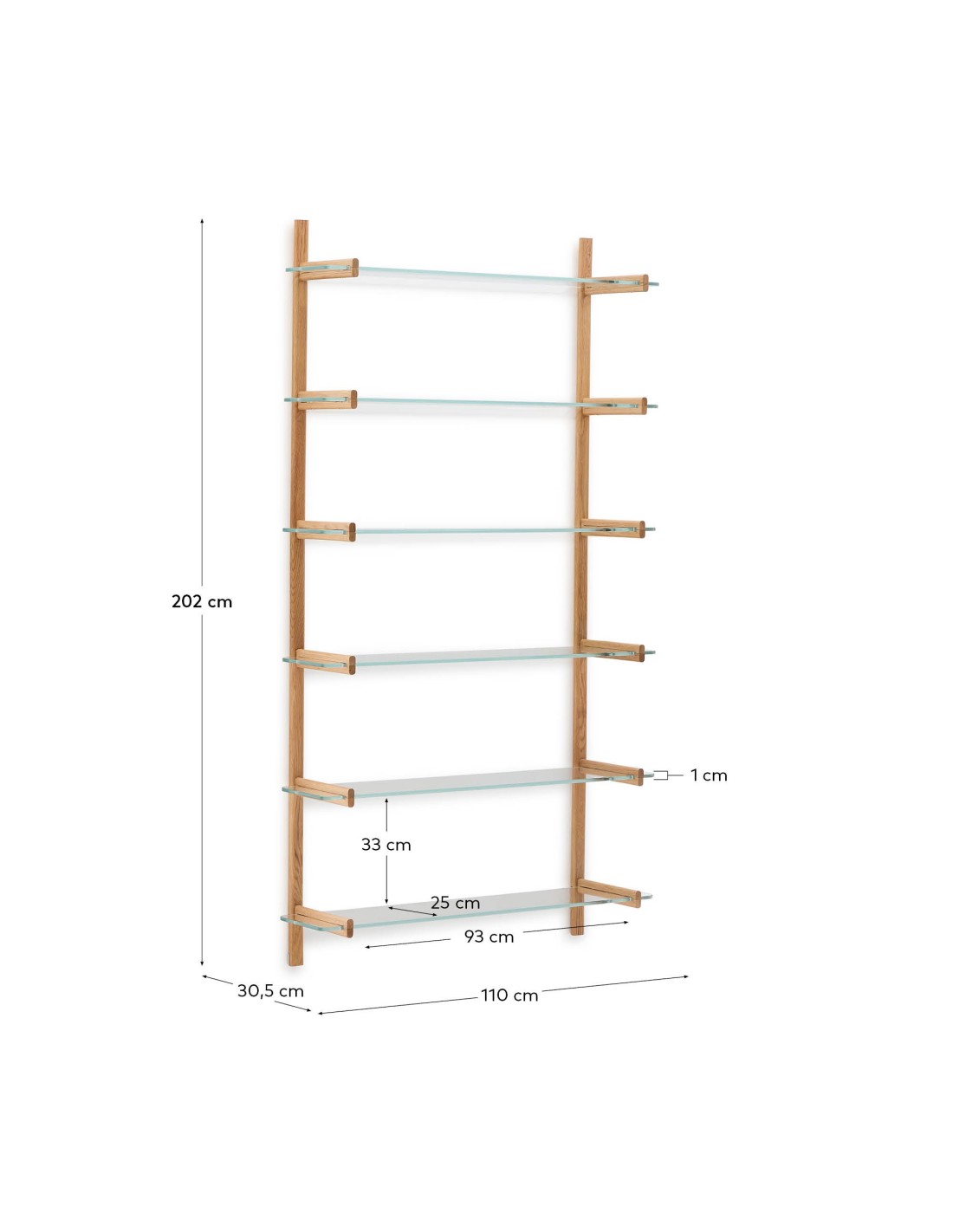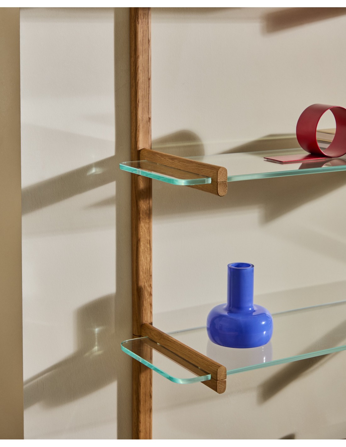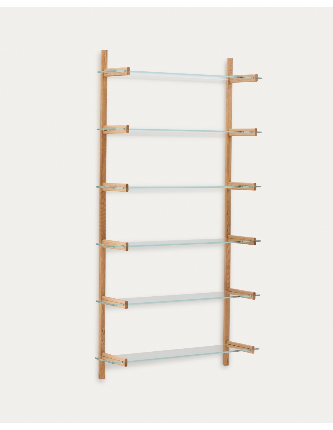 Estantería modular Sitra 6 baldas de cristal y madera maciza roble 110 cm FSC Mix Credit - Kave Home