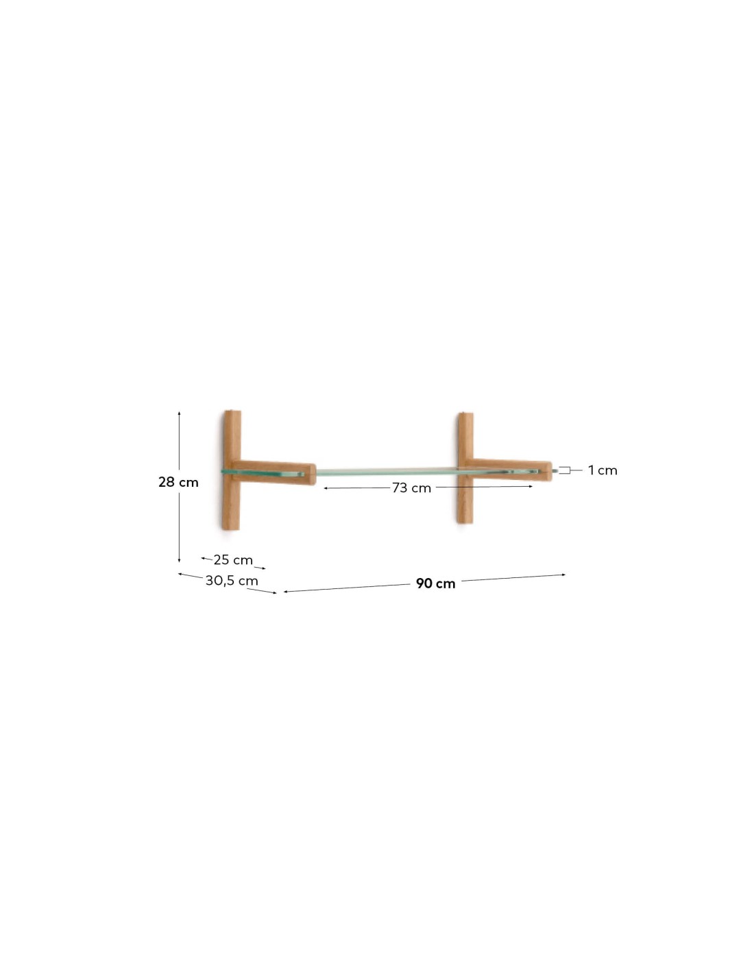 Estantería modular Sitra 1 balda de cristal y madera maciza roble 90 cm FSC Mix Credit - Kave Home