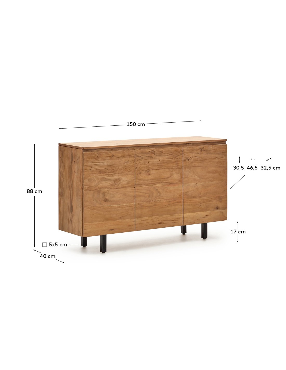 Aparador Uxue 3 puertas de madera maciza de acacia con acabado blanqueado 150 x 88 cm - Kave Home