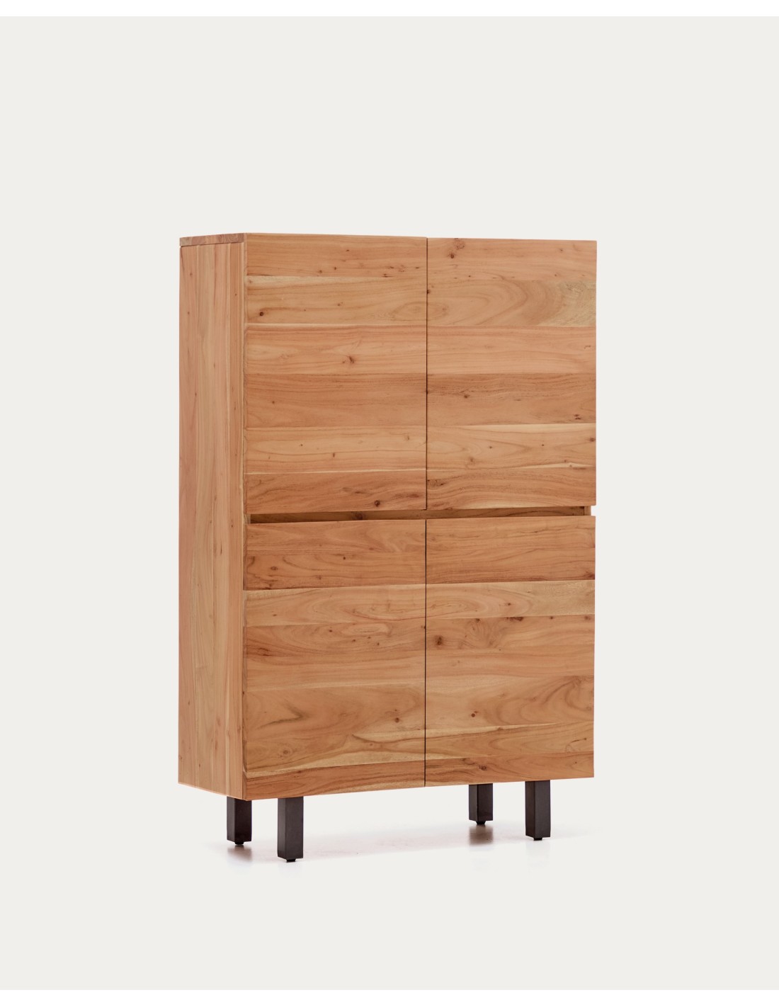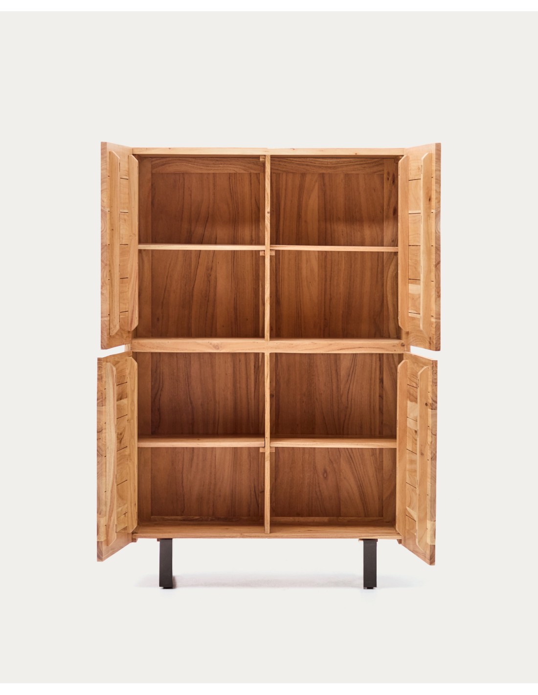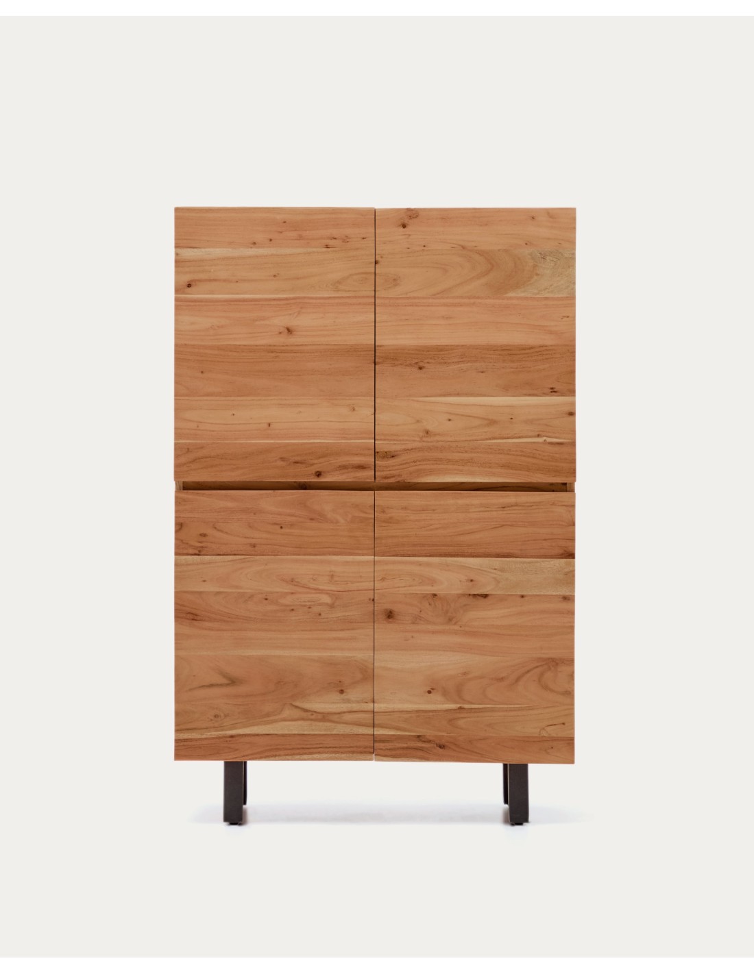 Aparador alto Uxue 4 puertas de madera maciza de acacia con acabado blanqueado y acero negro 100 x 155 cm - Kave Home