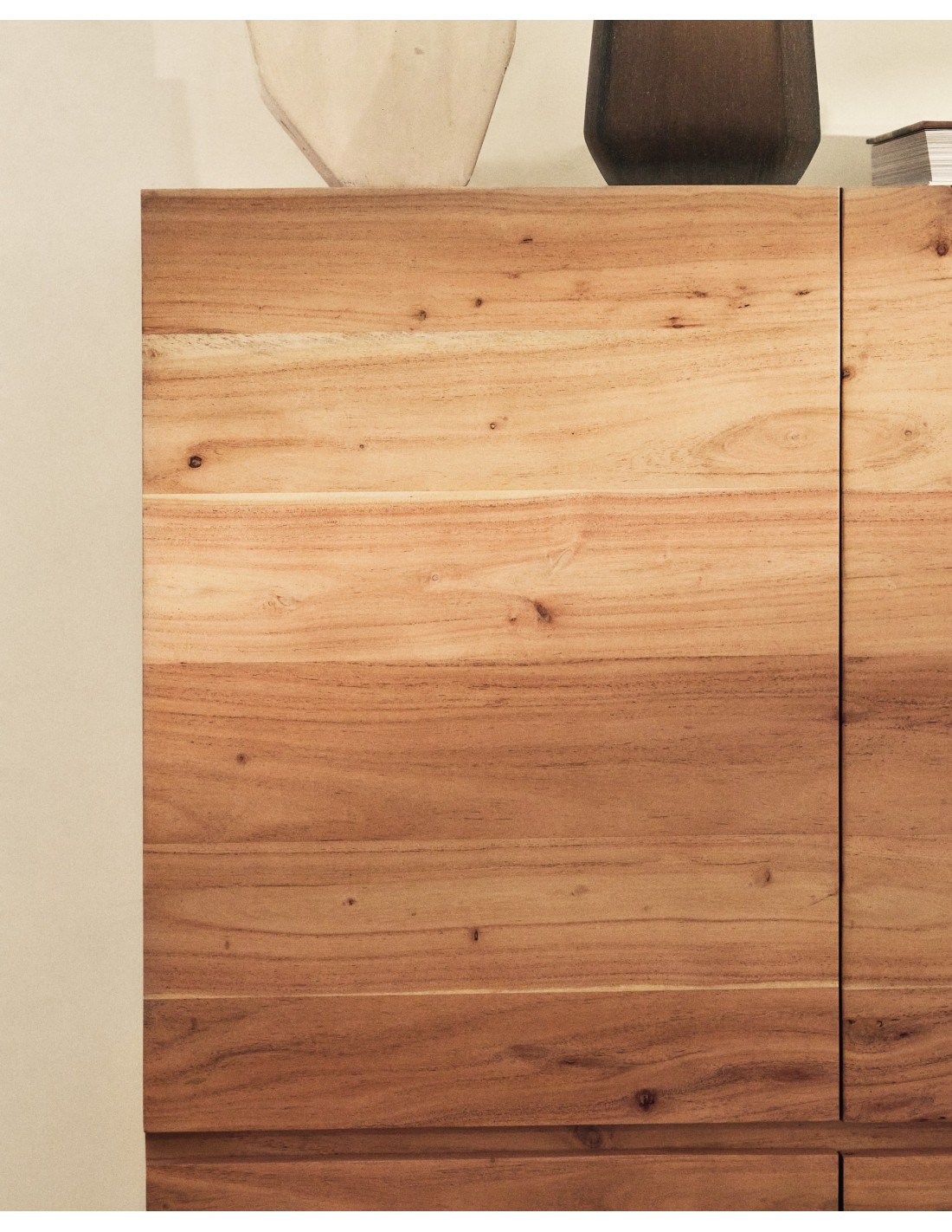 La colección Uxue redefine la funcionalidad y el estilo en cualquier espacio gracias a su diseño depurado y contemporáneo. La madera maciza de acacia, con su acabado blanqueado, transmite una calidez única y realza el veteado de la madera, aportando luminosidad y sofisticación al ambiente. Cada puerta se integra perfectamente en el conjunto, creando una imagen armónica y minimalista que se adapta a cualquier tipo de decoración, desde la más moderna hasta la más clásica. Las patas de acero con acabado negro aportan un contraste elegante y sutil, elevando la estructura y garantizando estabilidad y durabilidad. Las patas son regulables, lo que permite salvar cualquier desnivel del suelo y asegurar que el aparador siempre se mantenga perfectamente nivelado. Las bisagras de cierre suave ofrecen comodidad y seguridad en cada apertura y cierre, protegiendo tanto el mueble como su contenido. Este aparador es la solución perfecta para quienes buscan capacidad de almacenaje, diseño atemporal y robustez en una sola pieza, convirtiéndose en el protagonista indiscutible de cualquier estancia.