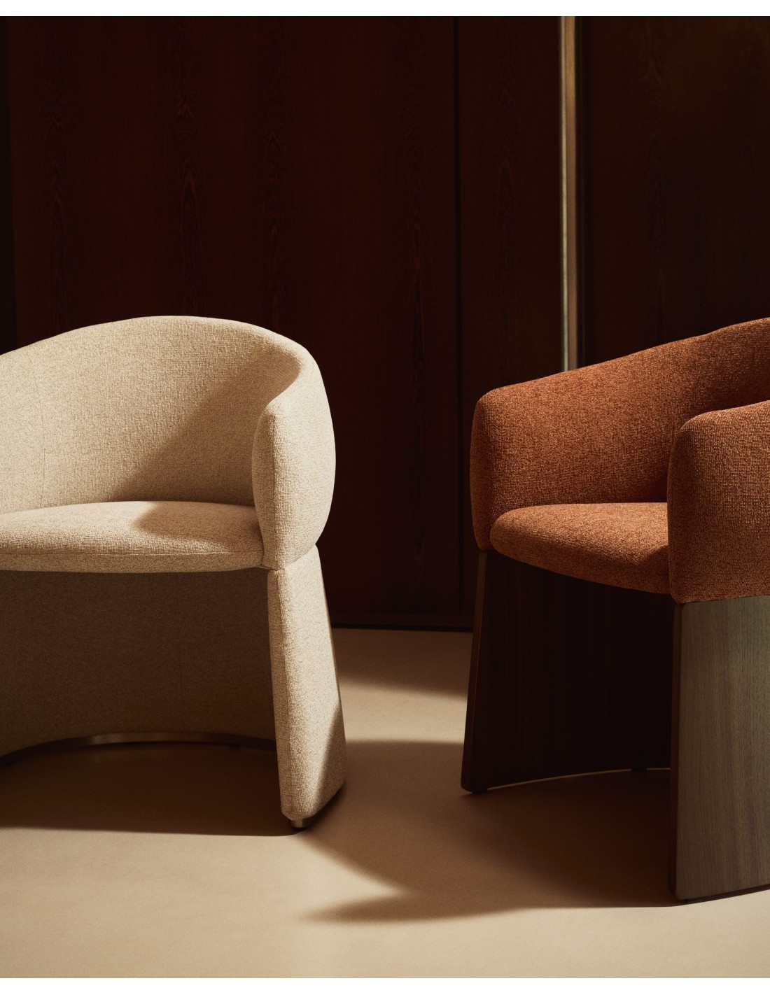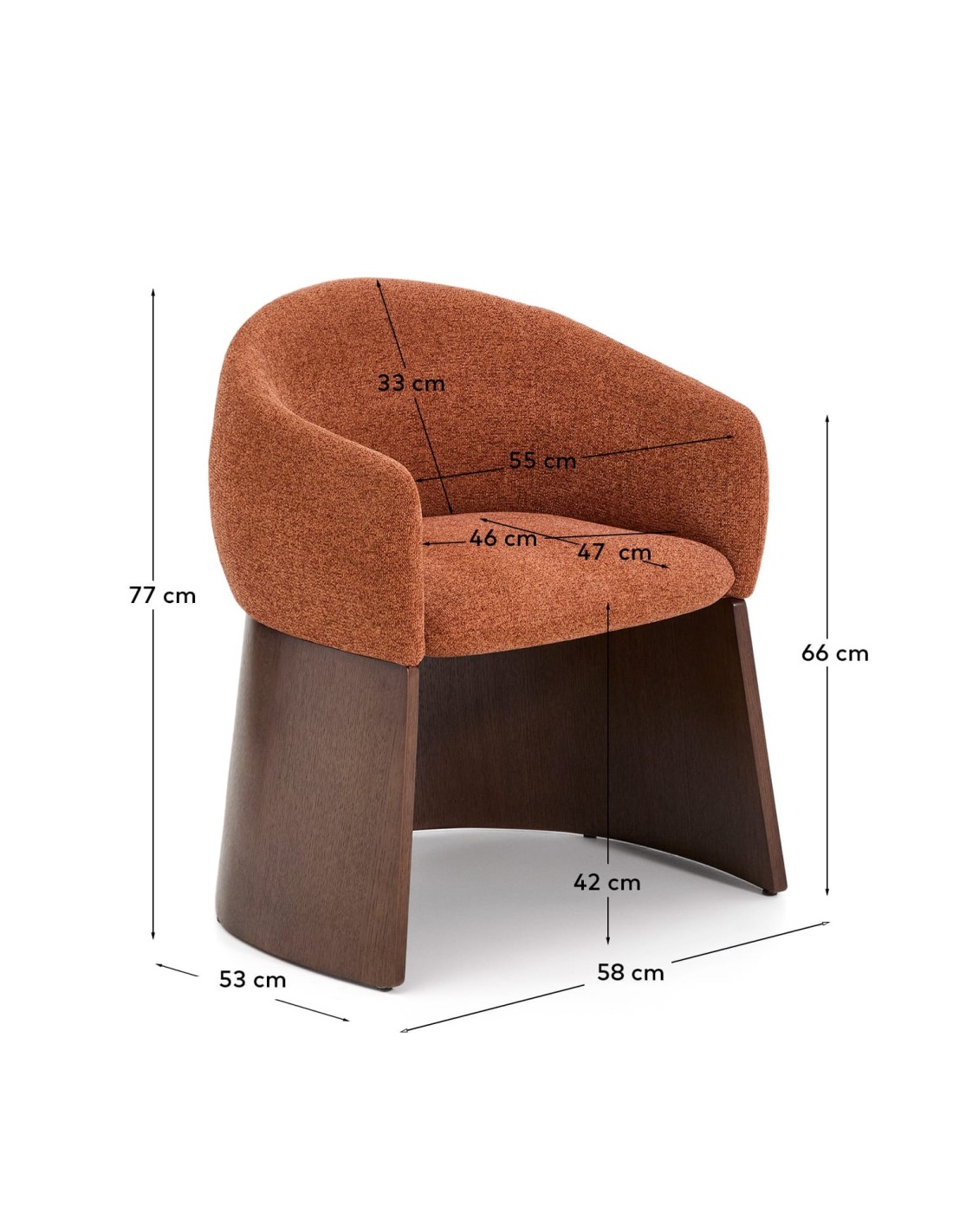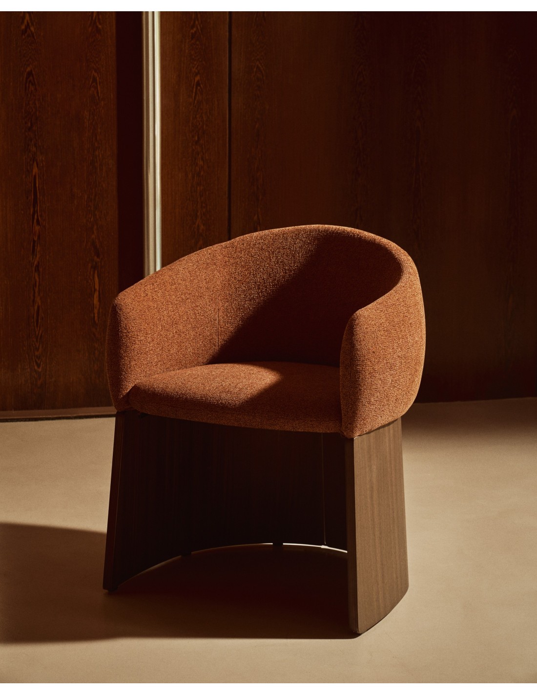 Silla Bosca de chenilla terracota y chapa de nogal FSC 100% - Kave Home