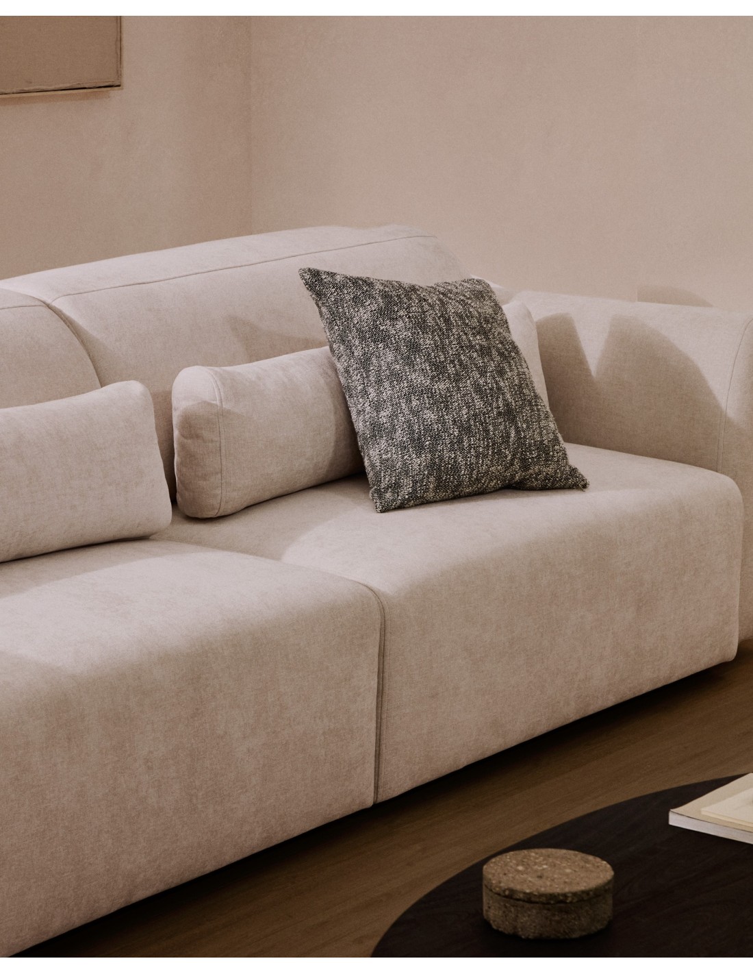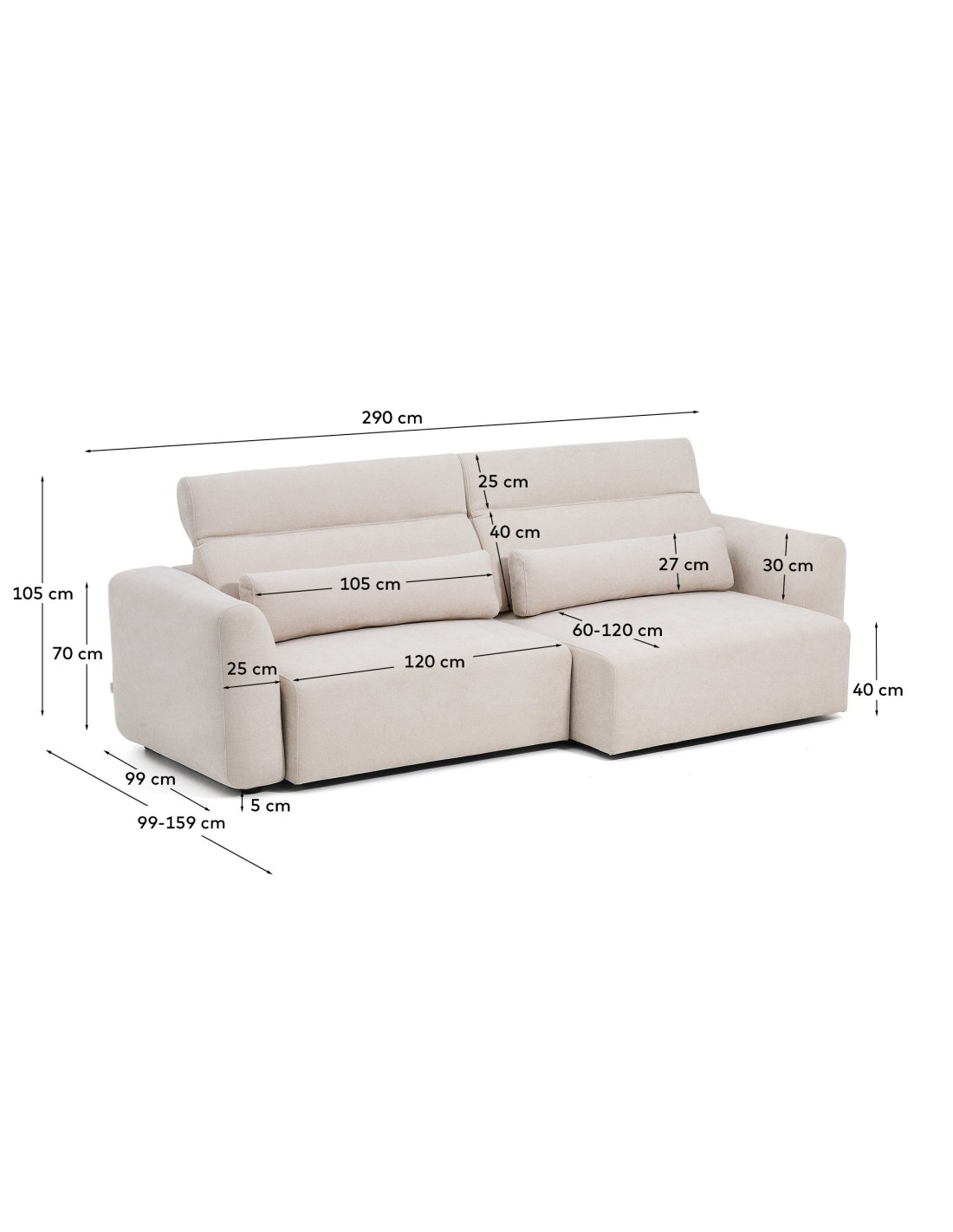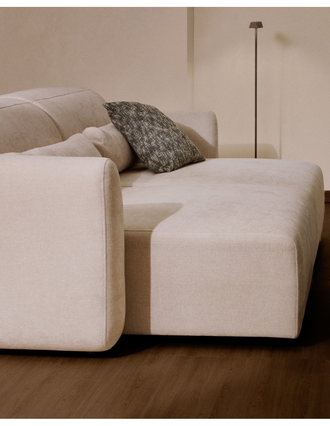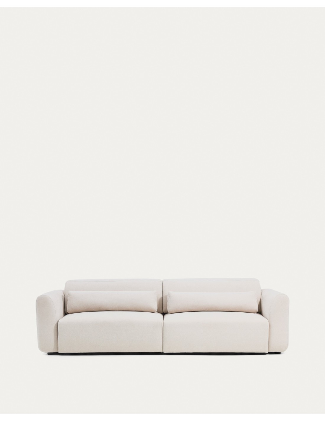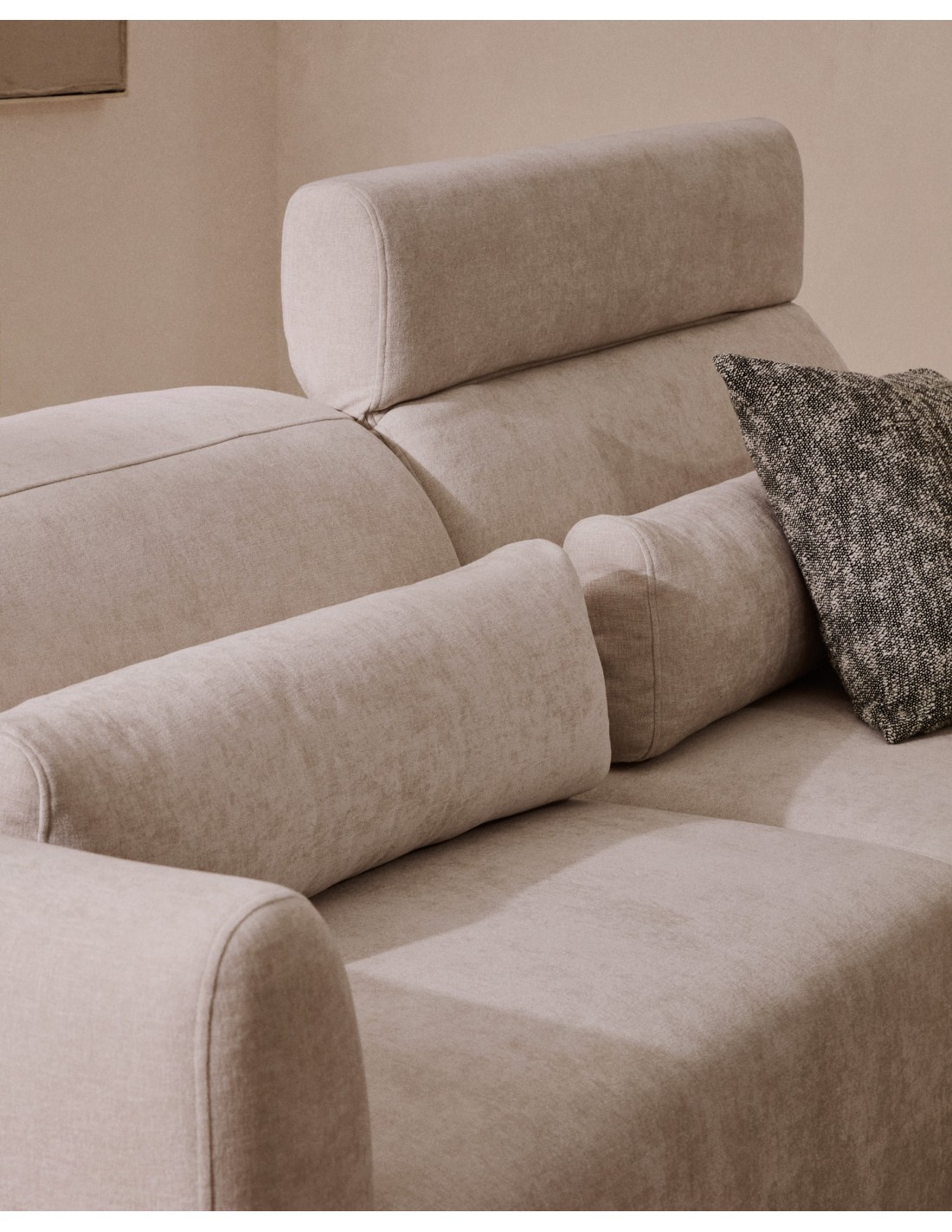 Sofá Lares 4 plazas con asientos deslizantes motorizados y cabezal reclinable de chenilla beige 290 cm - Kave Home