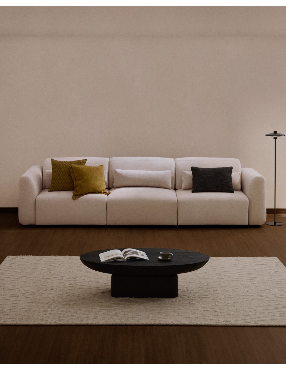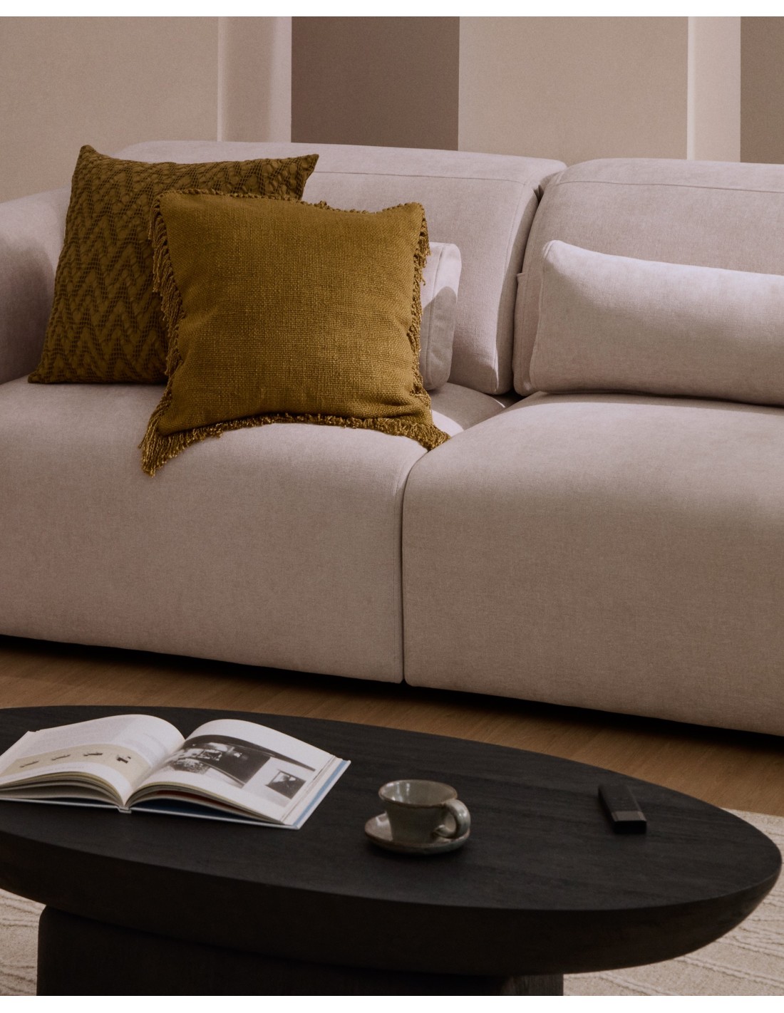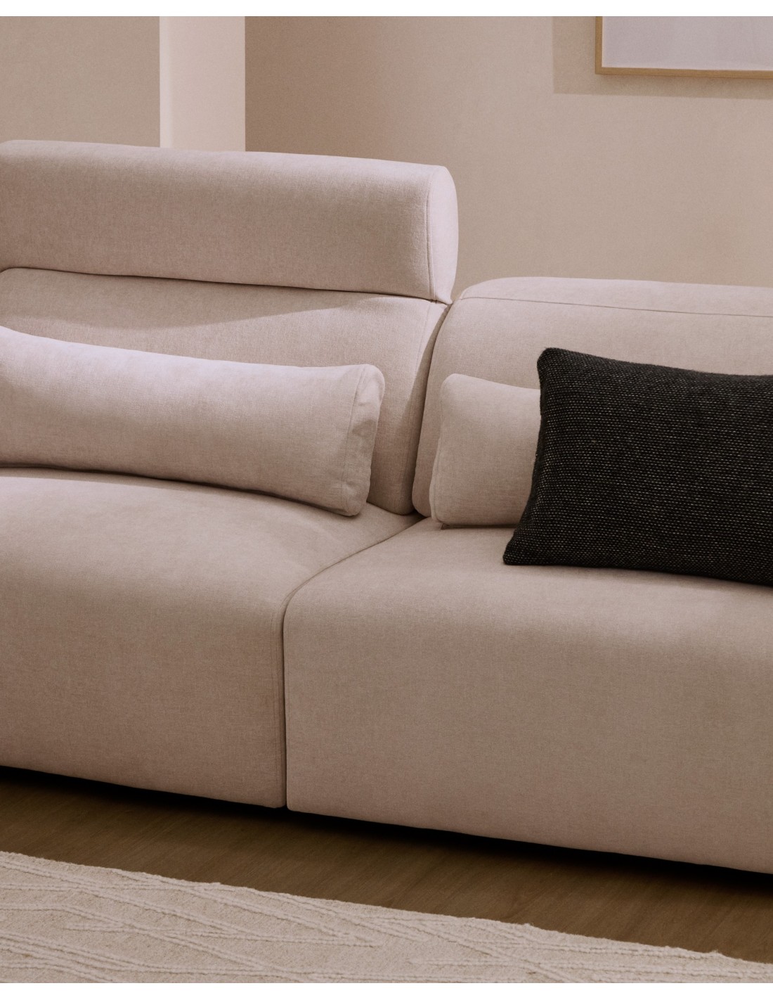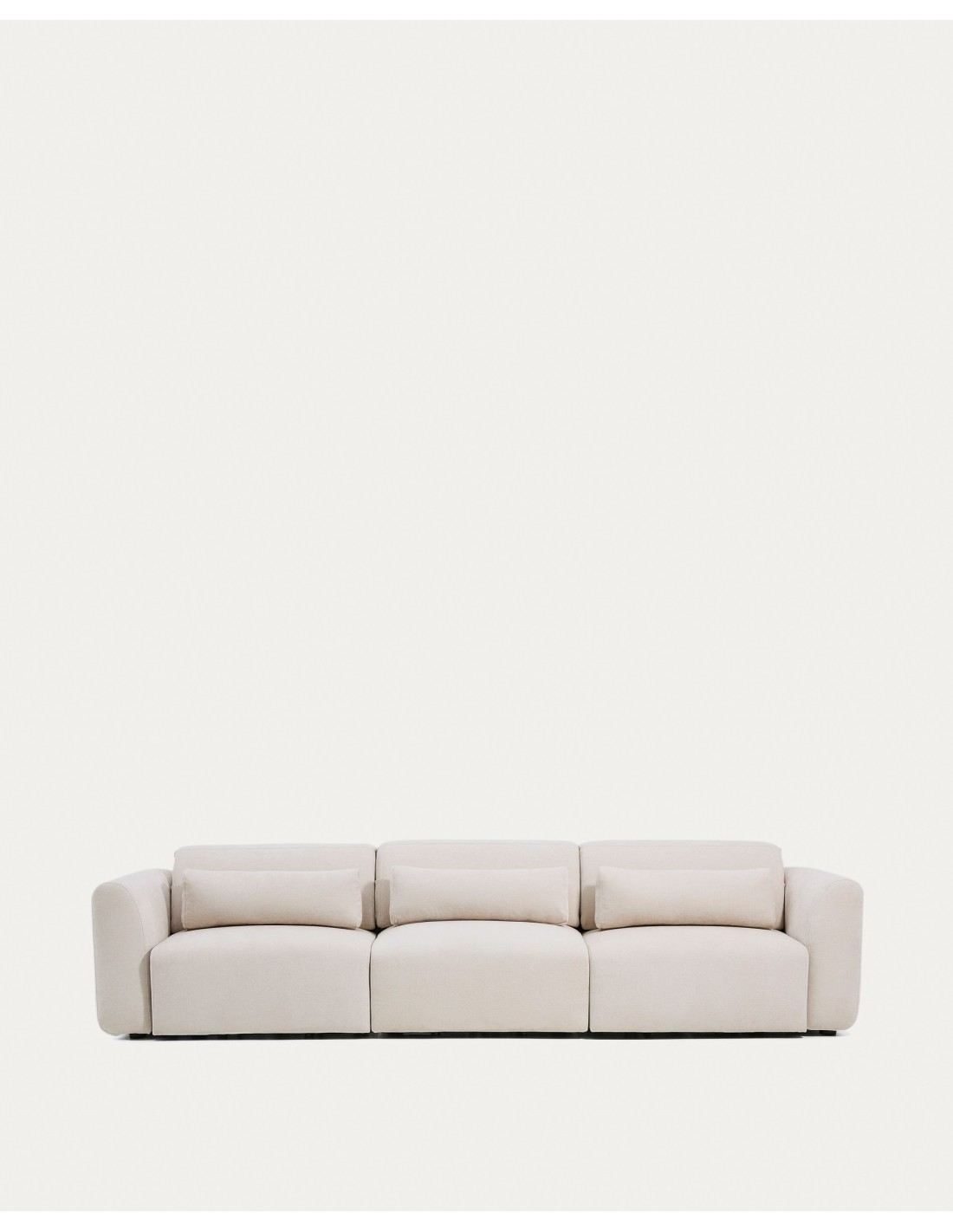 Sofá Lares 5 plazas con asientos deslizantes motorizados y cabezal reclinable de chenilla beige 335 cm - Kave Home