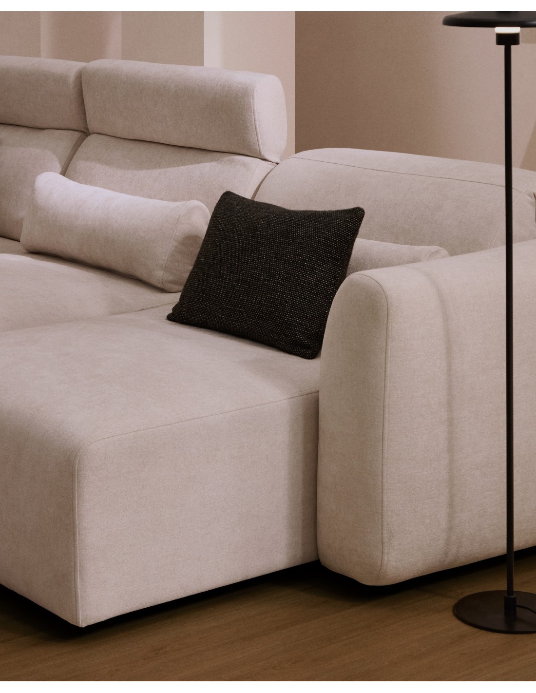 Este sofá reúne diseño, confort y tecnología en una sola pieza. Sus asientos motorizados y cabezales reclinables manuales permiten ajustar la postura a cada momento. Es un sofá extensible compacto, que combina la menor profundidad del mercado con la mayor extensión al desplegarse: en posición cerrada mide 99 cm de profundidad y, al desplegarse, aumenta hasta 60 cm adicionales. La extensión de los asientos puede mantenerse abierta en cualquier posición. El control de movimiento puede hacerse con mando inalámbrico o a través de una aplicación con conexión Bluetooth en Smartphone, que incorpora Modo Seguro para un uso controlado. El tapizado en chenilla, de estructura pequeña, tacto aterciopelado y gran resistencia a la luz y a la abrasión, es lavable a máquina con programa delicado. El proveedor del tejido está certificado por OEKO-TEX® STANDARD 100, garantizando una producción ecológicamente segura y responsable con el medio ambiente. En el interior, el asiento combina un sistema de muelles NOSAG con capas de espuma de alta densidad (35kg/m3 y 40 kg/m3), 5 cm de viscoelástica de 42 kg/m3 y una capa de fibra, logrando una sentada media suave. Los cabezales son desenfundables e incorporan espuma suave de 35kg/m3, espuma supersuave de 24kg/m3 y fibra para sumar confort. Fabricado en Europa, este sofá ofrece calidad y durabilidad, al tiempo que contribuye a reducir las emisiones de CO₂. Una pieza amplia y versátil, pensada para disfrutar de un diseño cuidado y de la innovación en el día a día.