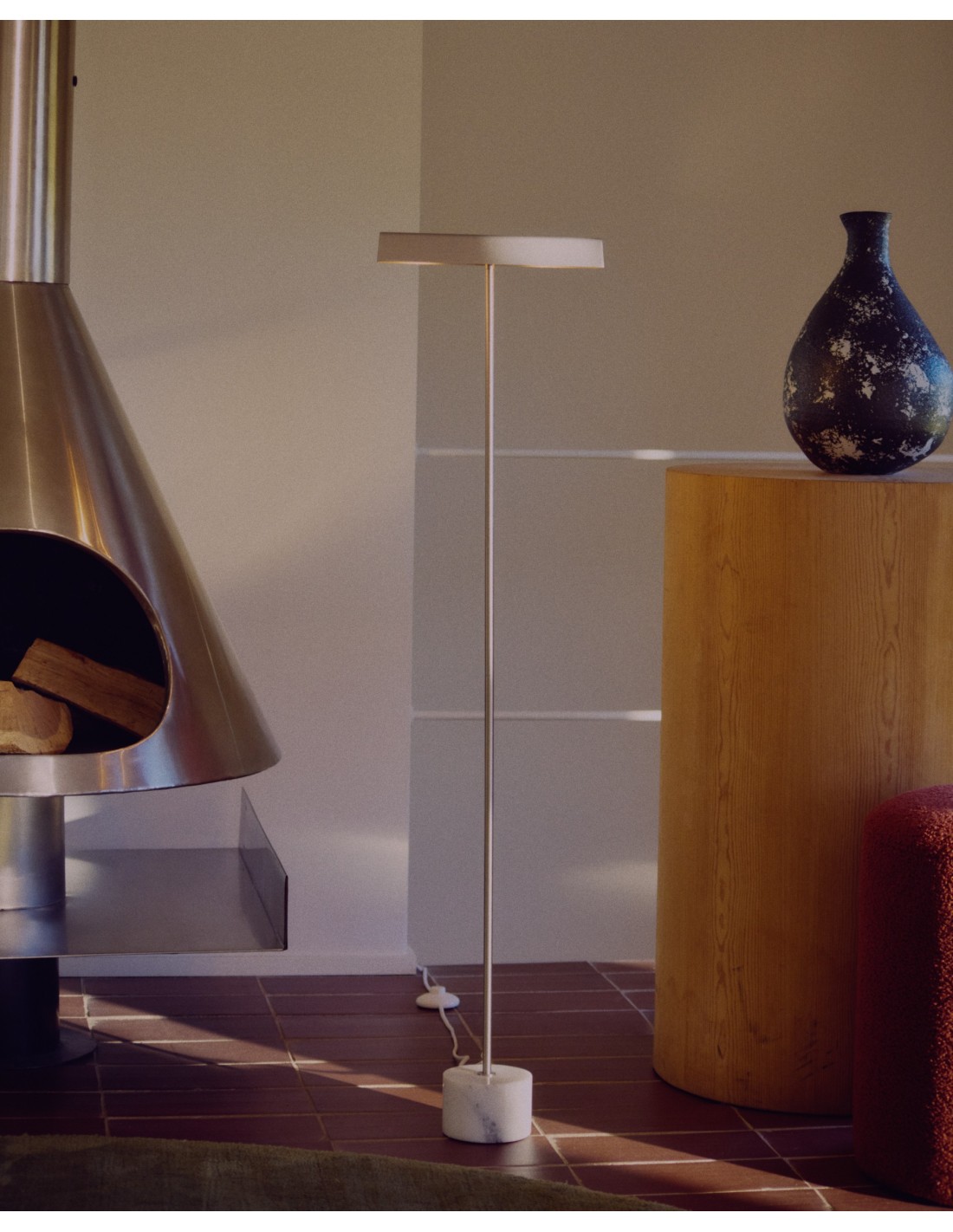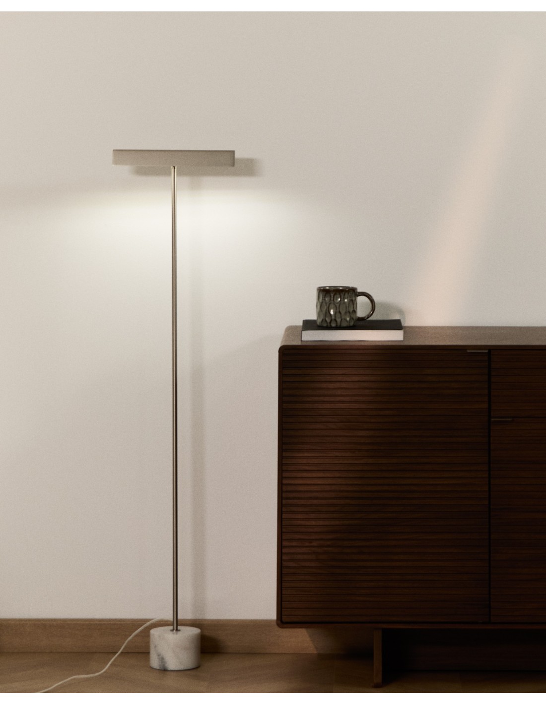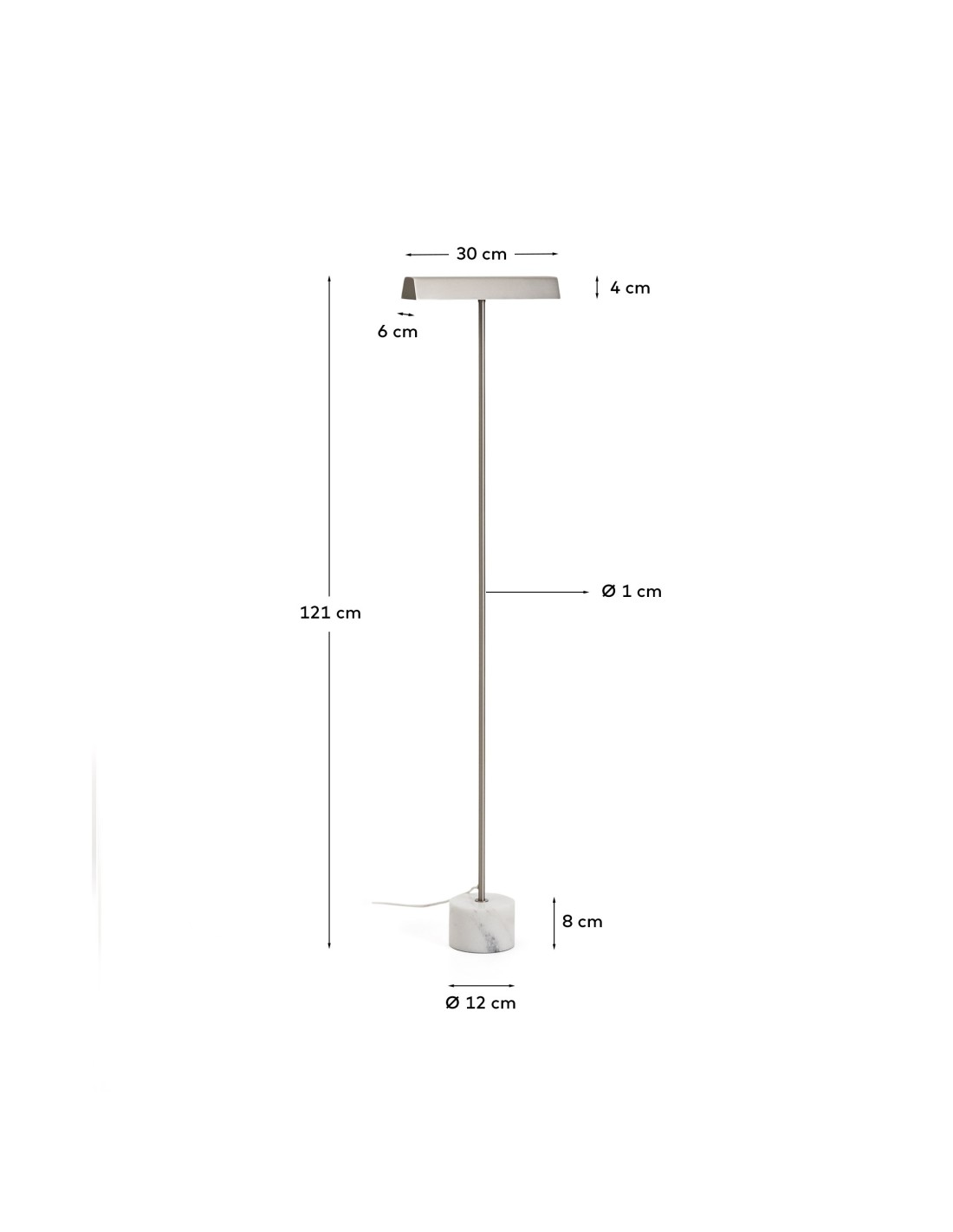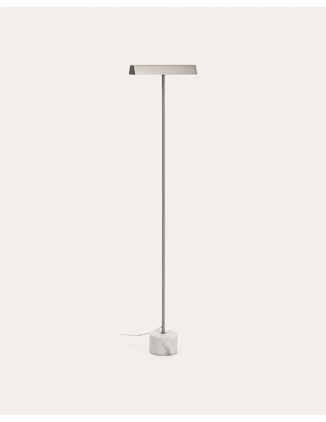 Lámpara de pie Lynor de acero cepillado con base de mármol blanco - Kave Home