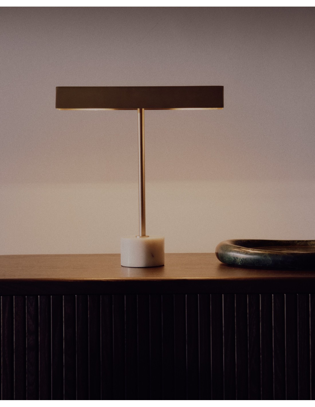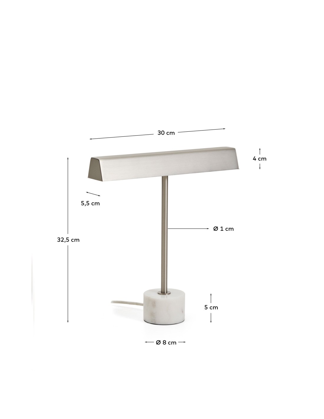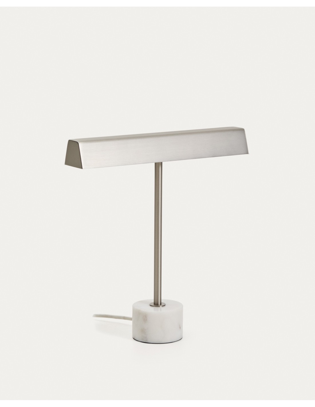 Lámpara de mesa Lynor de metal cepillado con base de mármol blanco - Kave Home
