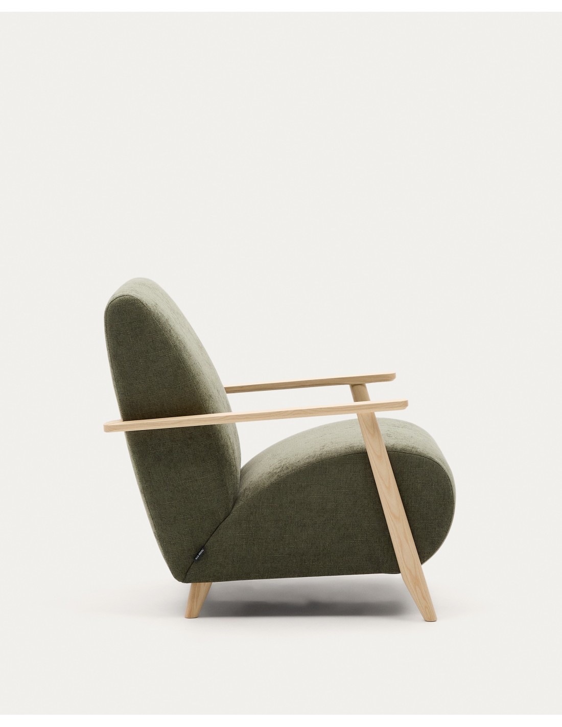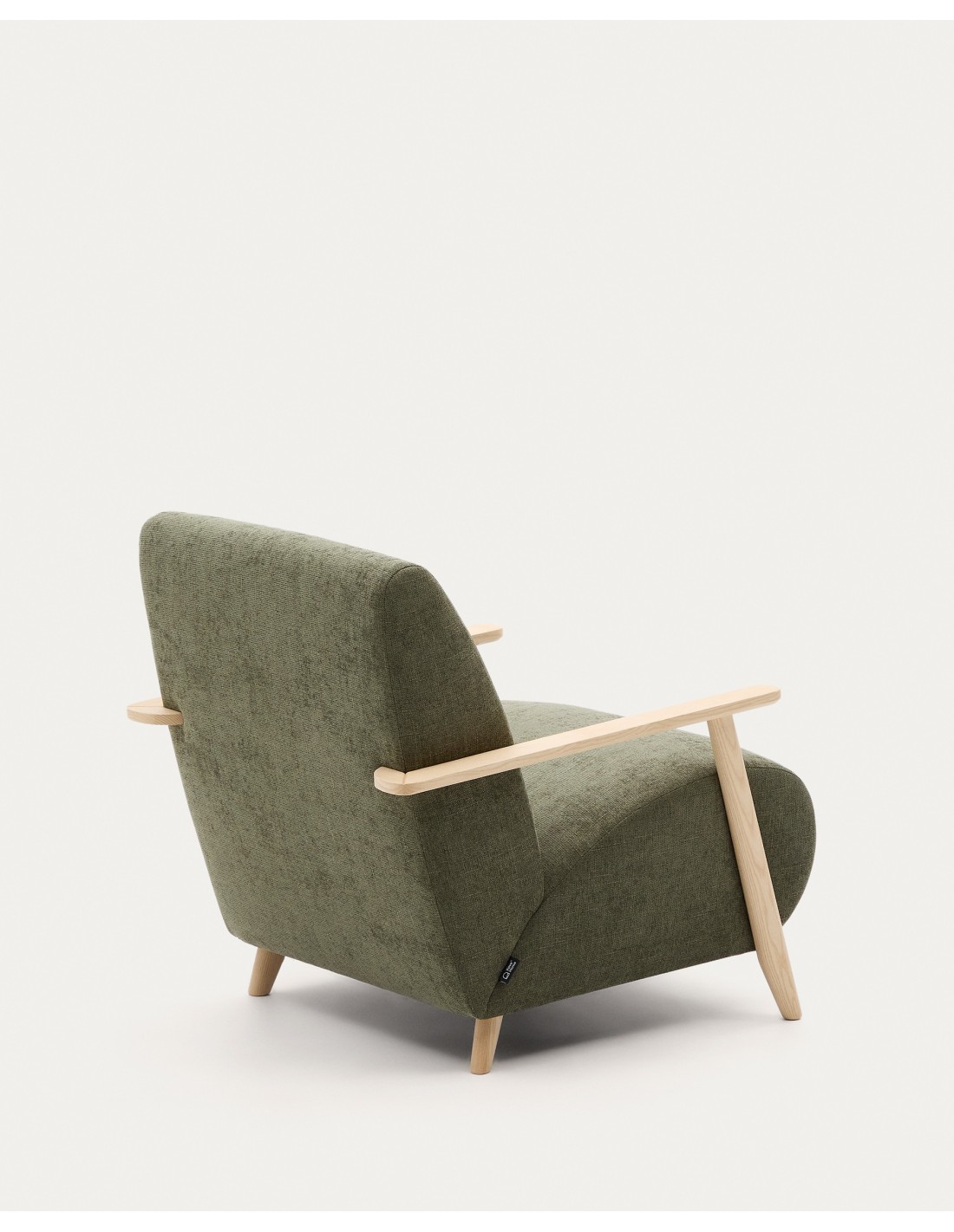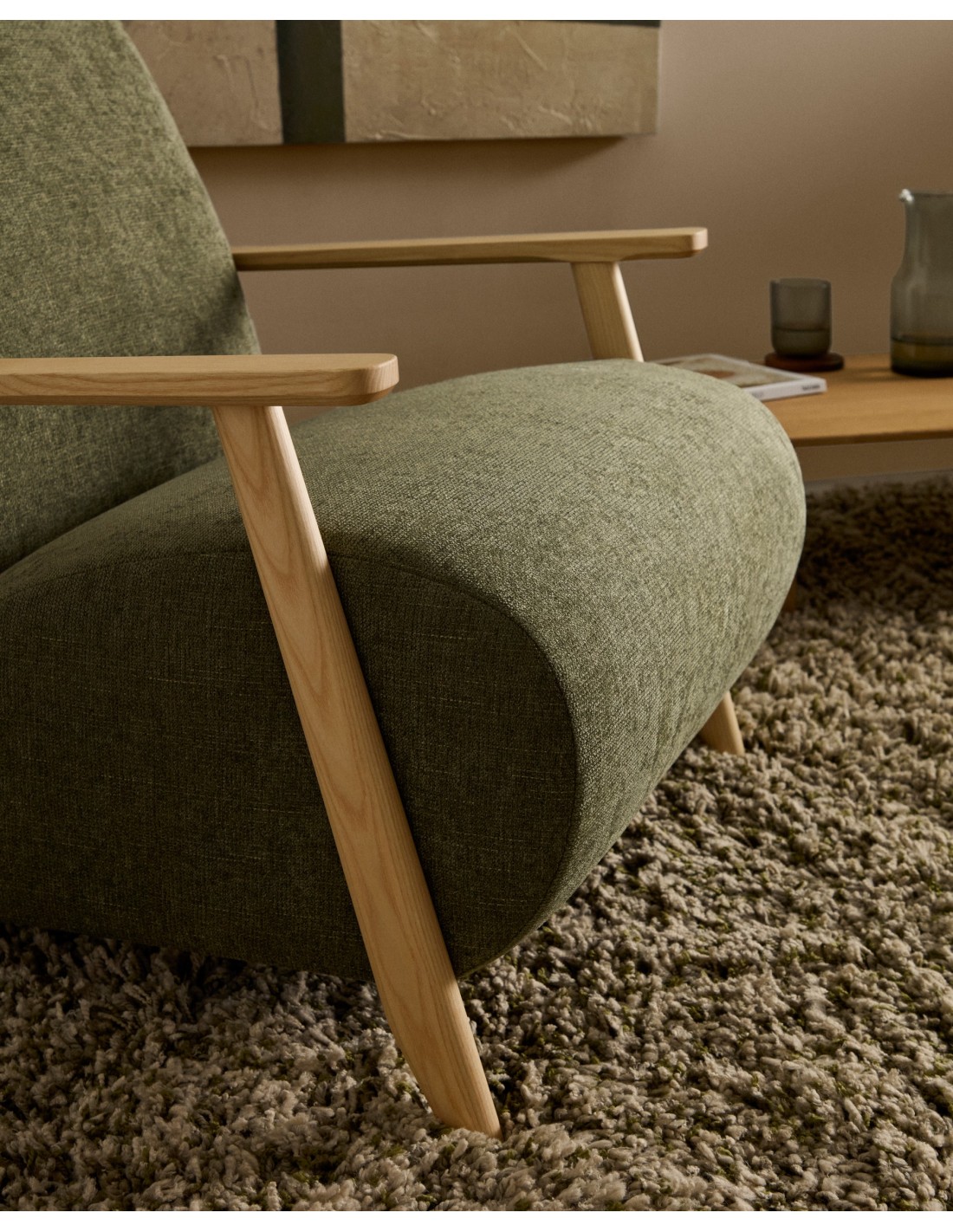 Butaca Meghan de chenilla verde y madera maciza de fresno con acabado natural FSC Mix Credit - Kave Home