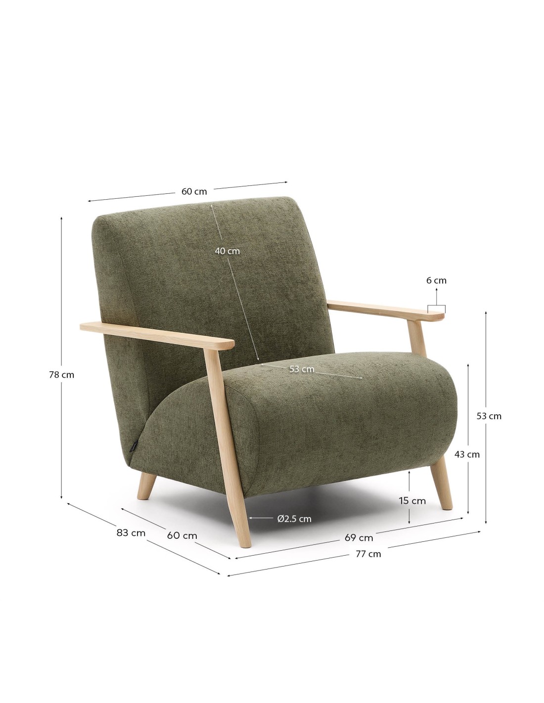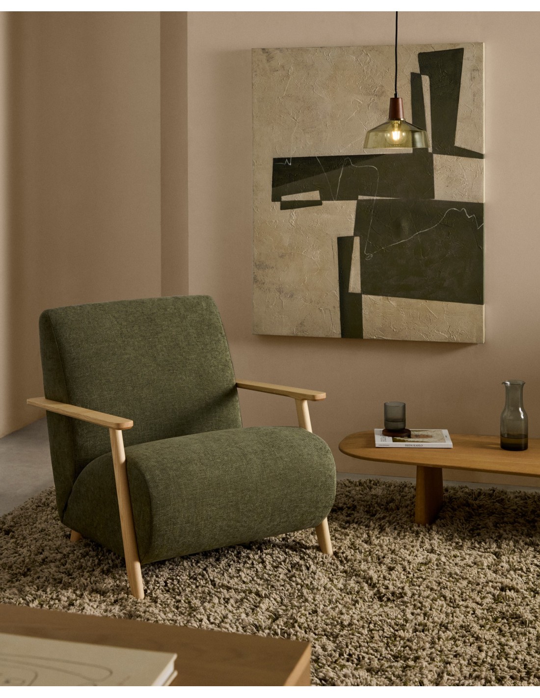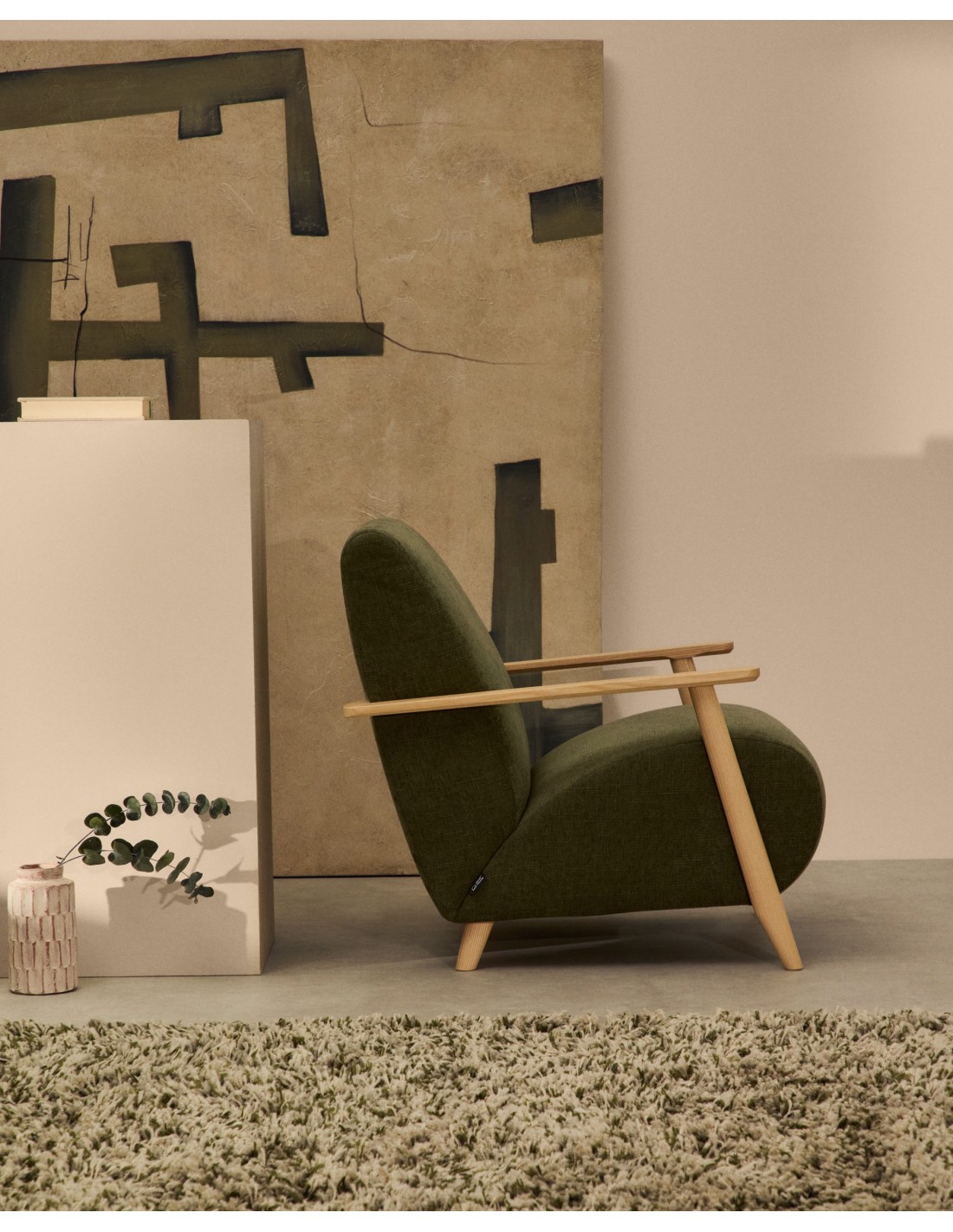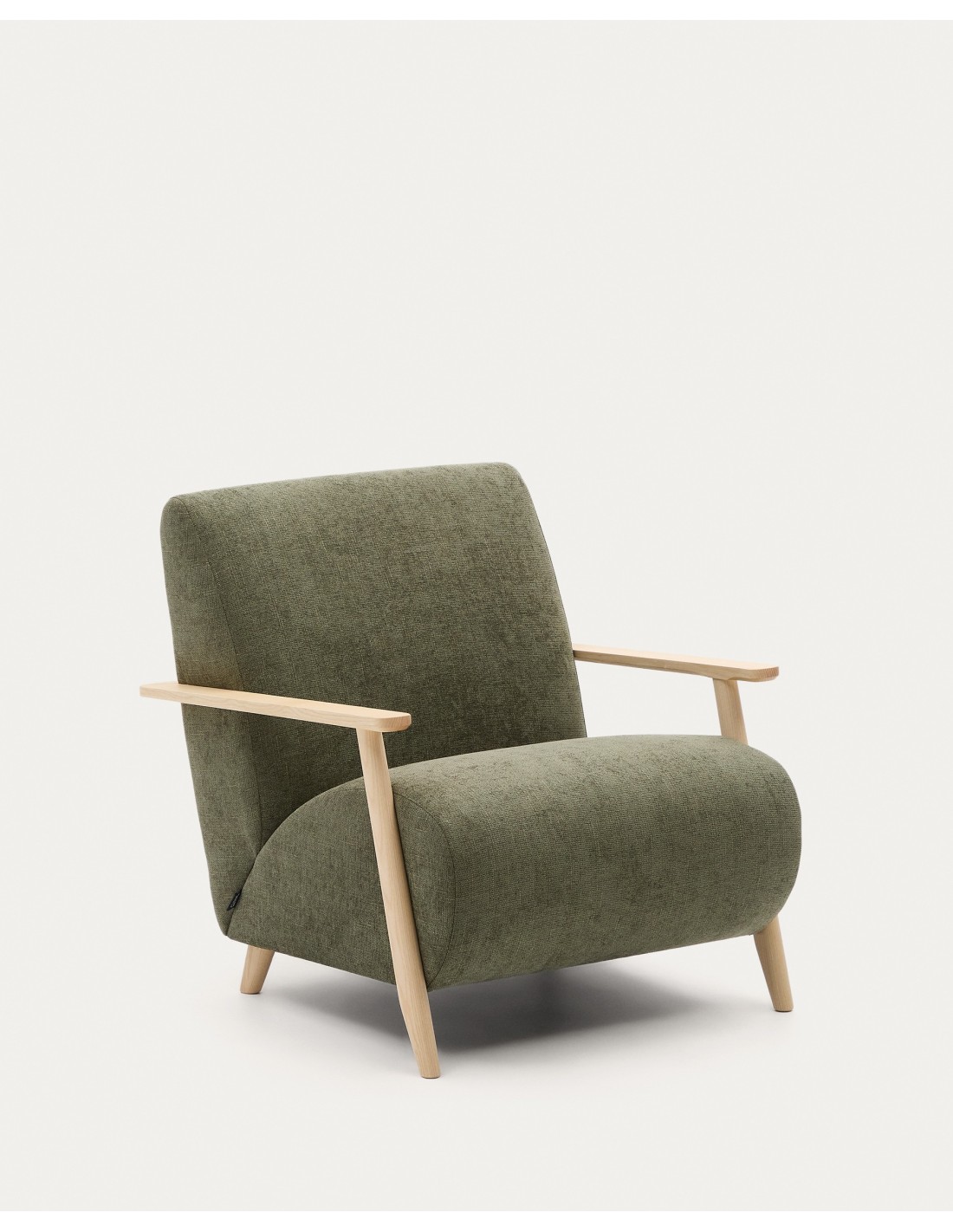 Butaca Meghan de chenilla verde y madera maciza de fresno con acabado natural FSC Mix Credit - Kave Home