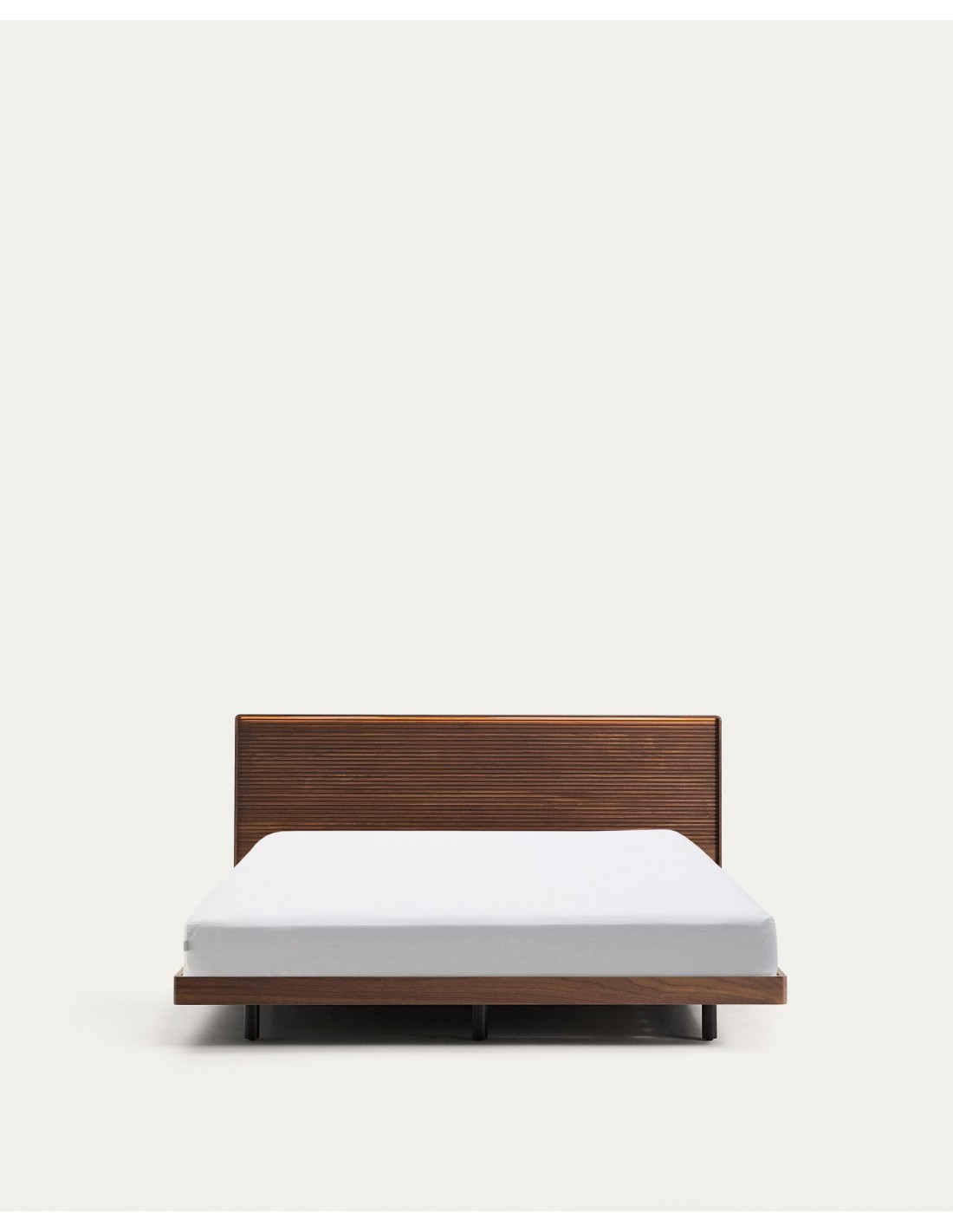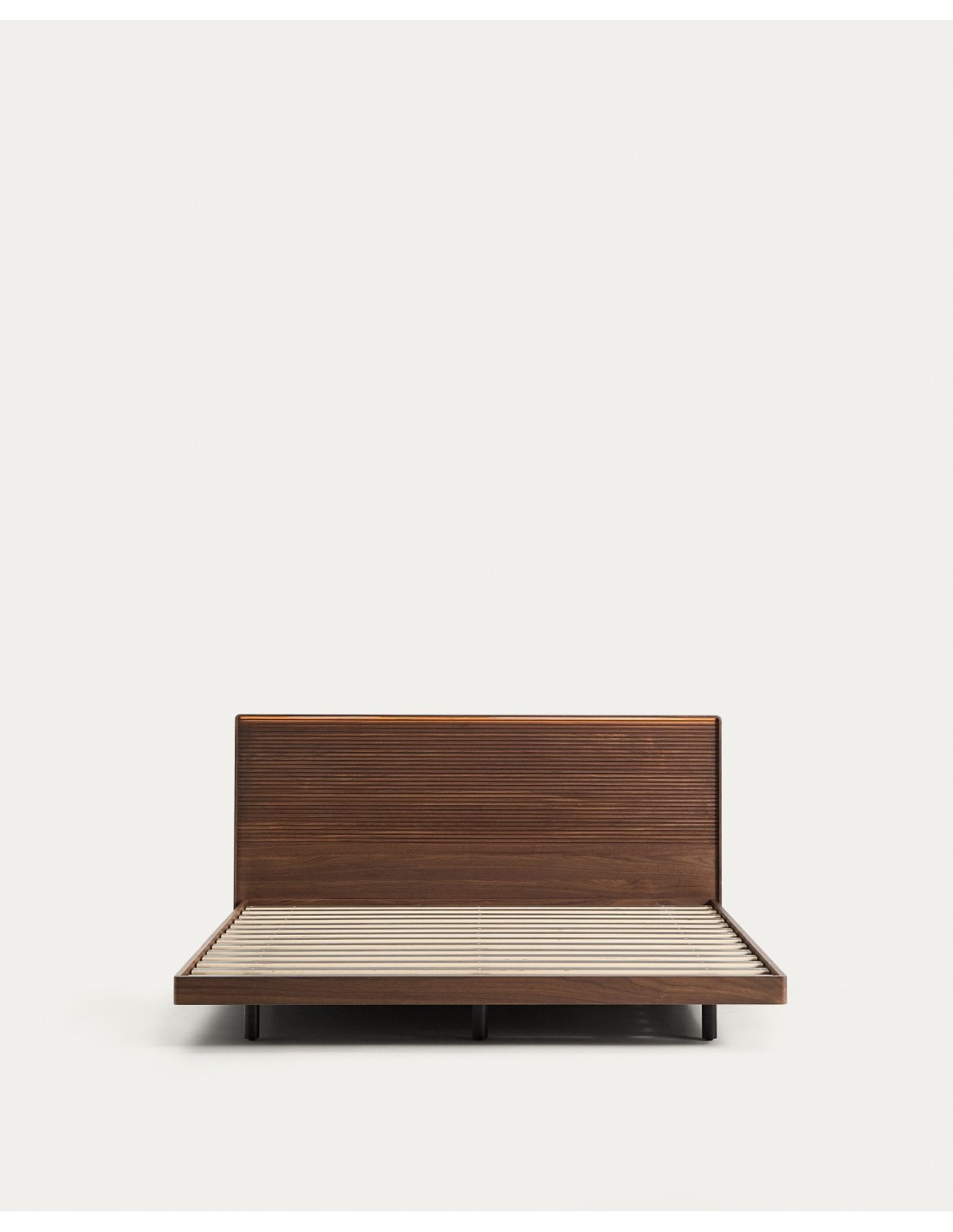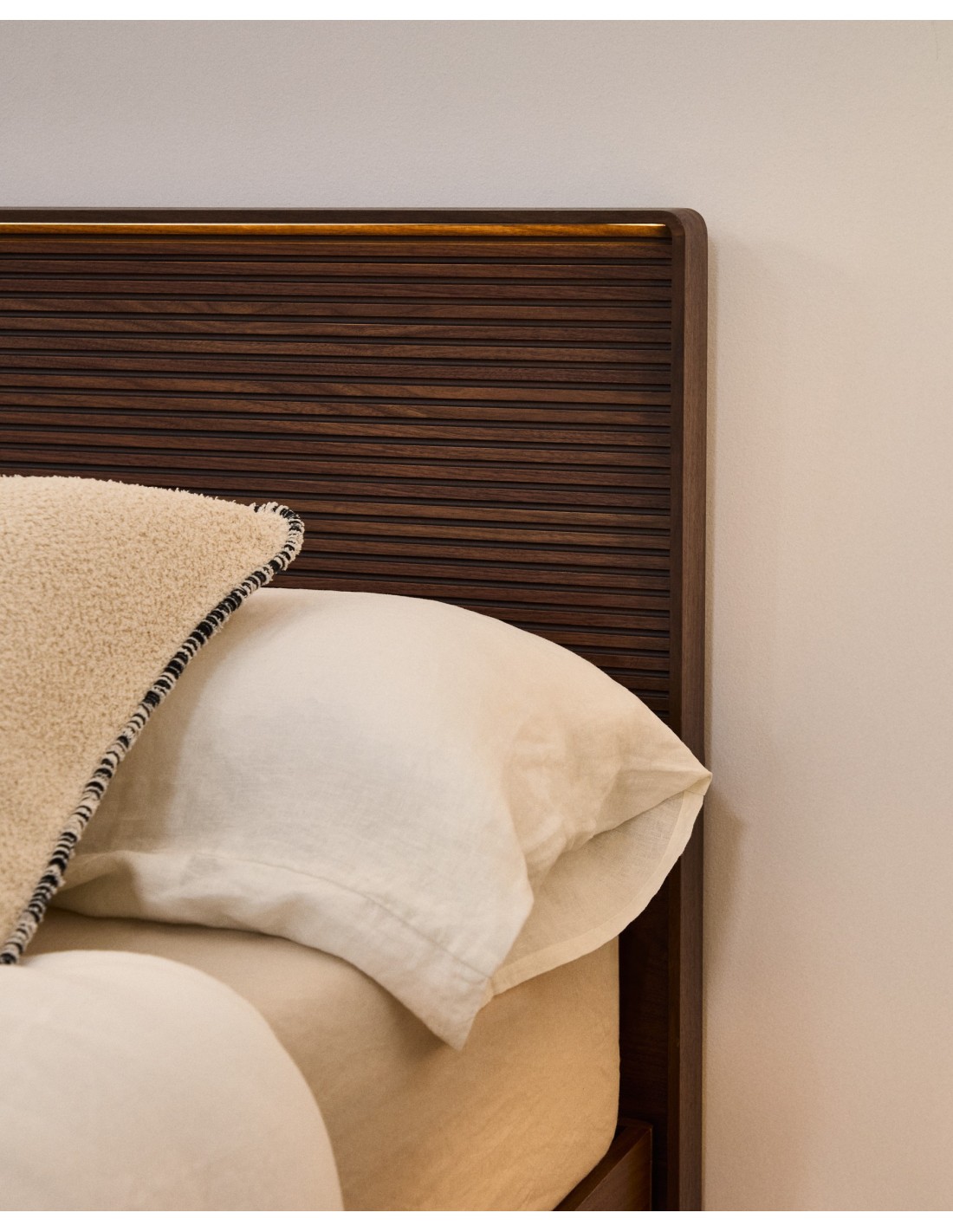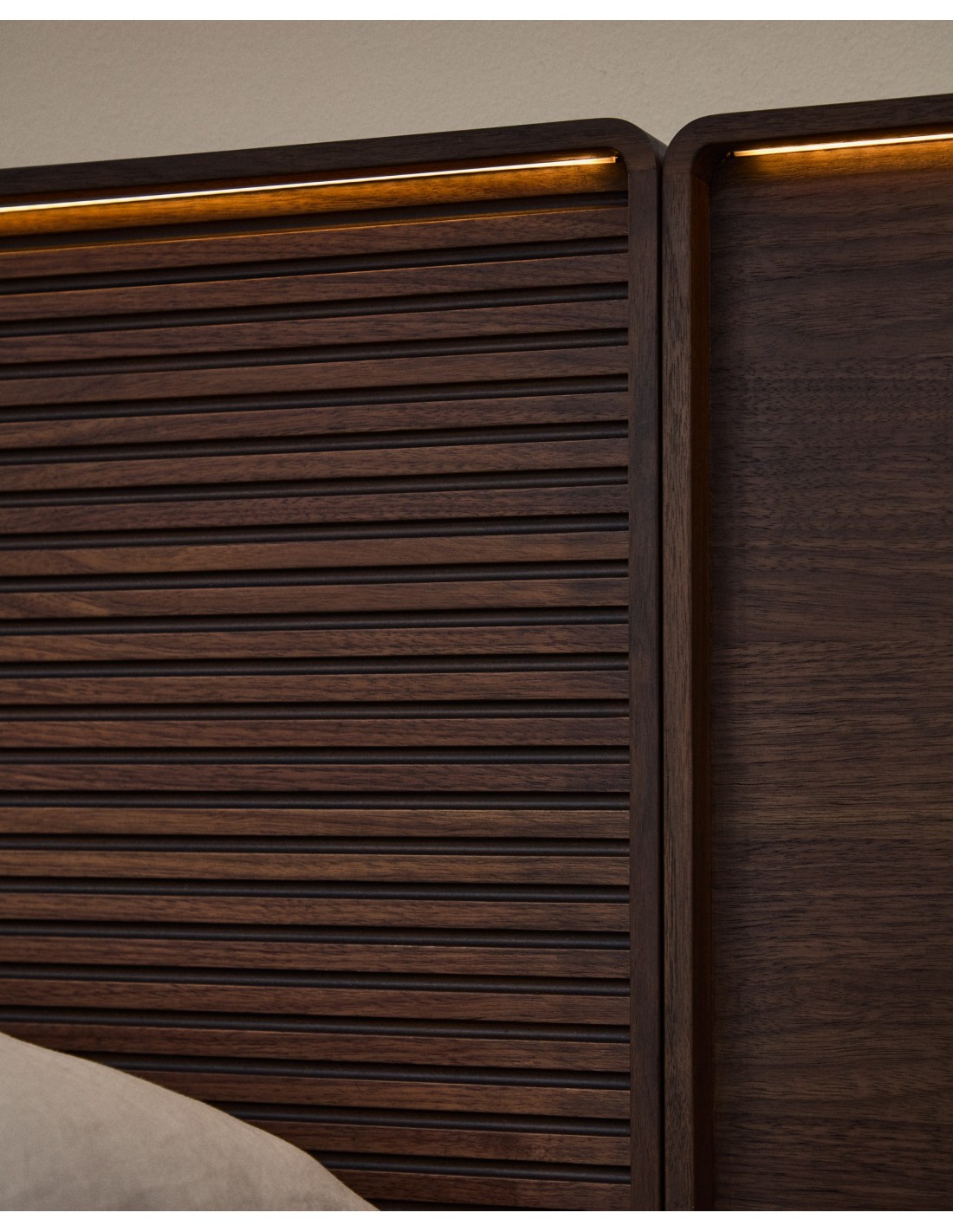 Cama Norlen de chapa de nogal con acabado oscuro y luz LED para colchón de 180 x 200 cm FSC Mix Credit - Kave Home