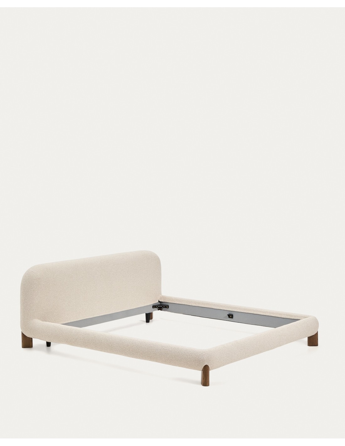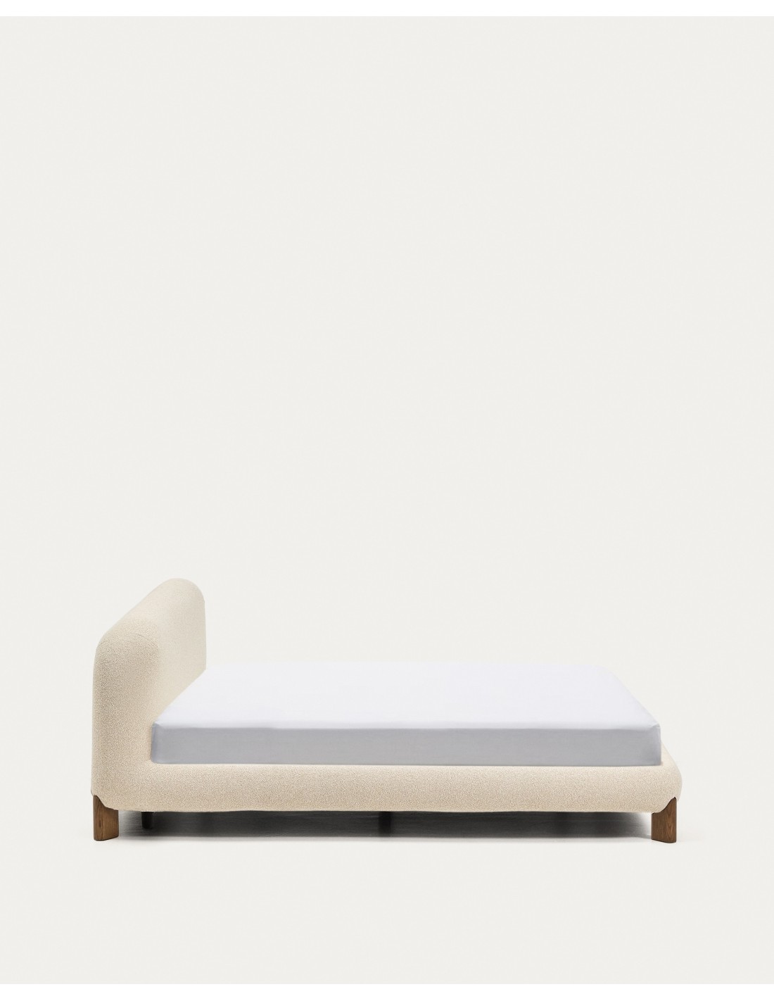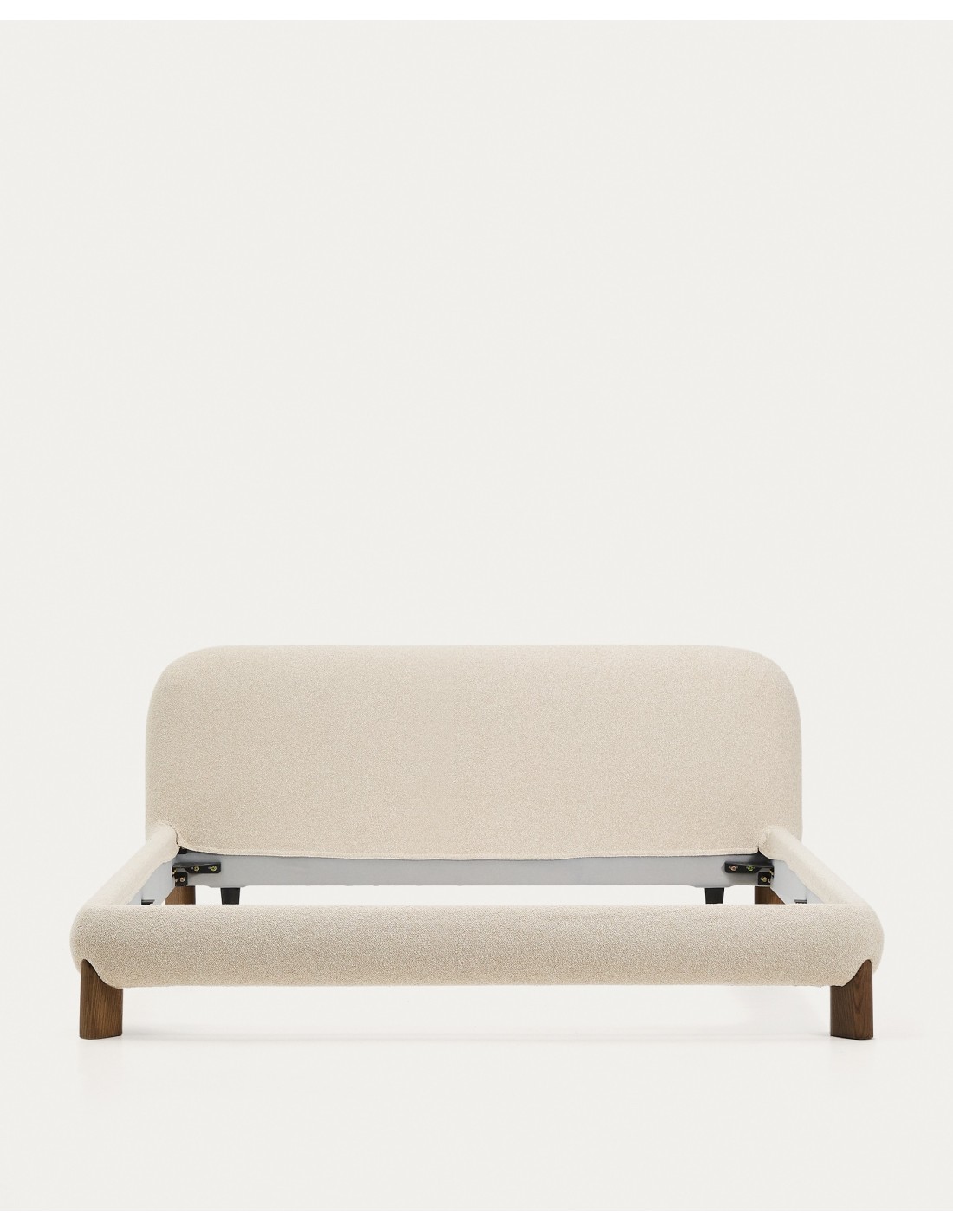 Cama desenfundable Odina bouclé crudo, patas madera maciza de fresno acabado nogal para colchón 180x200 cm - Kave Home