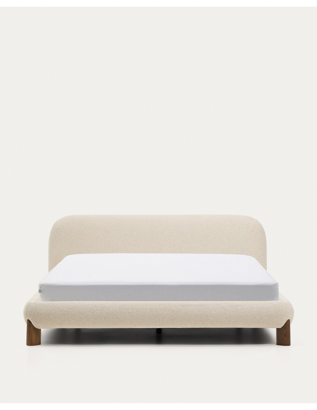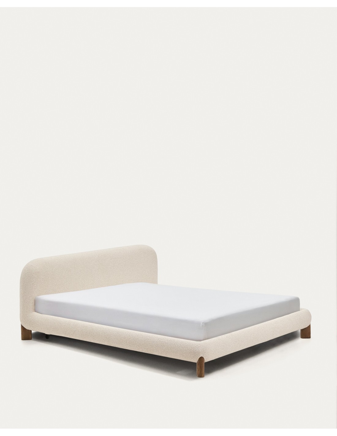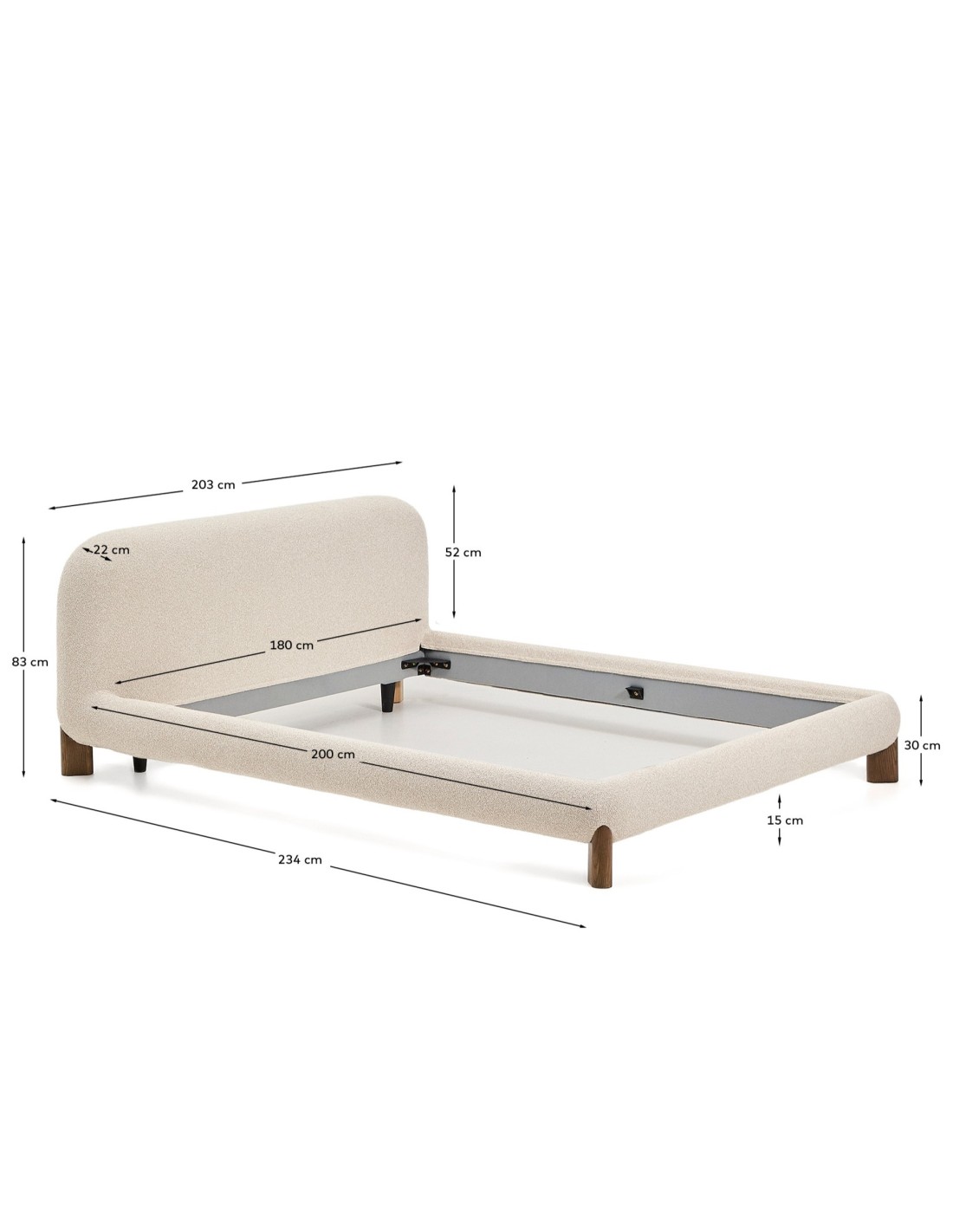 Cama desenfundable Odina bouclé crudo, patas madera maciza de fresno acabado nogal para colchón 180x200 cm - Kave Home