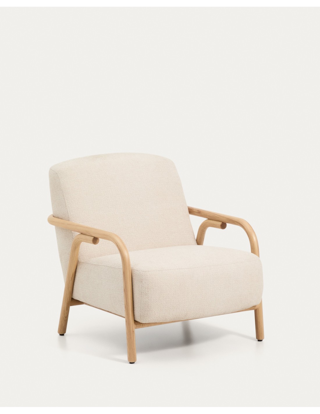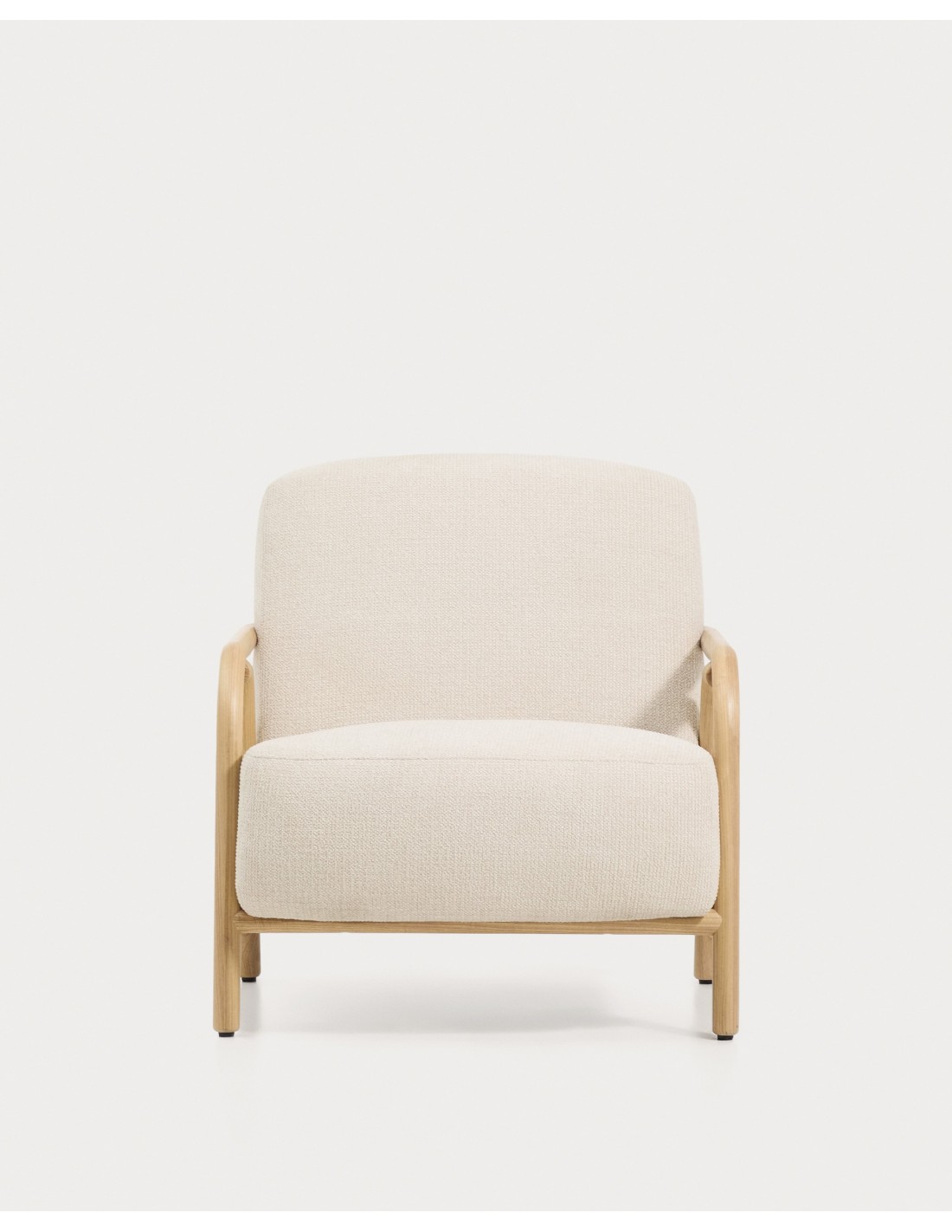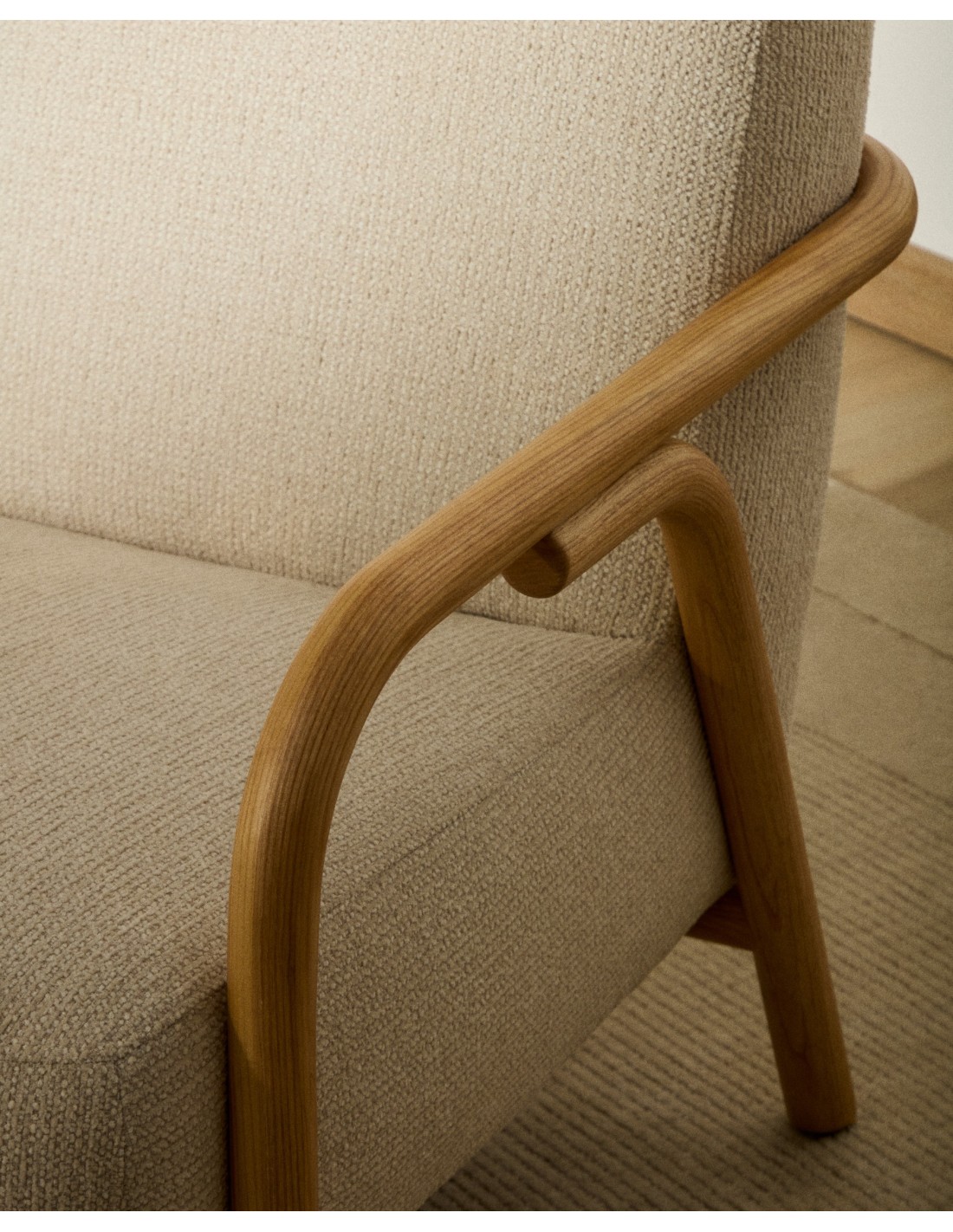 Butaca Sylo de chenilla beige y madera maciza de fresno con acabado tono natural FSC 100% - Kave Home