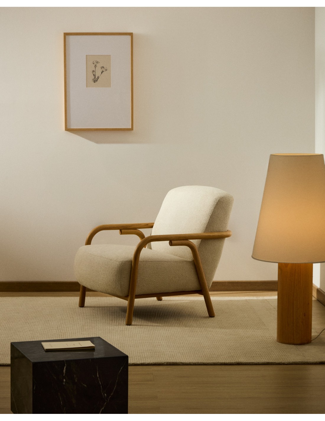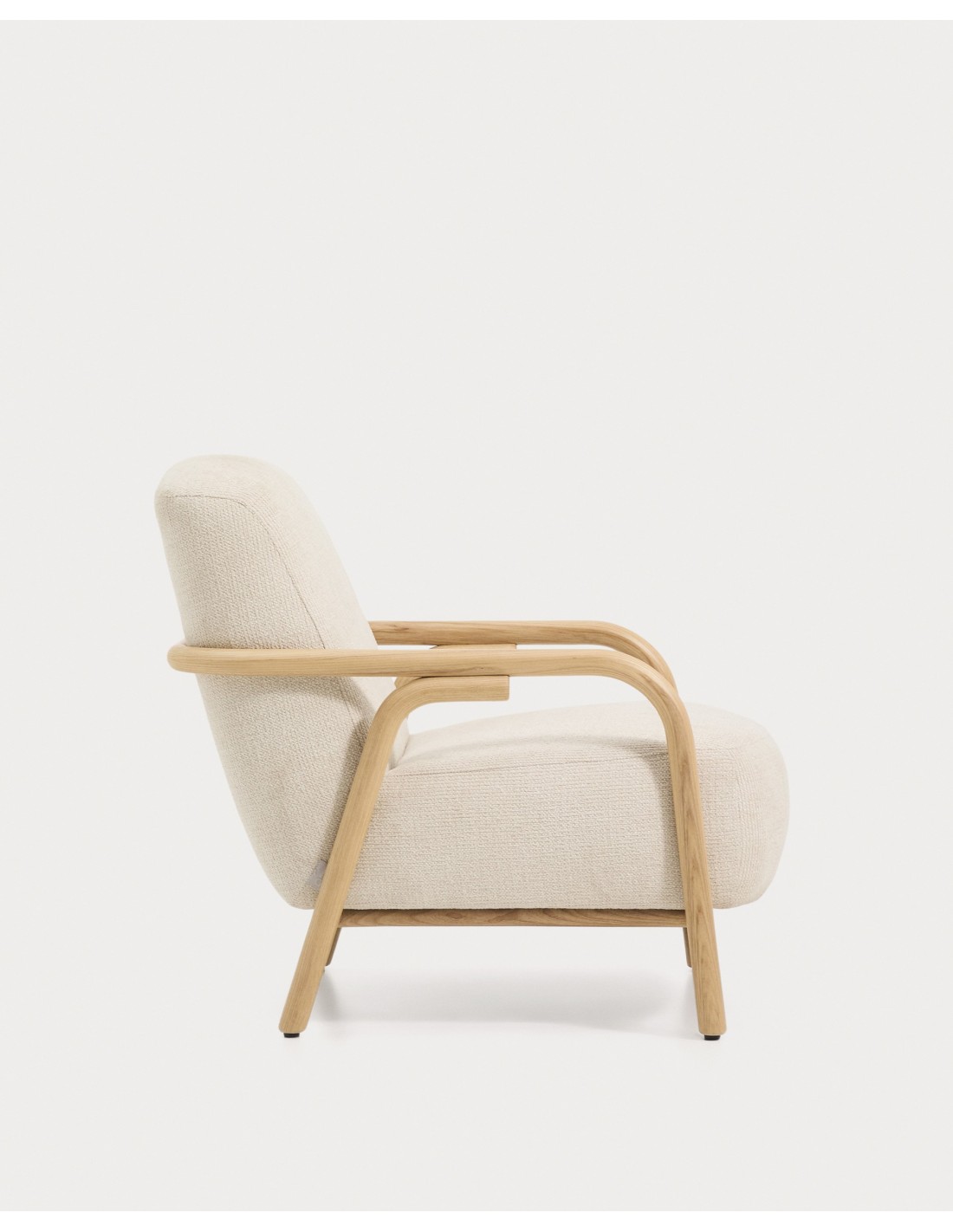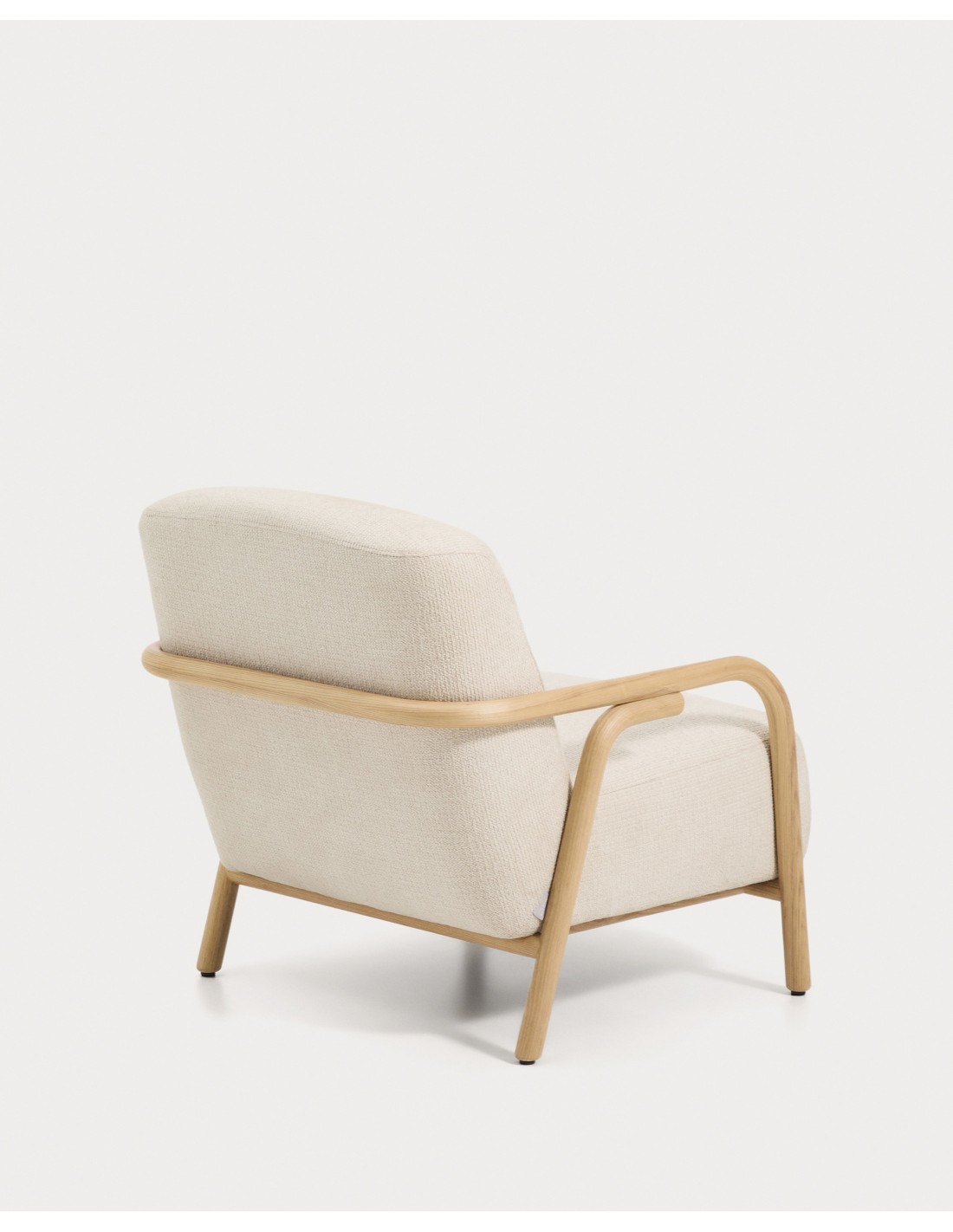 Butaca Sylo de chenilla beige y madera maciza de fresno con acabado tono natural FSC 100% - Kave Home