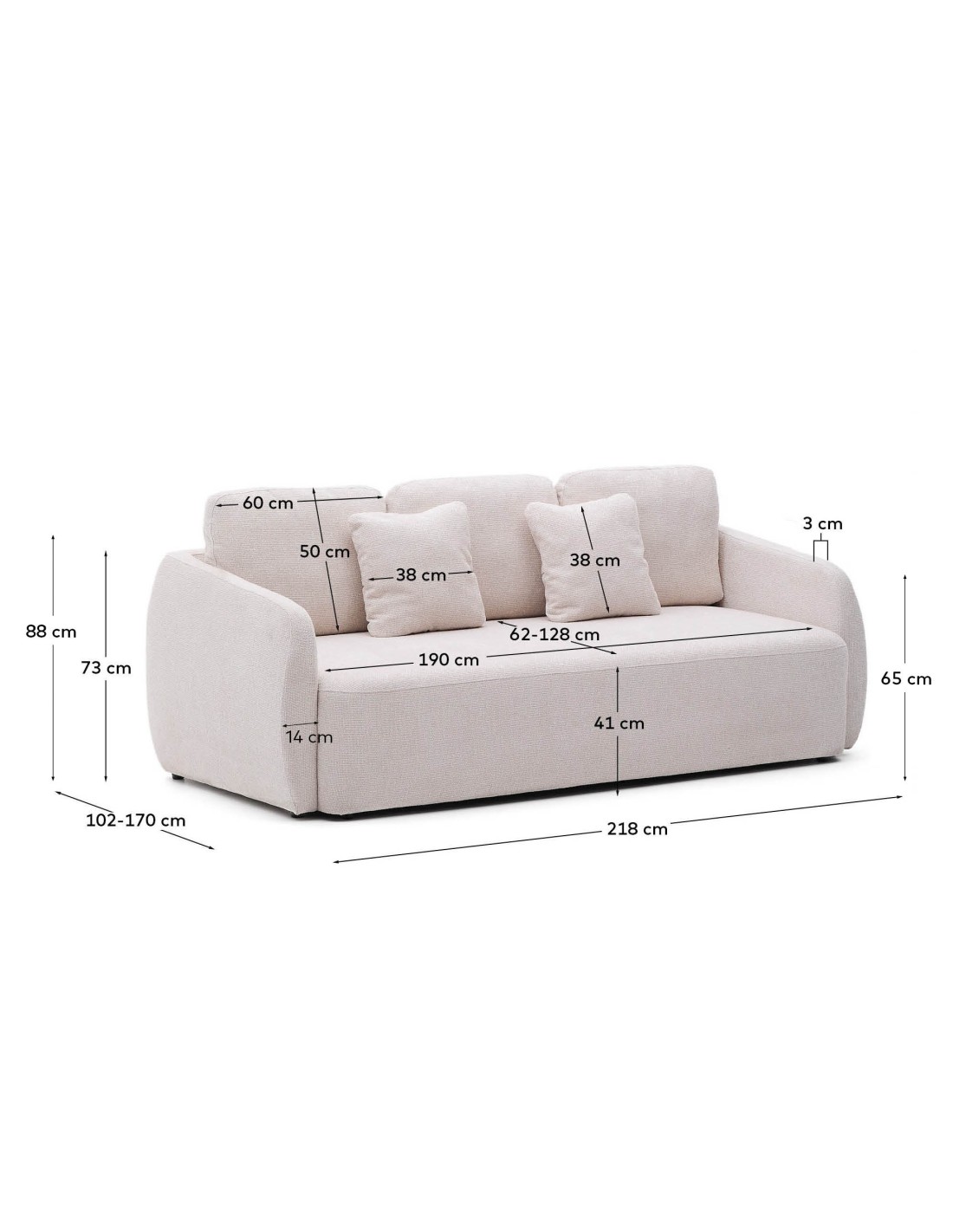 Sofá cama Laira 3 plazas de chenilla crudo 225 cm FSC Mix Credit - Kave Home