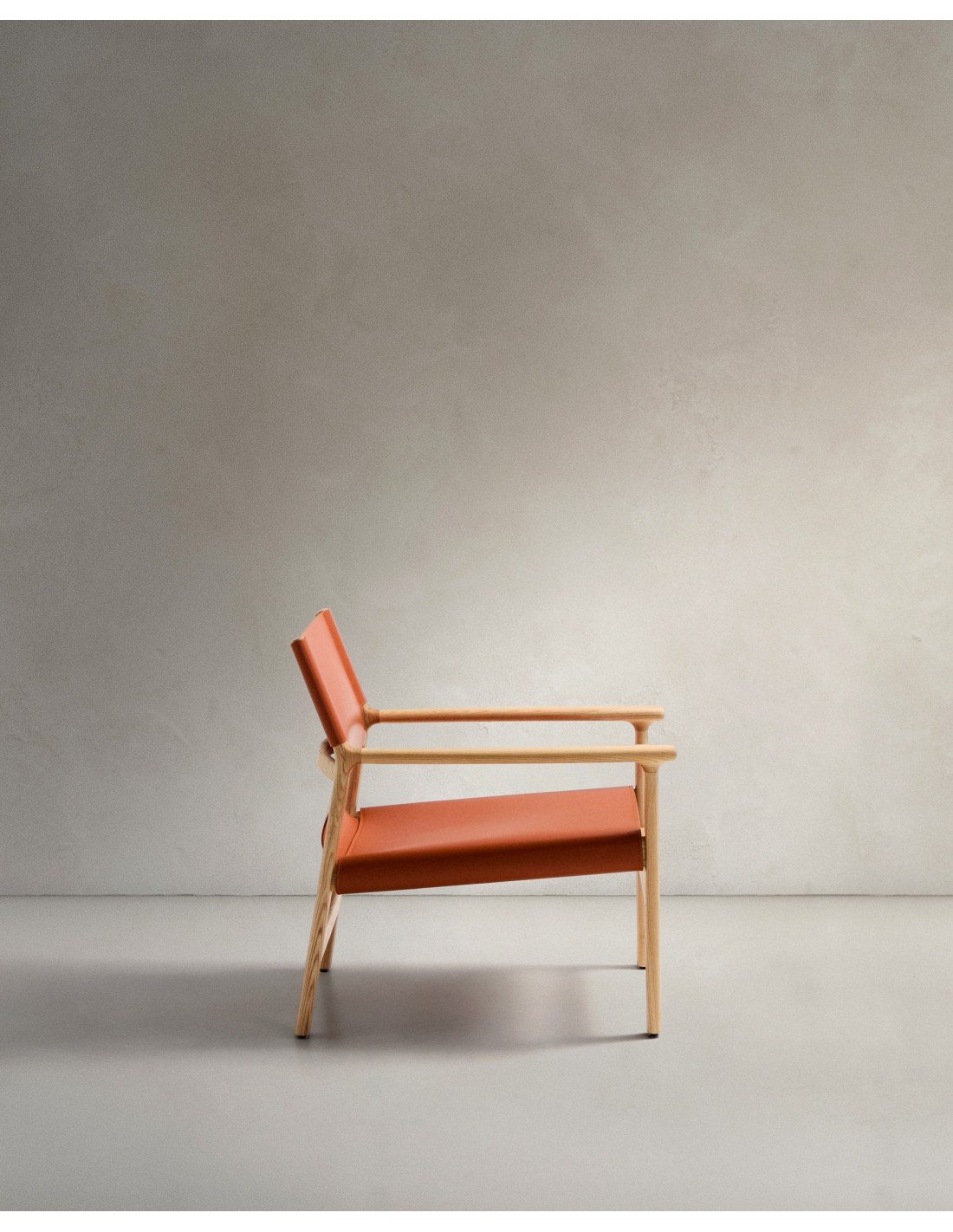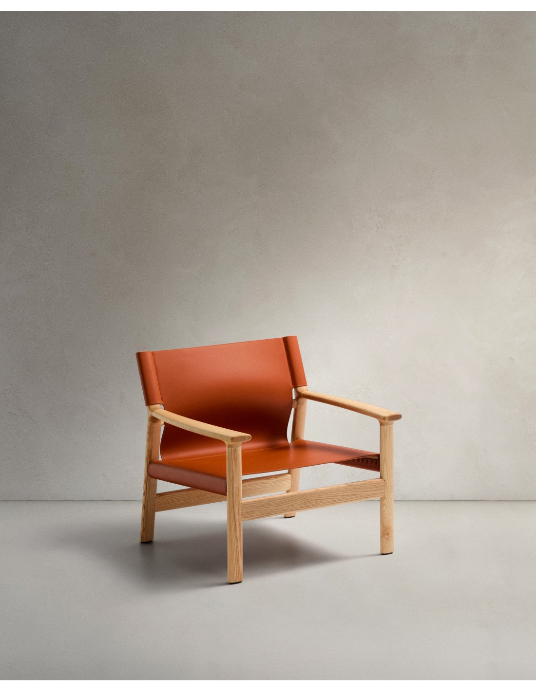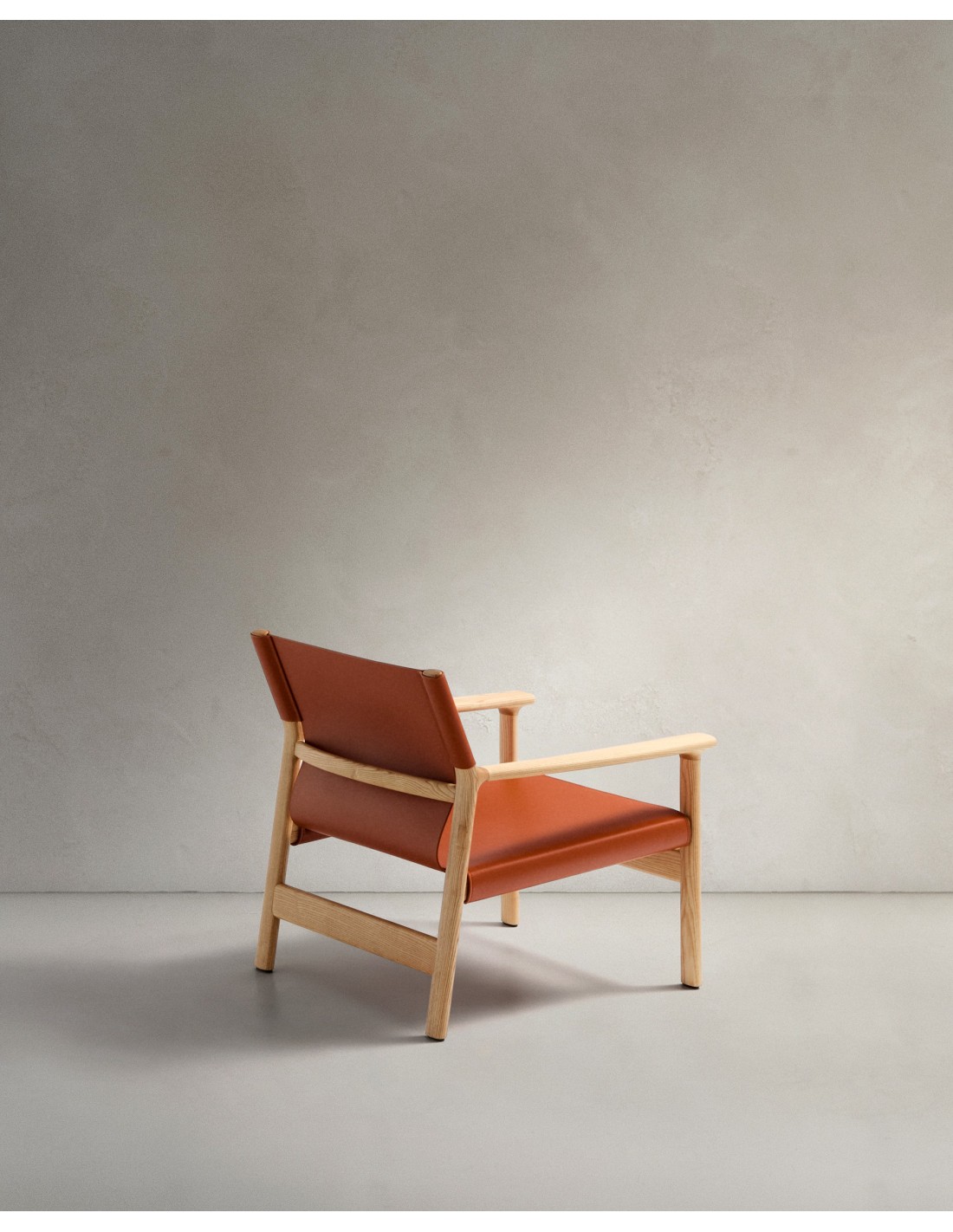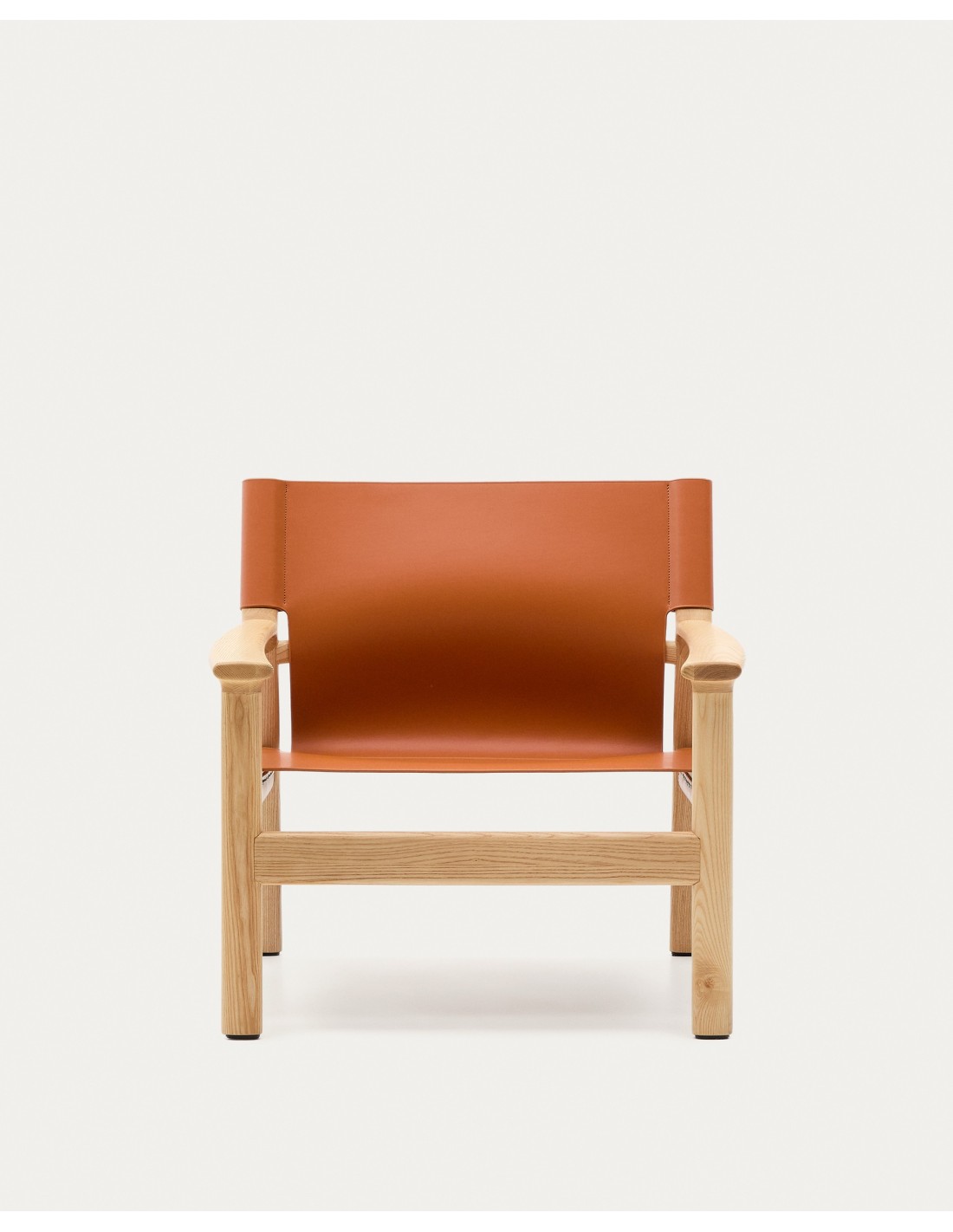 Butaca Jan de fibras de cuero reciclado marrón claro y madera maciza de fresno con acabado tono natural FSC 100% - Kave Home