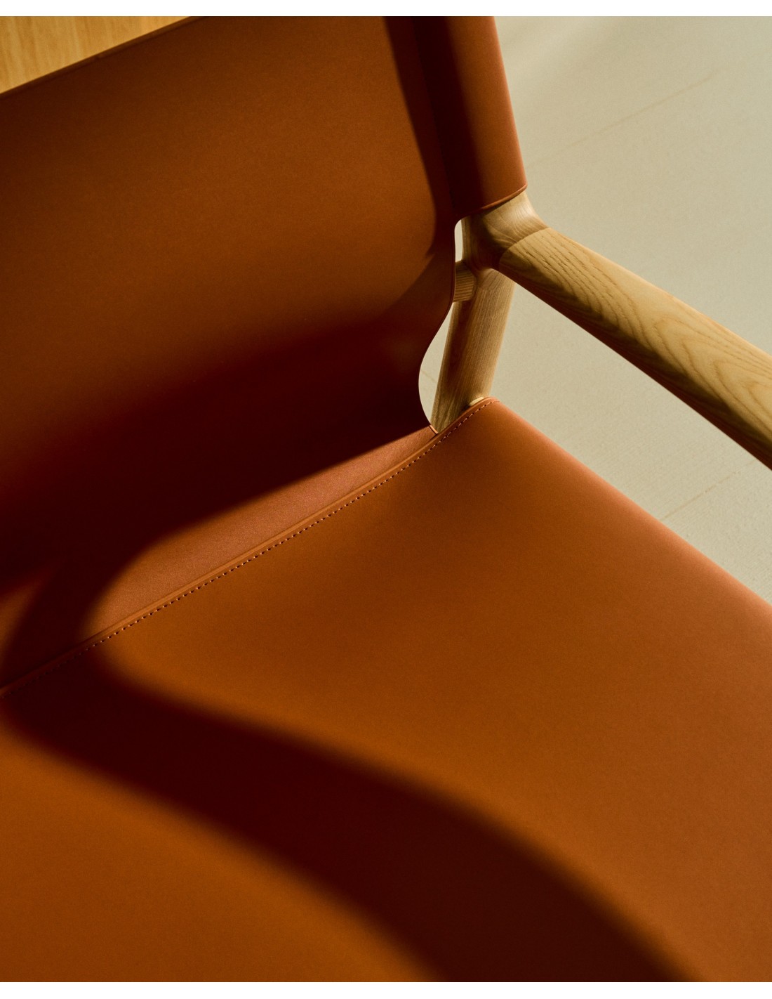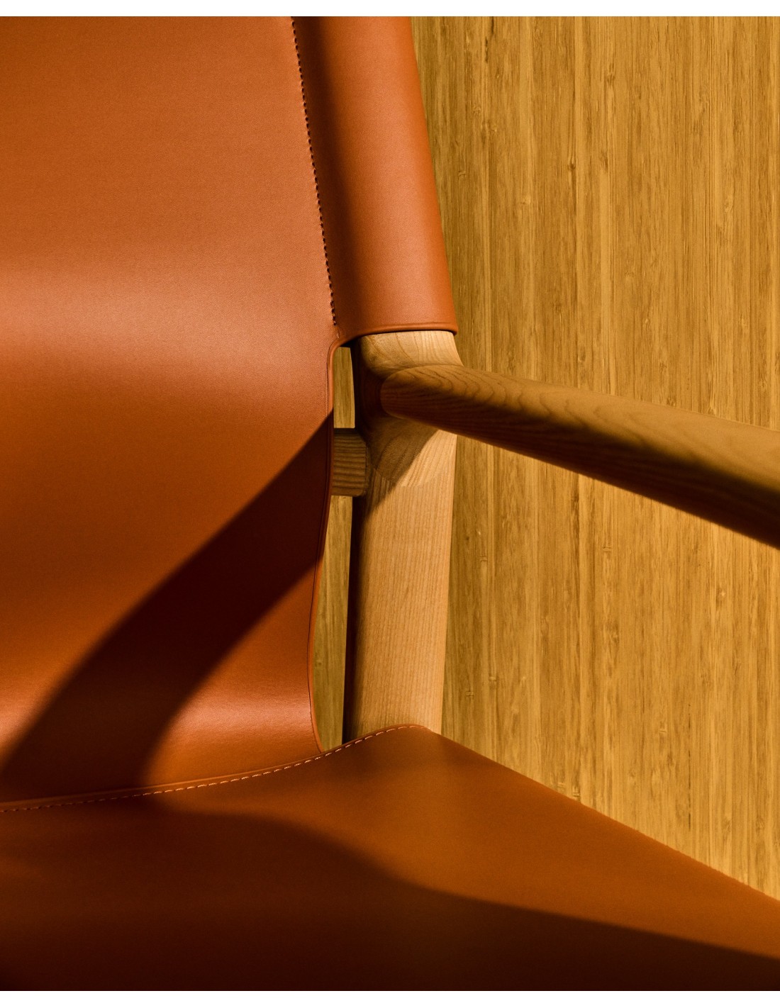 Jan es la colección que encarna la armonía entre lo clásico y lo moderno, pensada para quienes valoran tanto la estética como la experiencia sensorial del diseño. Su silueta, de líneas suaves y proporciones equilibradas, se inspira en la tradición, reinterpretada con una mirada contemporánea que la convierte en una pieza tan decorativa como funcional. Los detalles sobrios de su estructura aportan una identidad visual sofisticada, además de invitar al confort desde el primer contacto, con una ergonomía que abraza el cuerpo y una textura que conquista al tacto. La estructura está hecha en madera maciza de fresno con certificación FSC™ 100%, por lo que está elaborada con materiales que proceden de bosques que han sido auditados para confirmar que se gestionan conforme los rigurosos estándares sociales y ambientales de FSC. Su robustez y calidez se combinan con un 96% de fibras de cuero reciclado de alta calidad, seleccionada por su resistencia a la abrasión y al fuego, y que aporta una sentada firme que se adapta al cuerpo. Esta piel procede de un proveedor certificado por Leather Working Group con calificación LWG Gold, que promueve prácticas sostenibles y cambios positivos en la producción responsable de piel. Jan va más allá de la estética: es una pieza pensada para perdurar en el tiempo, tanto por la nobleza de sus materiales como por su construcción cuidada. Incluye protectores en las patas para preservar cualquier tipo de superficie, reafirmando su carácter funcional sin renunciar al diseño.