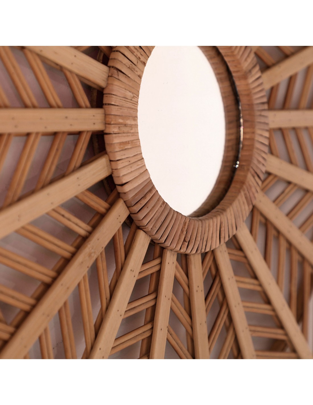 Espejo irregular Arteaga de estilo Boho, fabricado en bambú en color marrón, combinado con espejo.